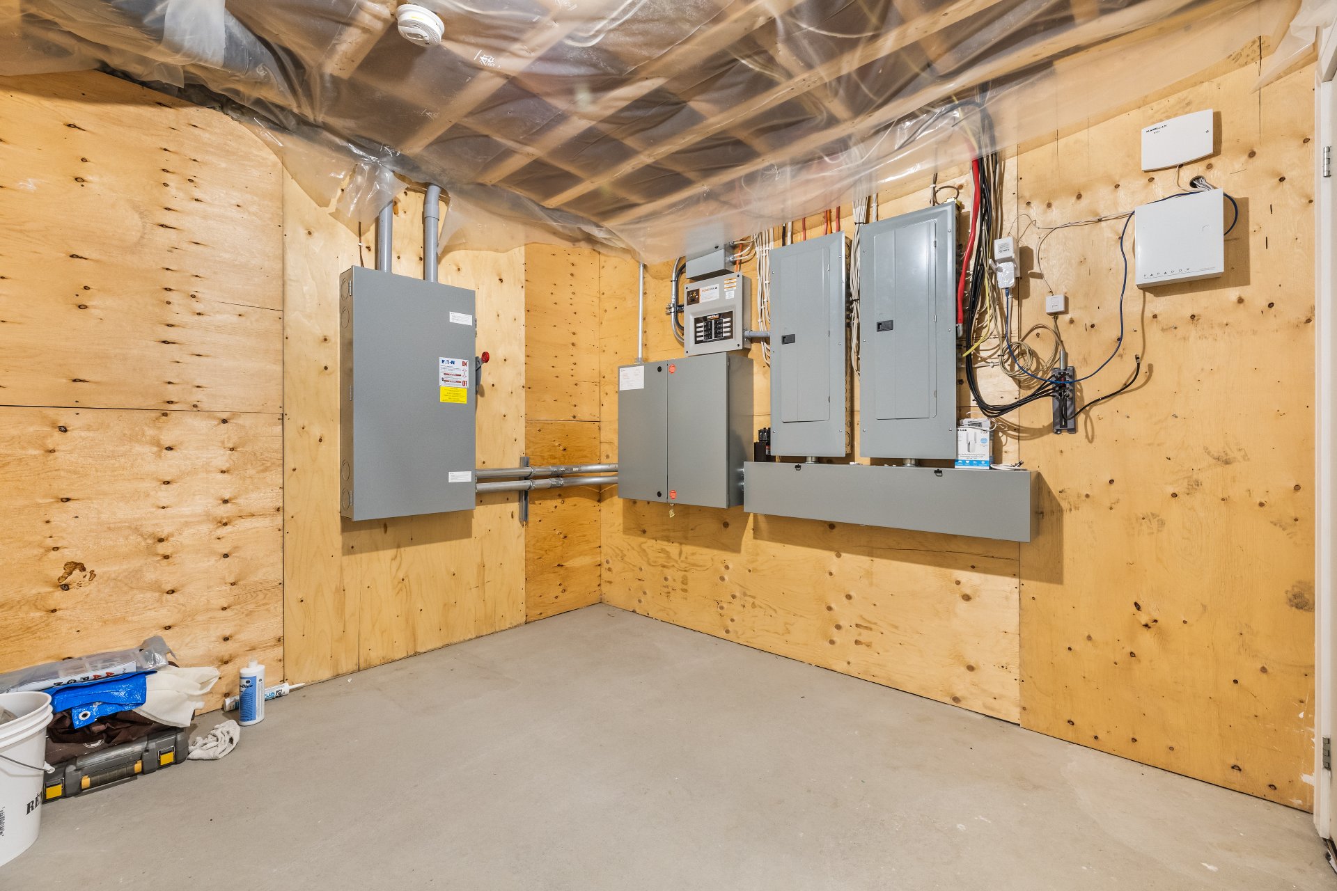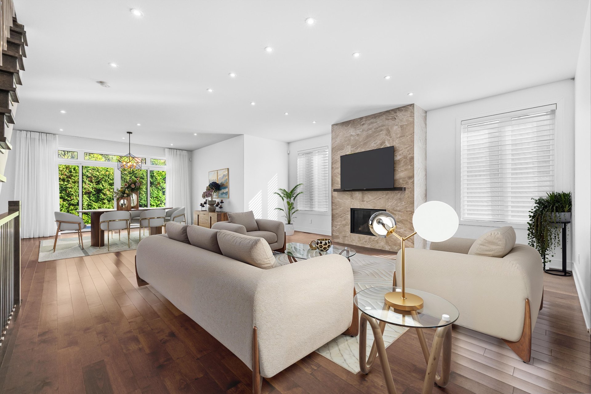 all light fixtures, all blinds, all curtains, walk-in-closet organizers & shelving, garage-door openers, alarm system, Air exchange system & Dual-Zone furnace, generator transfer switch installed, electric car plug-in ready (garage)
