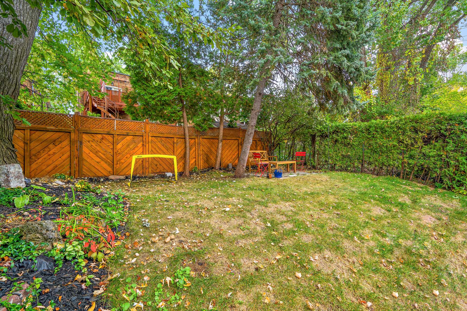 Step outside to a beautifully landscaped green space, perfect for al fresco dining, entertaining friends, or simply enjoying quiet moments outdoors.