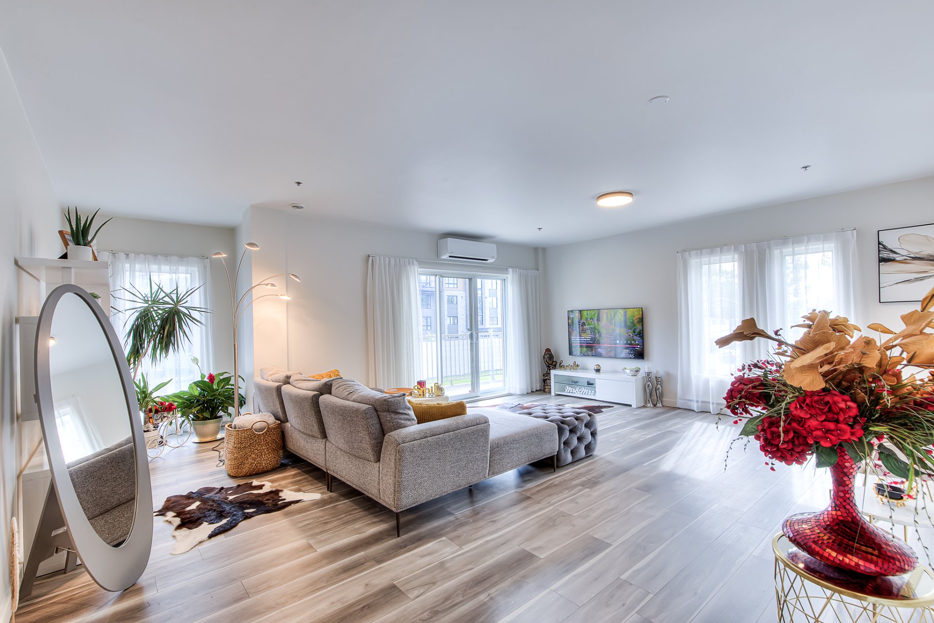 This property presents an abundance of natural light. This luxurious, sun-drenched corner unit condominium boasts a spacious balcony overlooking the golf course. The open-concept layout, encompassing the living room, dining room, and office space, is enhanced by elevated ceilings. The unit features a fully renovated kitchen and dinette. It comprises two generously sized bedrooms, a well-appointed bathroom with both a bathtub and a separate shower, a powder room, and laundry facilities, along with extensive interior storage and a basement locker. The main entrance is secured with a camera-monitored intercom system and an automatic door providing access to a large, double-opening elevator. Additional amenities include a reception area with a kitchen, two bathrooms, a fitness center, and a heated in-ground pool, all situated within a tranquil cul-de-sac and accessible to individuals with disabilities.