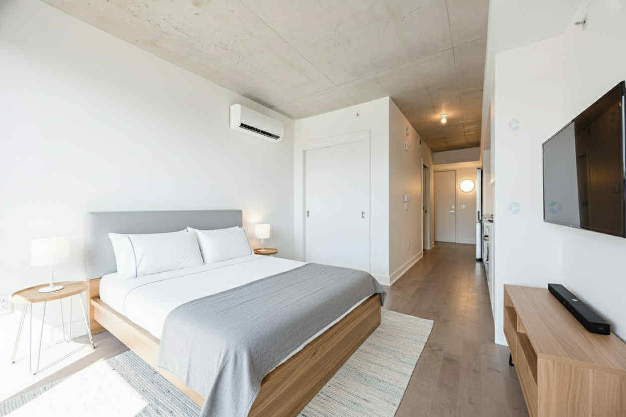 Brand New Elegant Studio! Modern studio with private balcony & 1 locker. Enjoy top amenities, steps from metro, UQÀM, downtown, CHUM Hospital, restaurants & all services. Perfect for students, professionals, or investors!