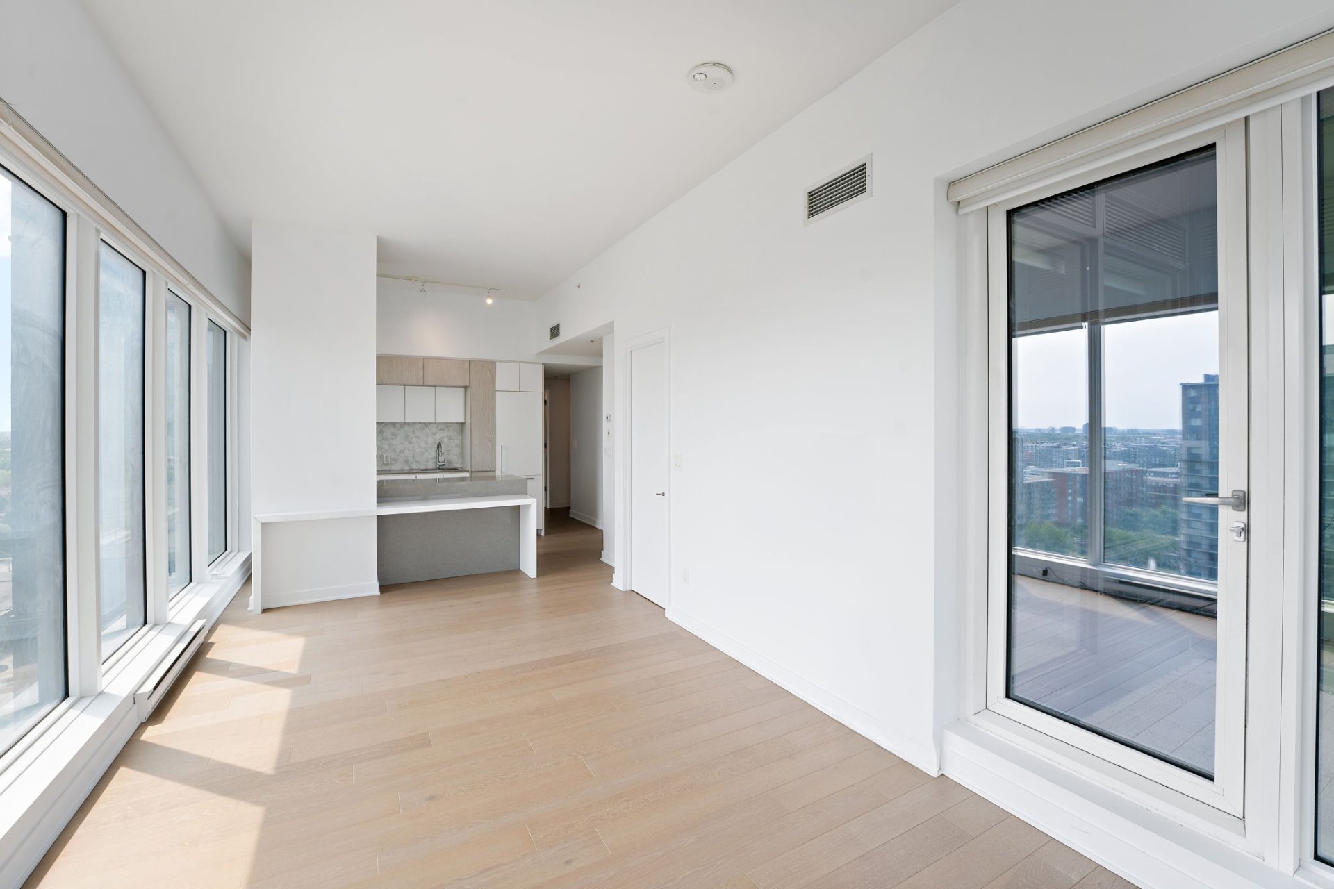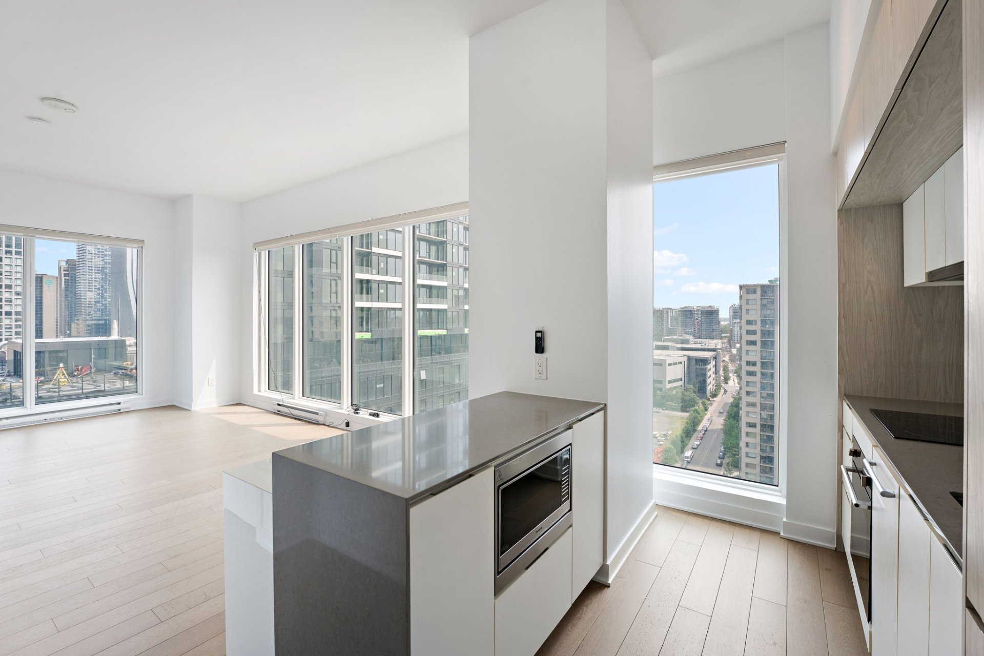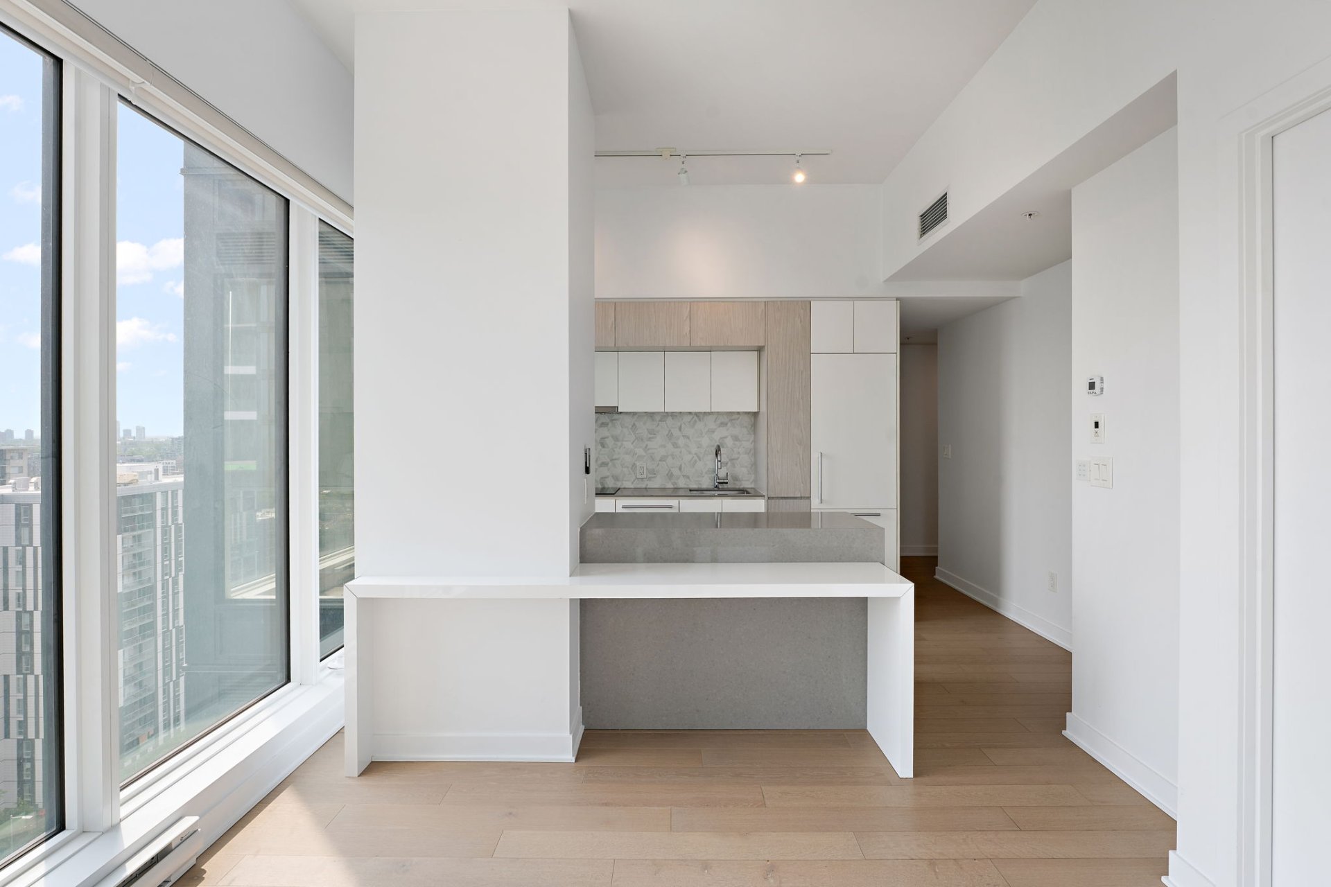 Perched on the 16th floor, this exceptional residence features an abundance of natural light, enhanced by expansive windows and a private balcony that opens onto panoramic, unobstructed views of several of Montréal’s most celebrated landmarks.