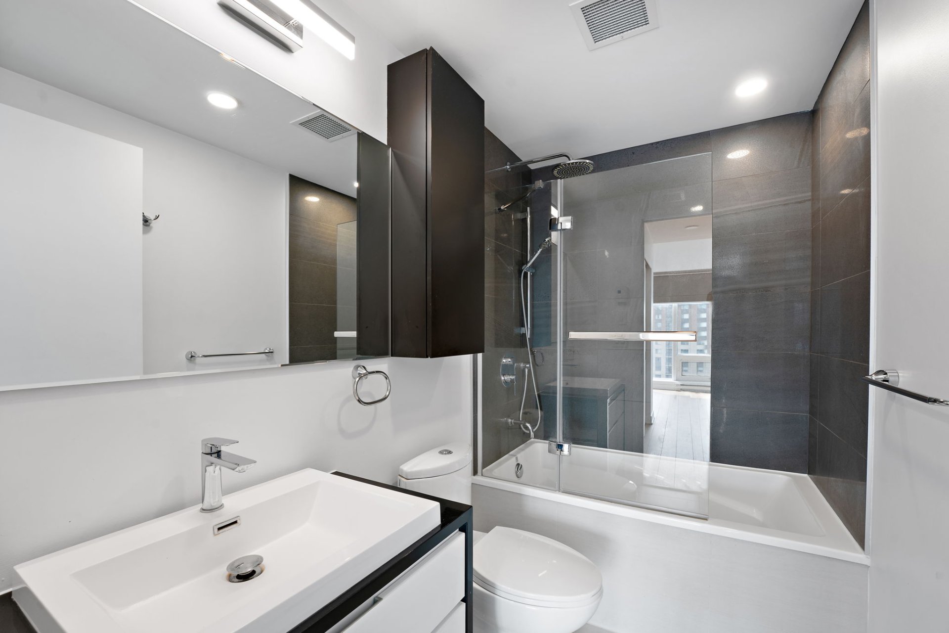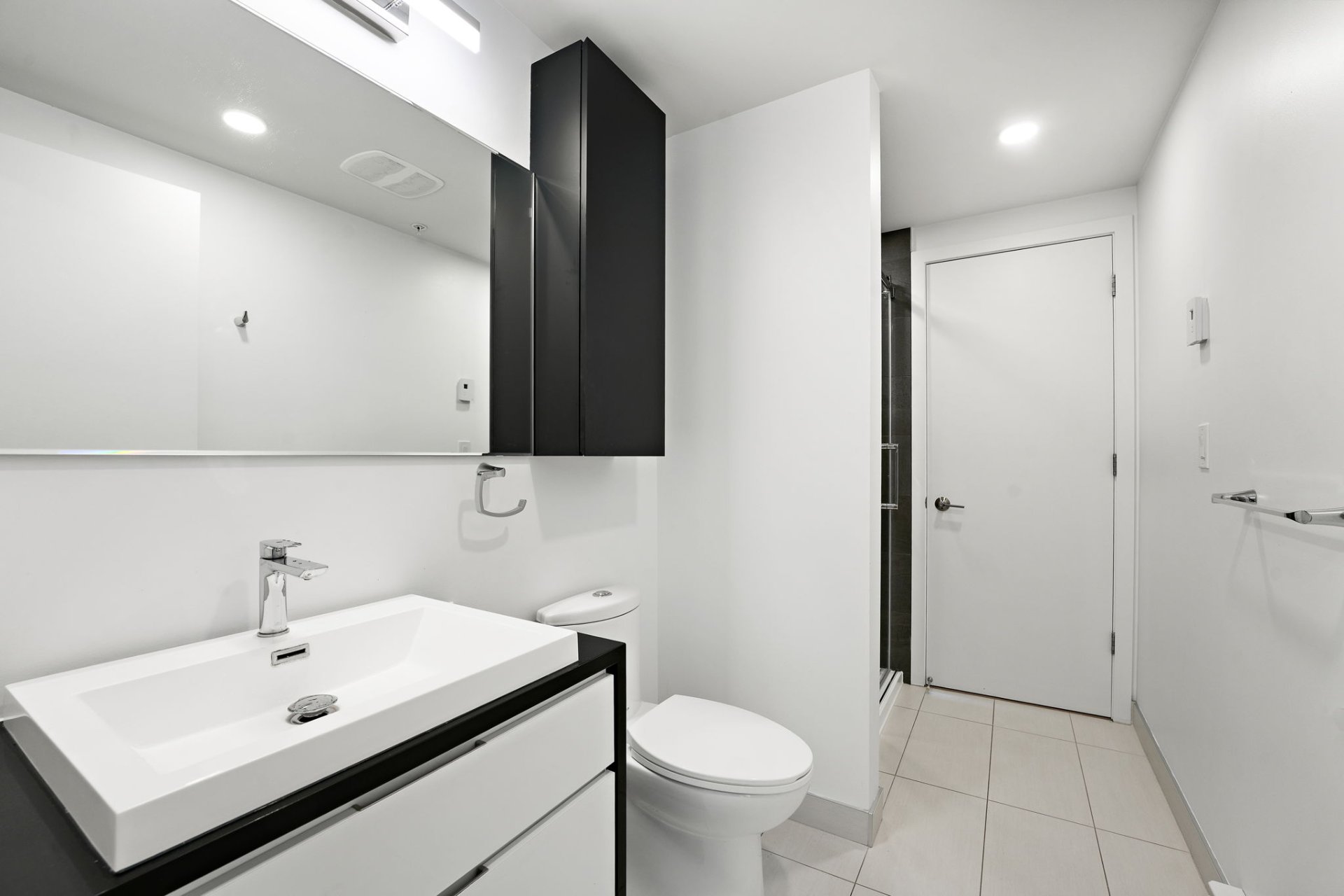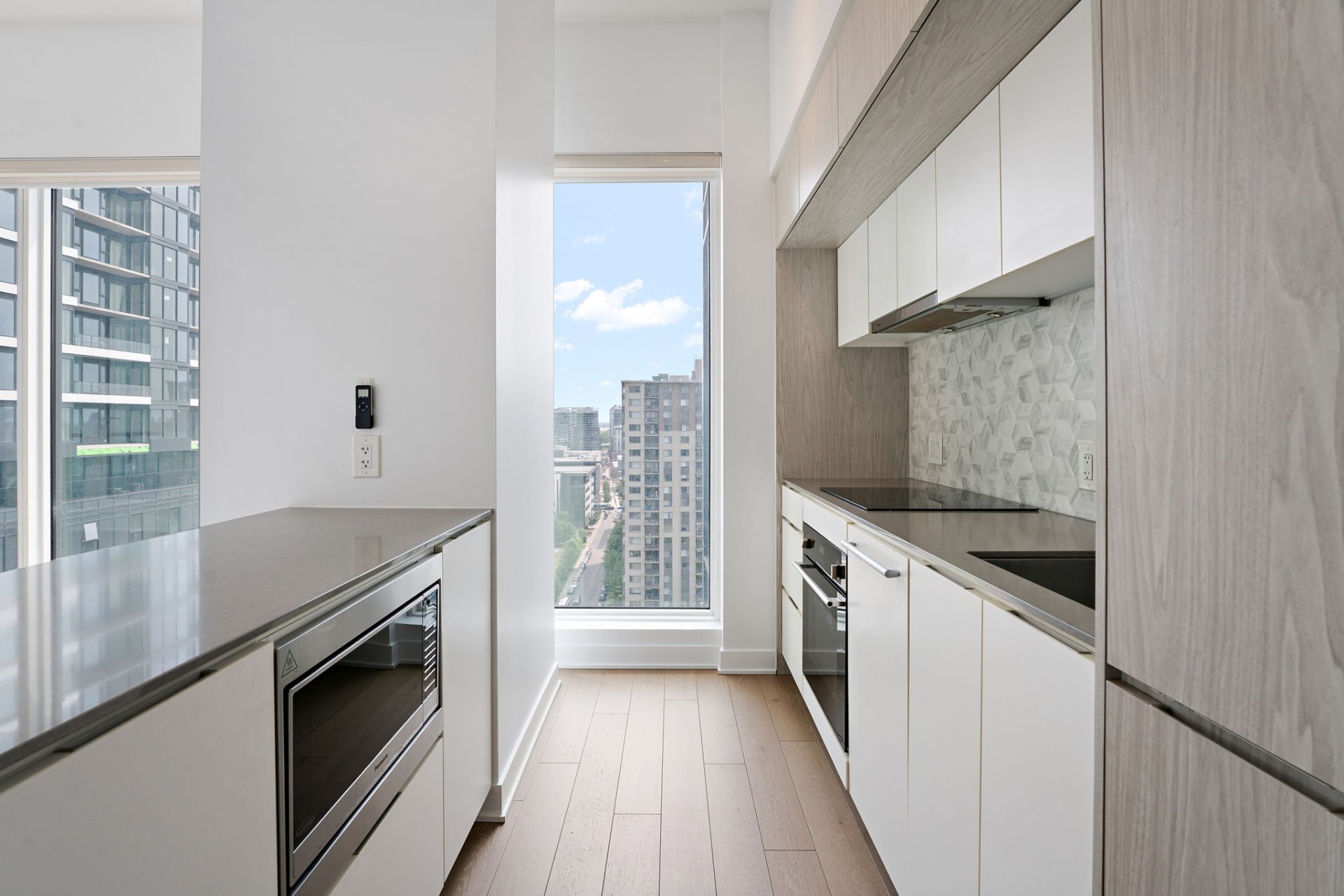 Perched on the 16th floor, this exceptional residence features an abundance of natural light, enhanced by expansive windows and a private balcony that opens onto panoramic, unobstructed views of several of Montréal’s most celebrated landmarks.