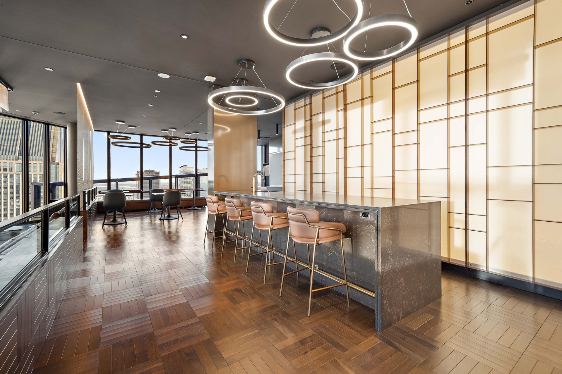 Combining luxury and elegance, this tower offers modern, refined facilities, beginning with its prestigious lobby. Ideally located, it provides direct access to the Bell Centre via an indoor skybridge and is connected to the underground city and RESO.