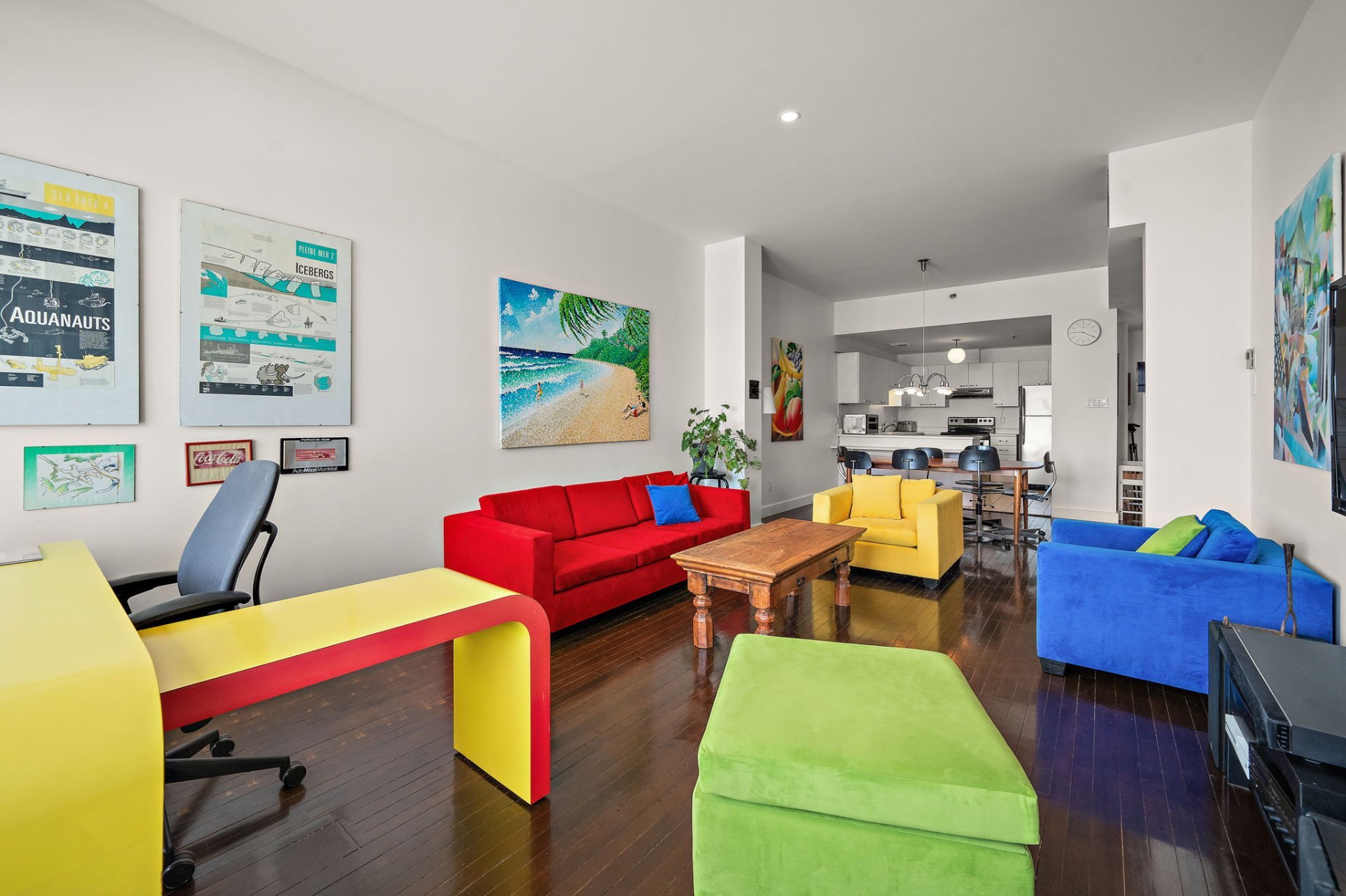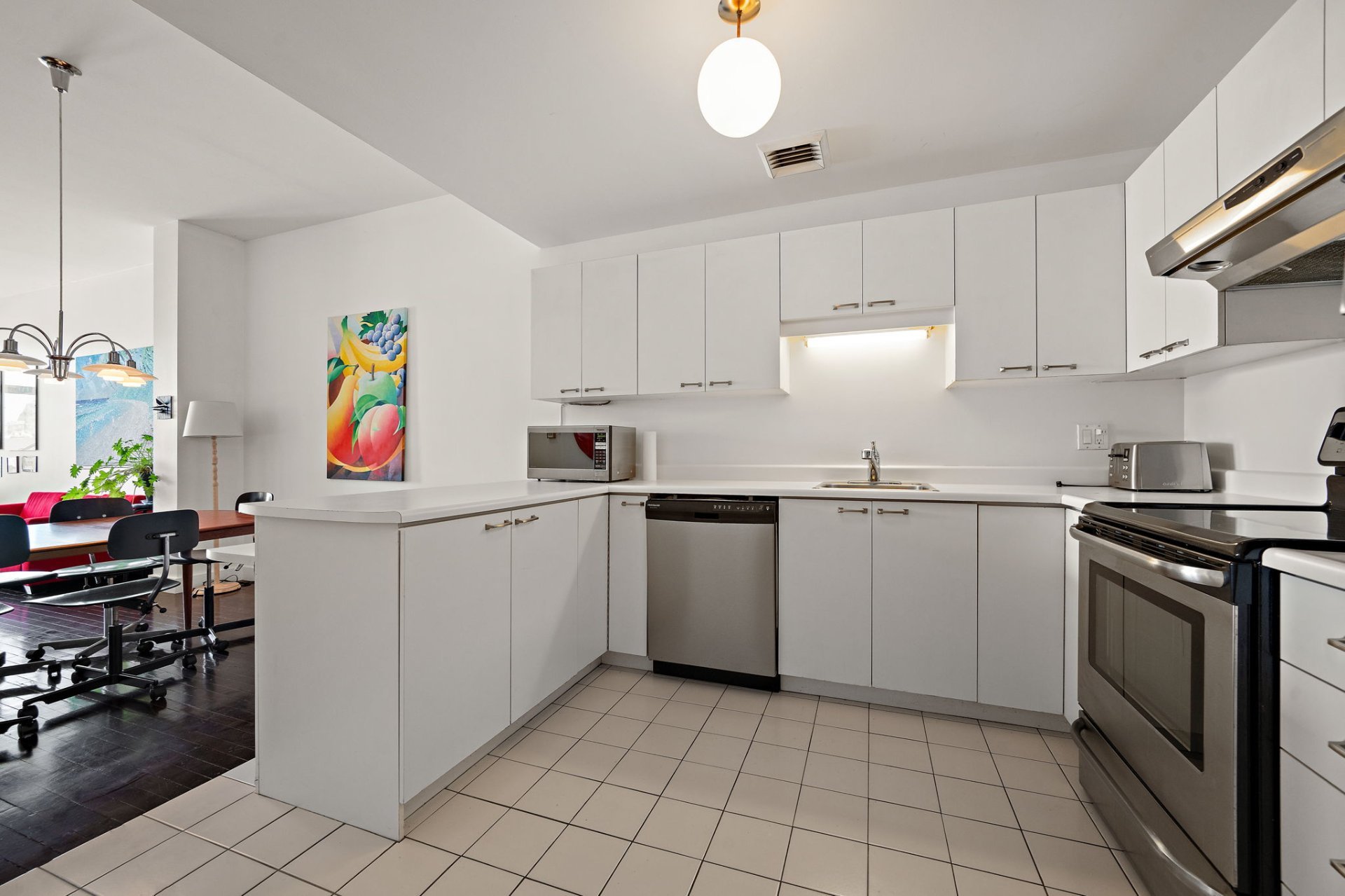 Welcome to 285 Place D’Youville, Apt #55! This charming and spacious 885 sq. ft. 1-bedroom, 1-bathroom condo is located on the 5th floor (top floor) in the heart of Old Port. The unit boasts an abundance of natural light, impeccable fenestration, and an open-concept kitchen, living, and dining area--perfect for entertaining guests. Ideally situated just a short walk from an array of top restaurants, unique shops, and minutes away from downtown and the financial district, this condo offers both convenience and style. Additionally, a locker is included for extra storage space. This condo is a MUST SEE!