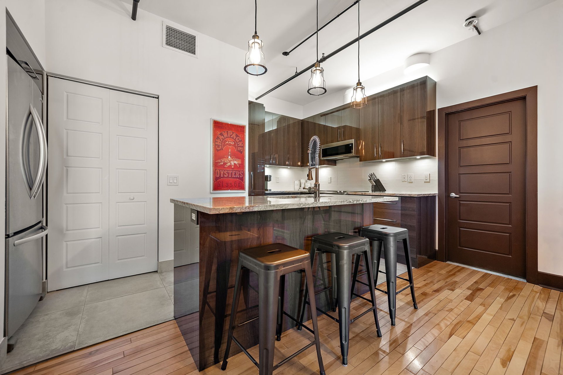 Ideally located just steps from the Atwater Market, Notre-Dame Street, and Place St-Henri & Lionel-Groulx metro stations, this condo places you in the heart of it all. Walk to trendy cafés, restaurants, boutiques, and parks -- all just minutes from downtown and the financial district.
