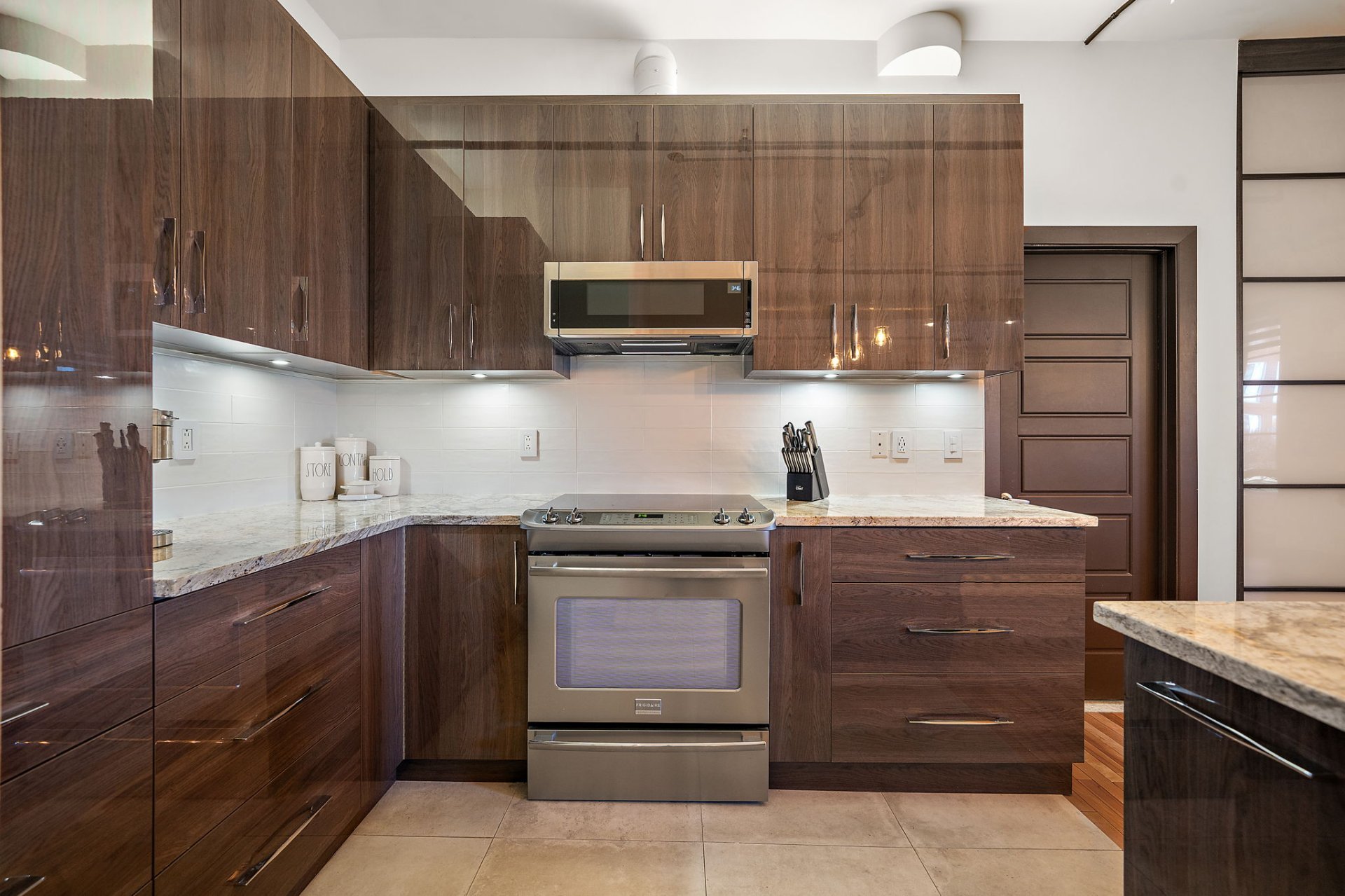 The kitchen is a standout, combining stunning design with smart storage solutions and premium materials. Every detail has been thoughtfully curated, from custom lighting to high-end finishes that elevate daily living.