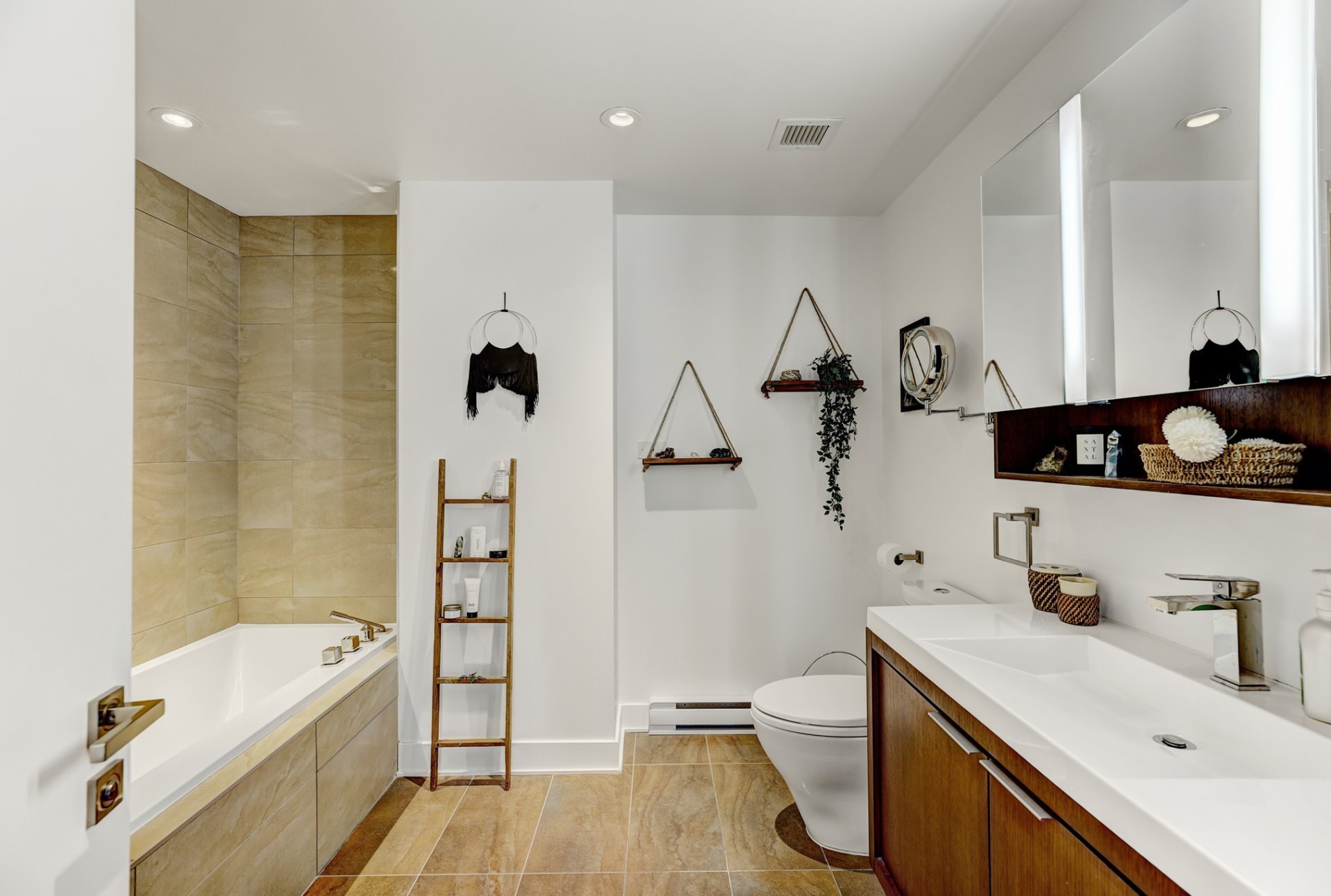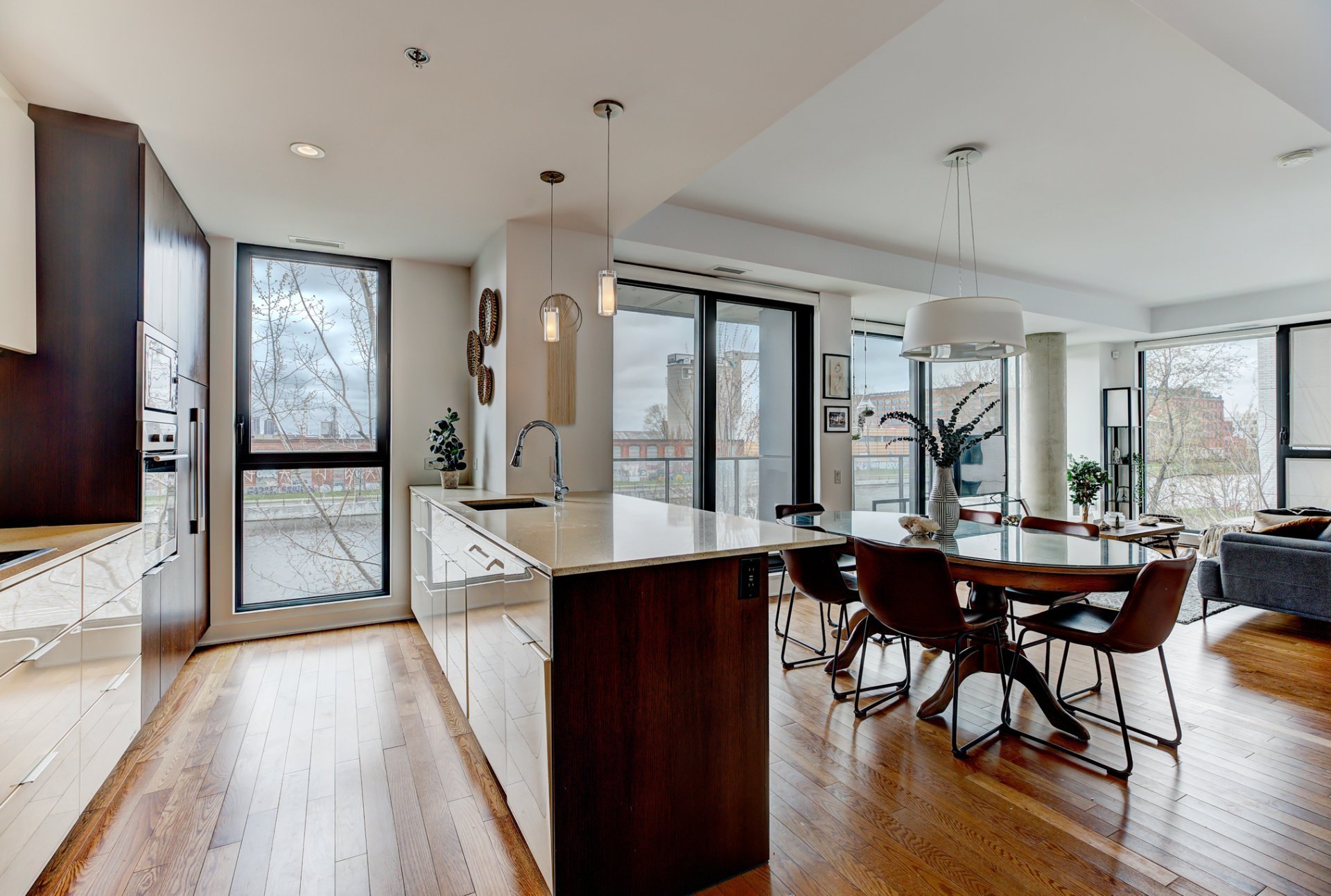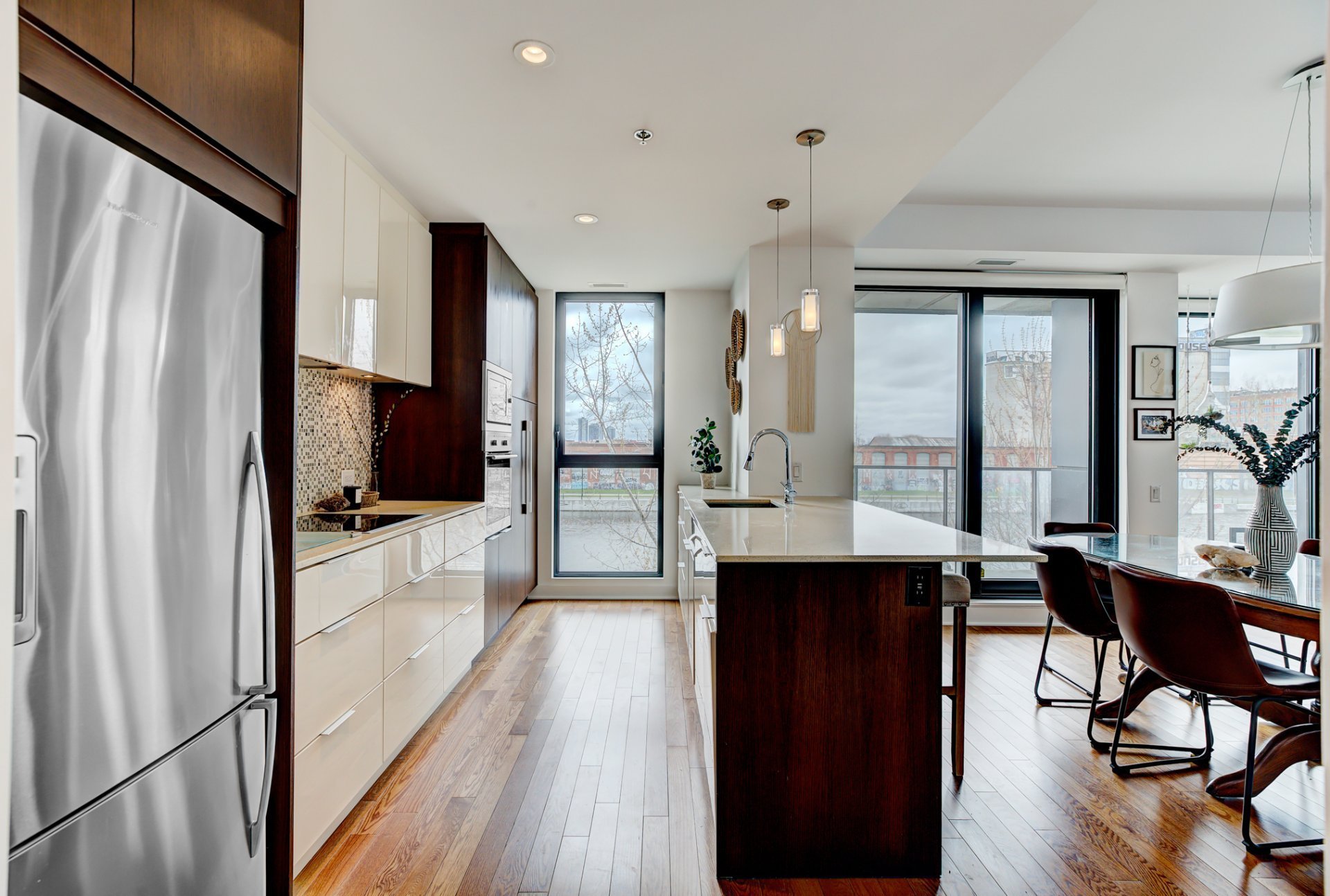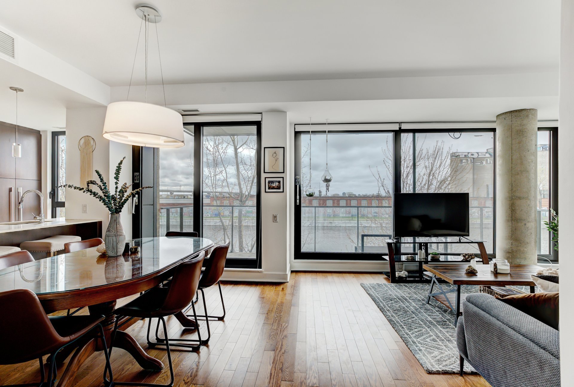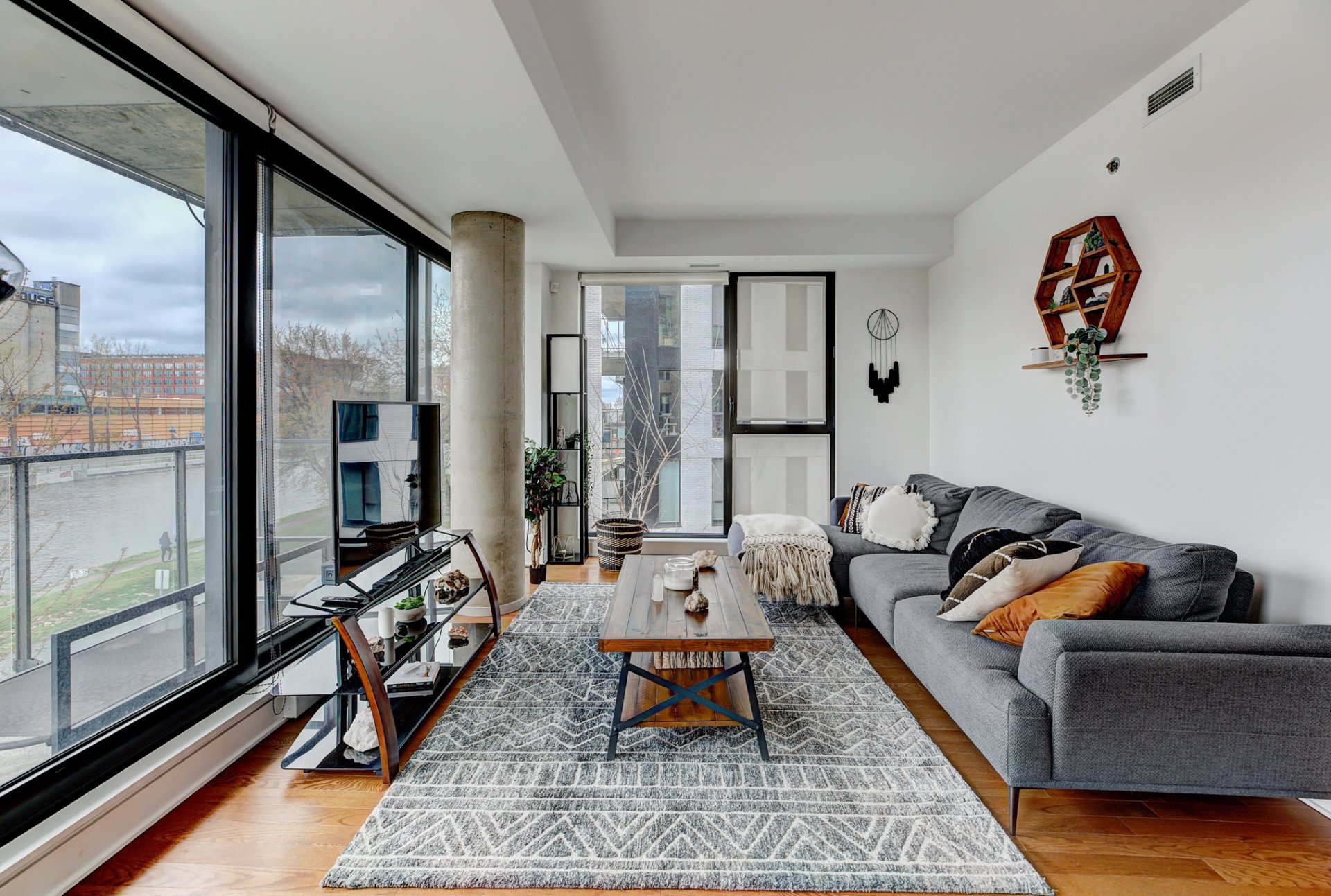WELCOME HOME!! This exquisite 2 bedroom, 1 full bath and 1 powder condo is designed with only the top of the line finishes. This bright and spacious corner unit offers stunning views of the Lachine call with open concept kitchen/living room ideal for entertaining. Large master bedroom with walk-in-closet, lots of storage, Central A/C, 9 ft. ceilings. 2 indoor parking spots (tandem). Bassins du Havre offers you a spectacular gym, indoor pool, terrace on the roof with a pool and amazing city views. Optimally located at minutes from the Old Pört and Downtown, and all amenities including excellent restaurants, schools, and daycares. A MUST SEE!!