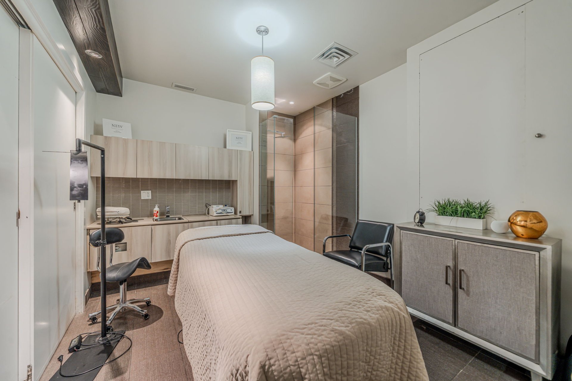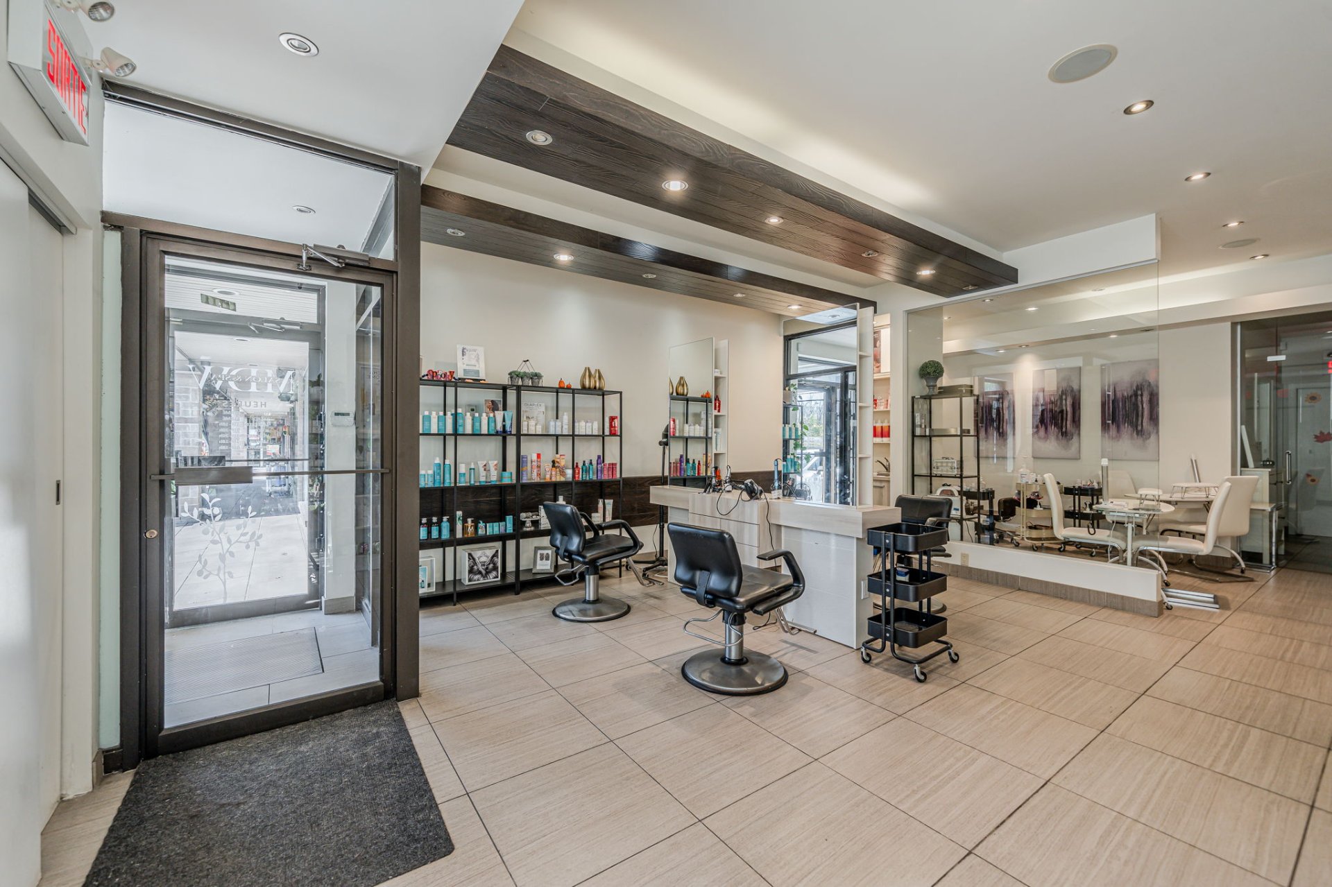 This commercial retail space offers many possibilities for operation. The 1196sqf space consist of a big interior open space perfect for any business, a hall way that leads to 3 separate rooms, a washroom and a good size office space. All businesses except food are welcome.