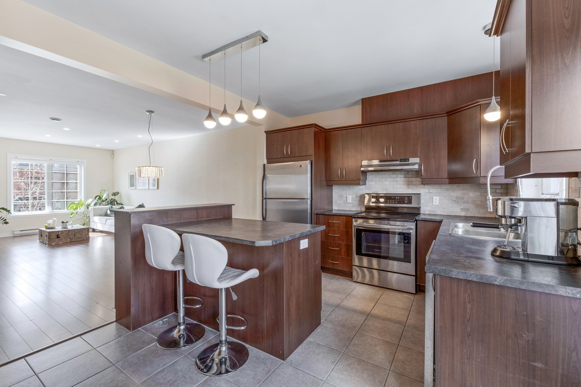Stunning 2-level condo in the sought-after Villas sur Rive of Sainte-Dorothée. Filled with natural light, this spacious home offers an open-concept design ideal for both everyday living and entertaining. The main floor features a large, well-equipped kitchen, a versatile room perfect for a home office, and a convenient powder room. Upstairs, you’ll find two generous bedrooms and a full bathroom. Step out onto your private rear balcony and enjoy the included outdoor parking. Located in a serene neighbourhood, yet just minutes from shopping, services, and major highways--this condo is a rare find!