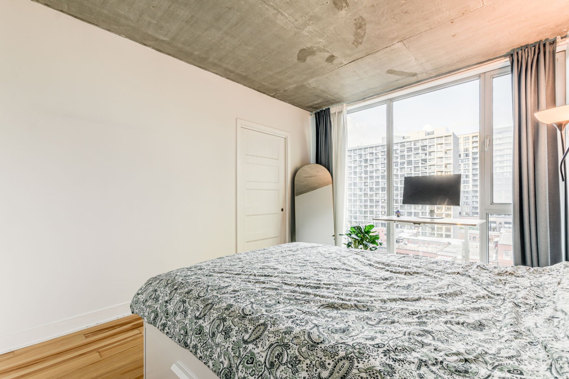 The bedroom offers generous closet space and oversized windows, while the den provides flexibility--perfect as a home office, reading nook, or guest space. The bathroom is modern with clean lines and quality finishes. Enjoy your own private balcony with panoramic urban views, ideal for morning coffee or evening relaxation.