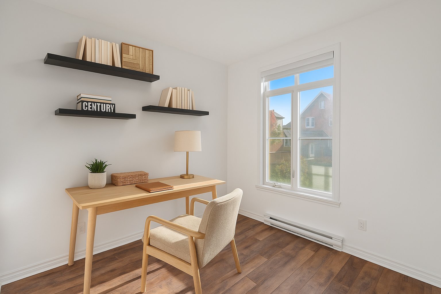 Permanent heating and lighting installations, curtain rods, curtains, electric blinds (some blinds are non-functional), light fixtures, dishwasher, wall-mounted air conditioner, garage door opener, refrigerator, stove, microwave, washer-dryer.