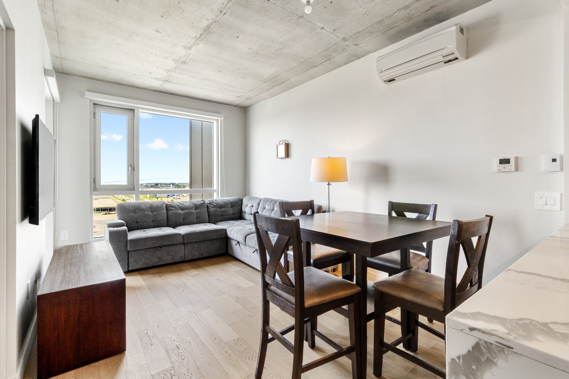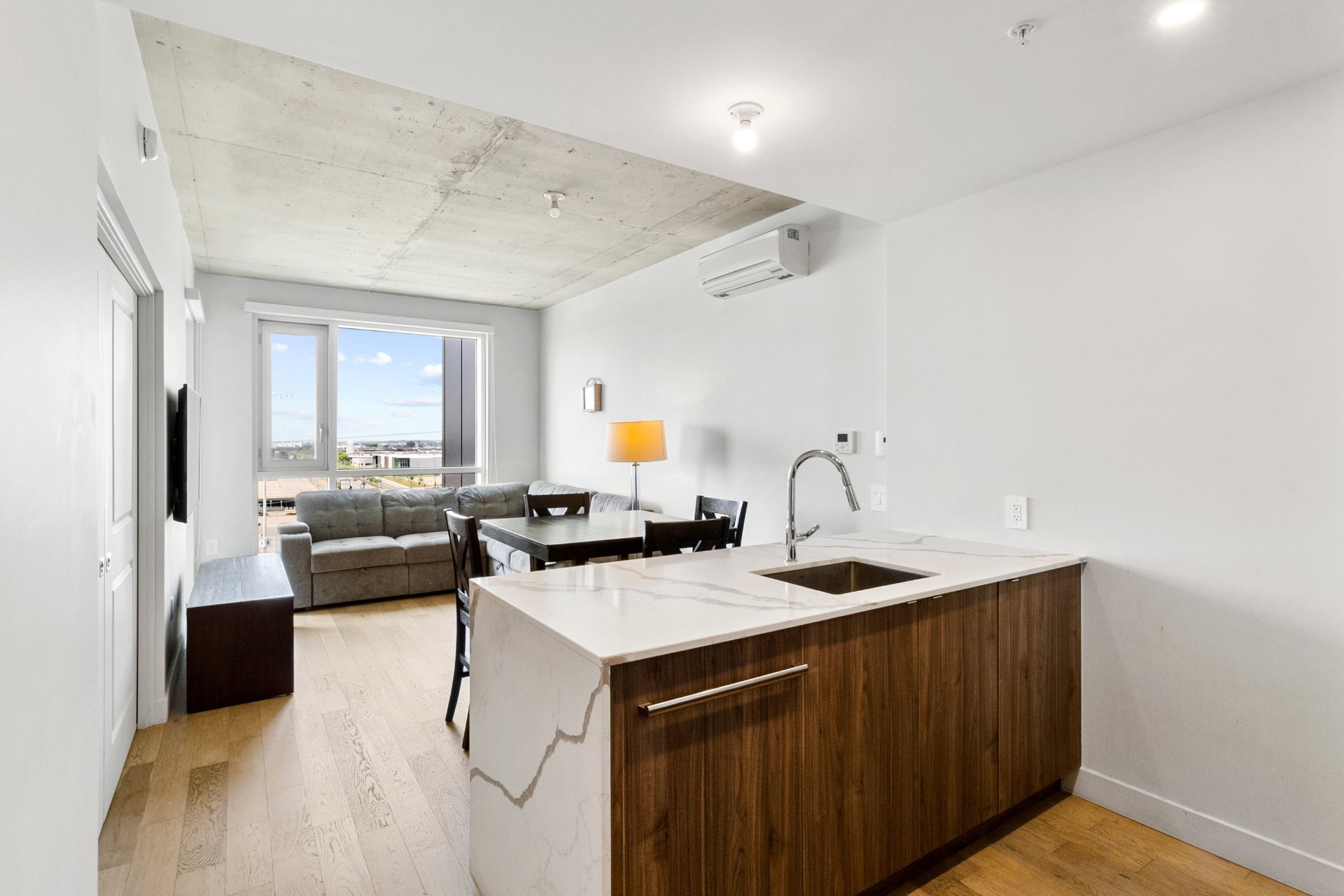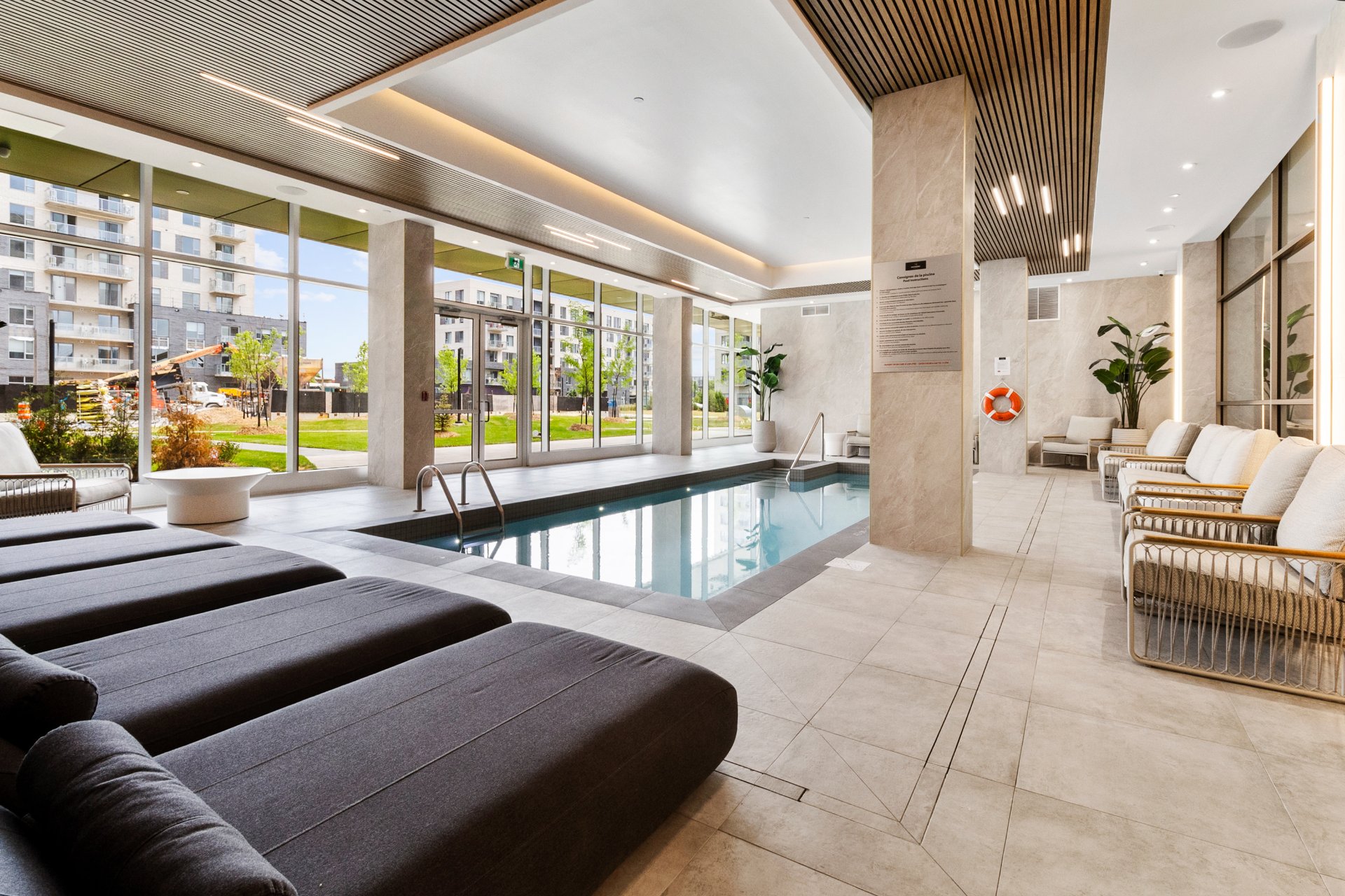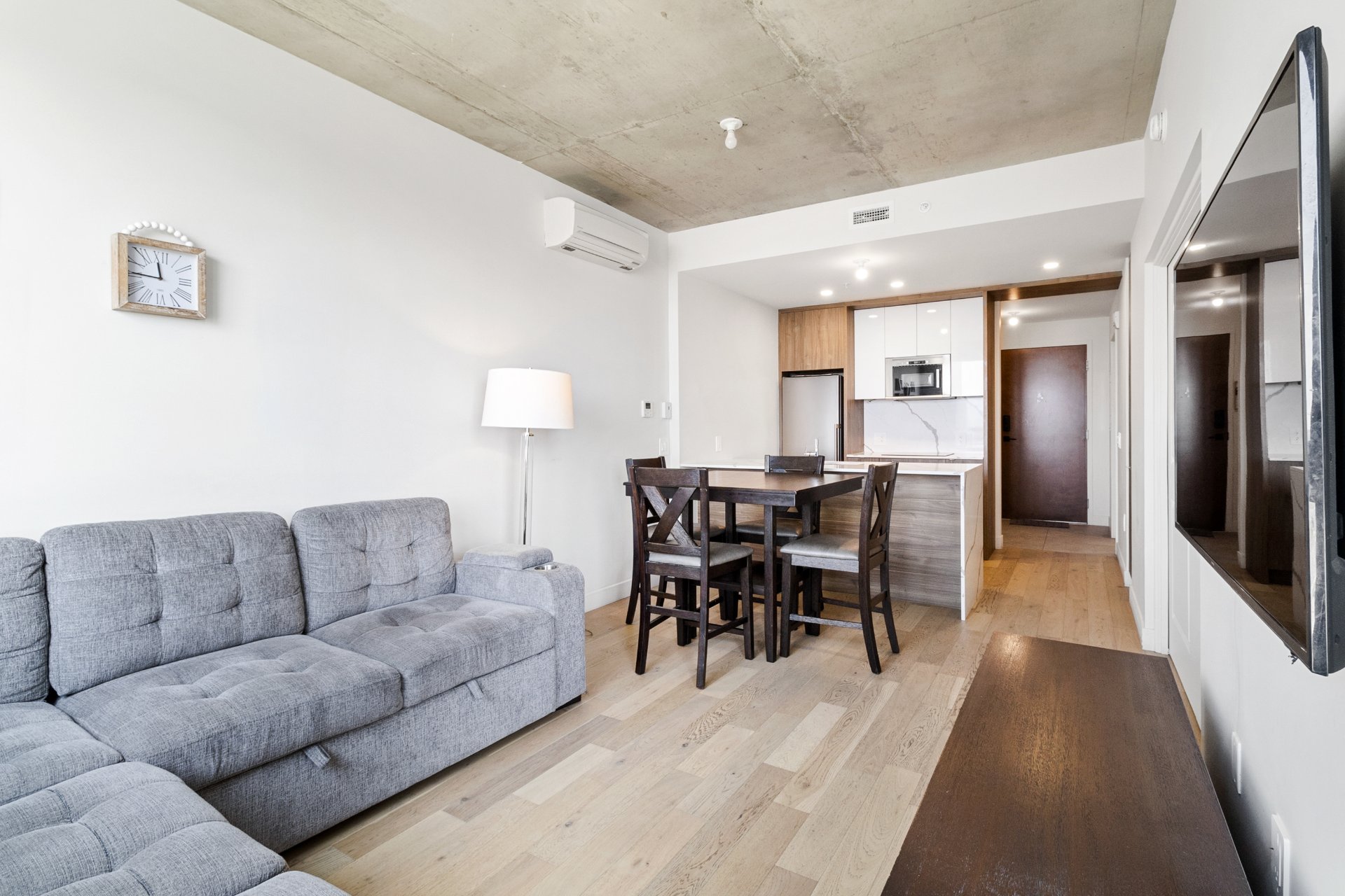 Bright 1-bedroom condo on the 8th floor in Ville Saint-Laurent. Features large windows, private balcony, walk-in closet connected to the bathroom, and in-unit washer/dryer. Owners chose high-end finishes including full marble kitchen and automated blinds. Includes garage and locker. Enjoy top-tier amenities: indoor pool, gym, rooftop terrace, VIP gaming room, and coworking spaces.