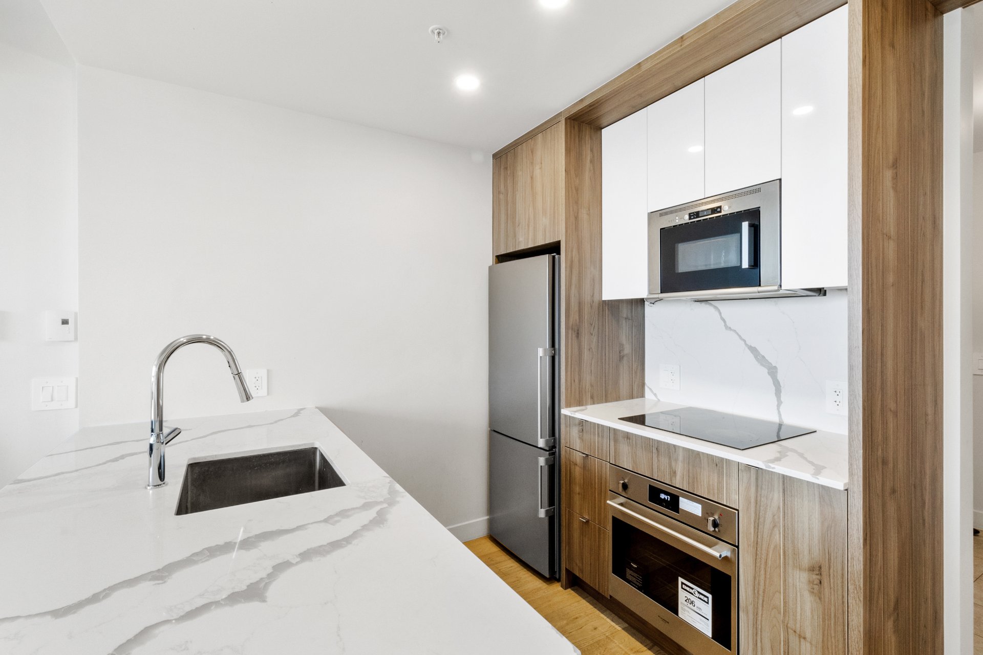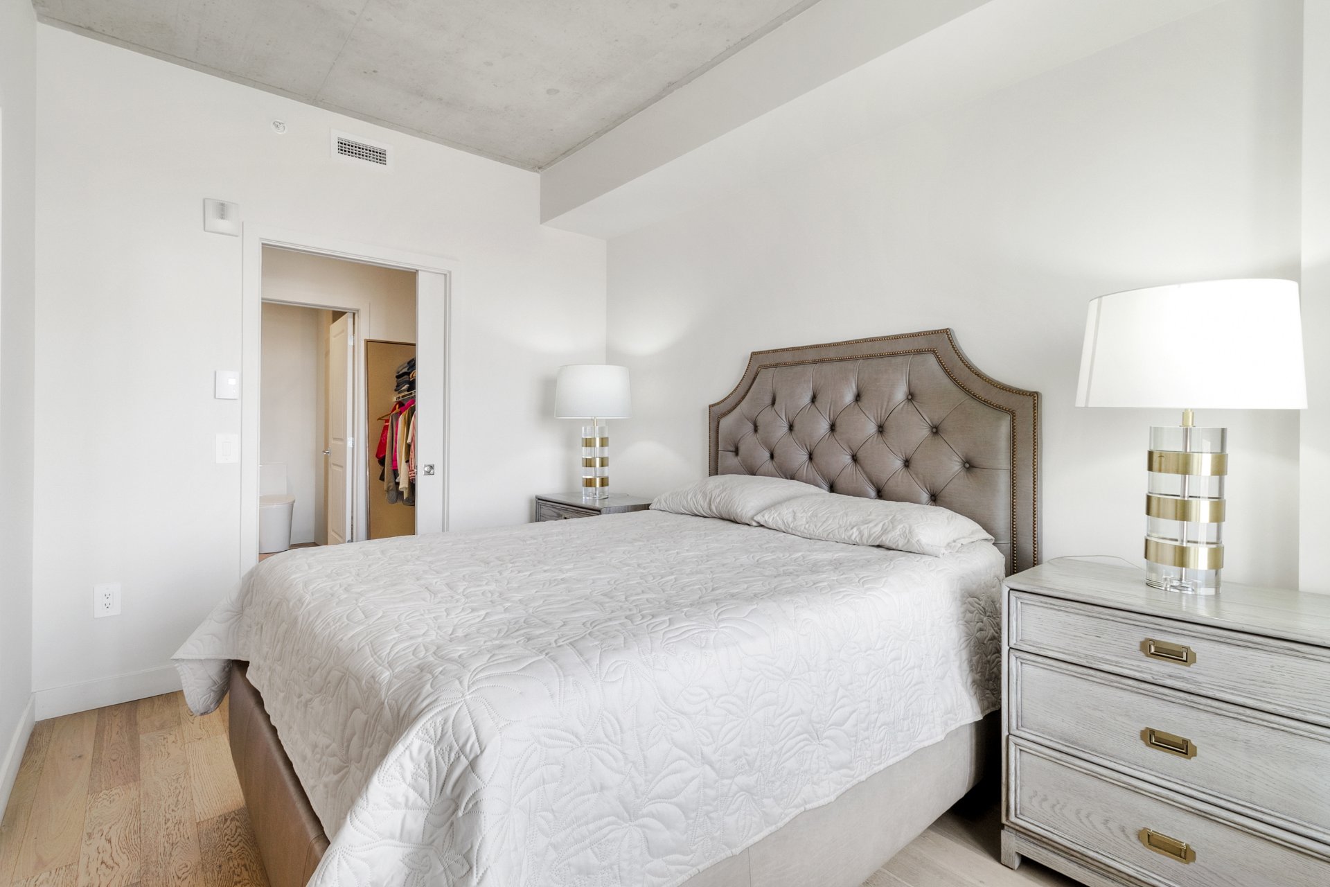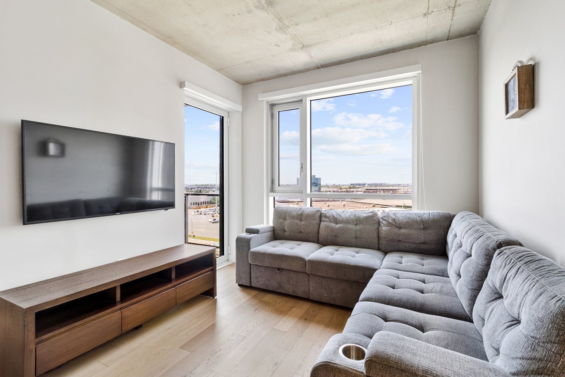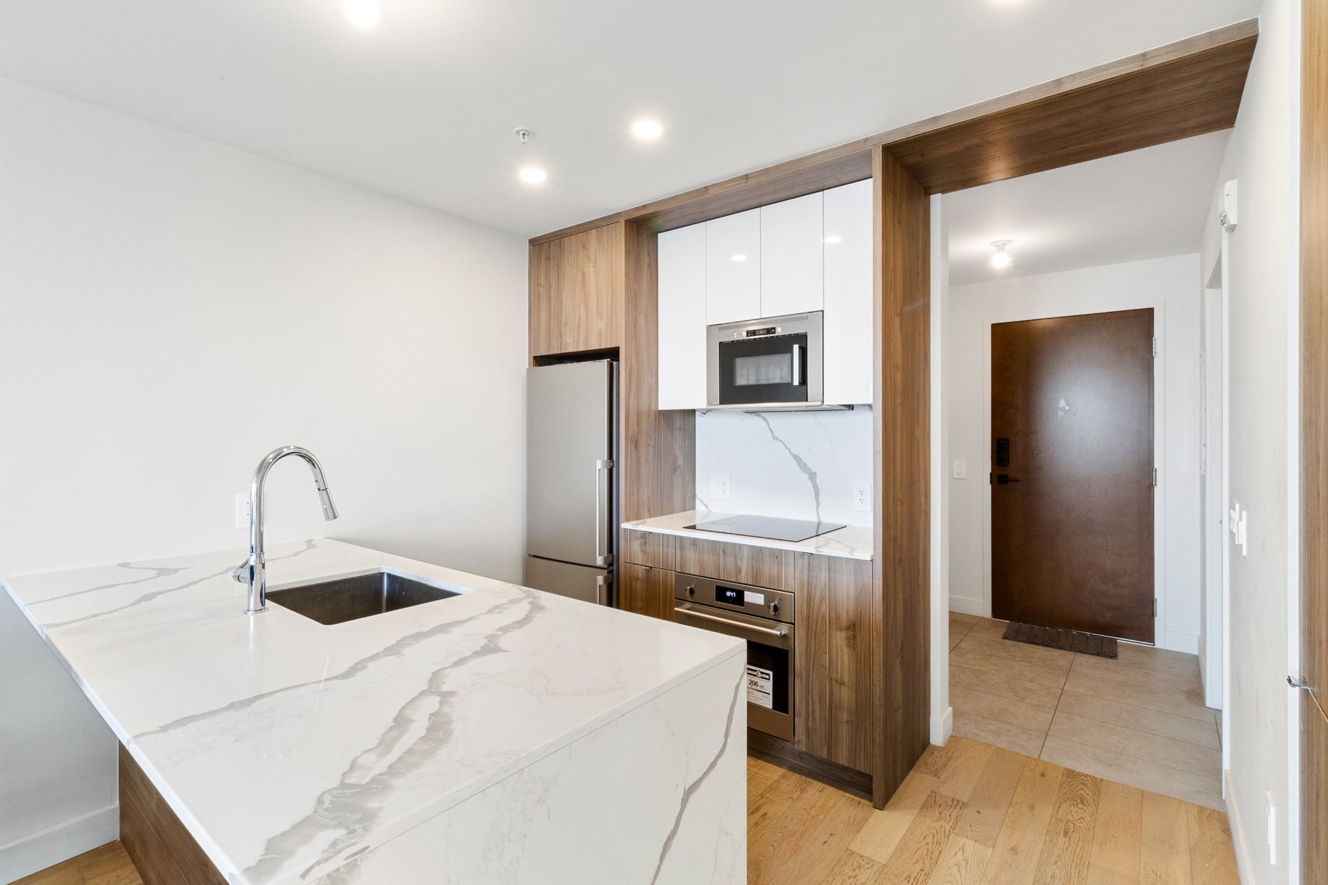 Bright 1-bedroom condo on the 8th floor in Ville Saint-Laurent. Features large windows, private balcony, walk-in closet connected to the bathroom, and in-unit washer/dryer. Owners chose high-end finishes including full marble kitchen and automated blinds. Includes garage and locker. Enjoy top-tier amenities: indoor pool, gym, rooftop terrace, VIP gaming room, and coworking spaces.
