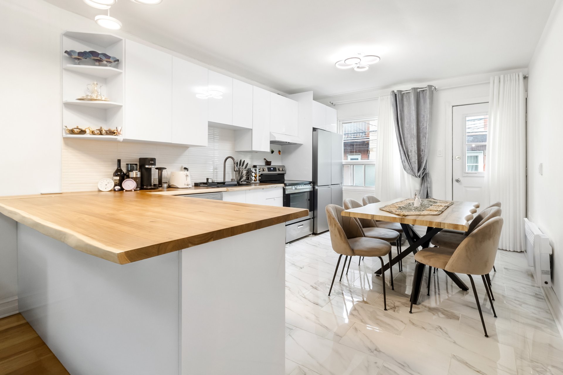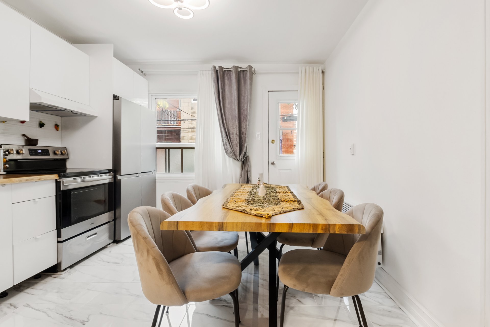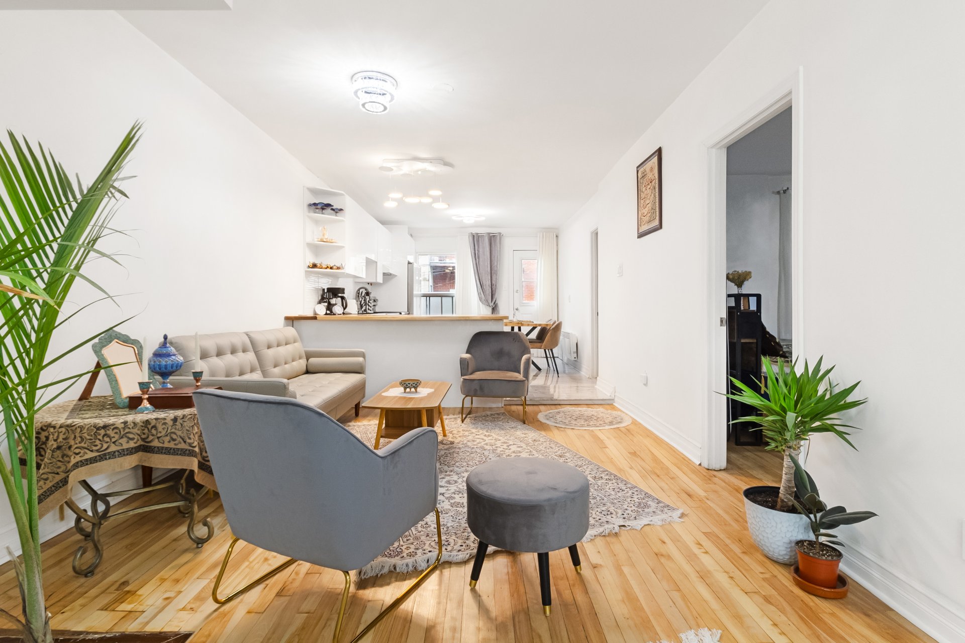 Fully renovated and filled with natural light, this apartment features a modern and functional layout with three bedrooms (two on the main floor and one in the basement) and two full bathrooms. Offered fully furnished, with internet and appliances included, it also provides direct access to the yard, perfect for enjoying outdoor space. Ideally located in a sought-after neighborhood, within walking distance of Acadie metro, close to Rockland mall, major highways, and all essential services.