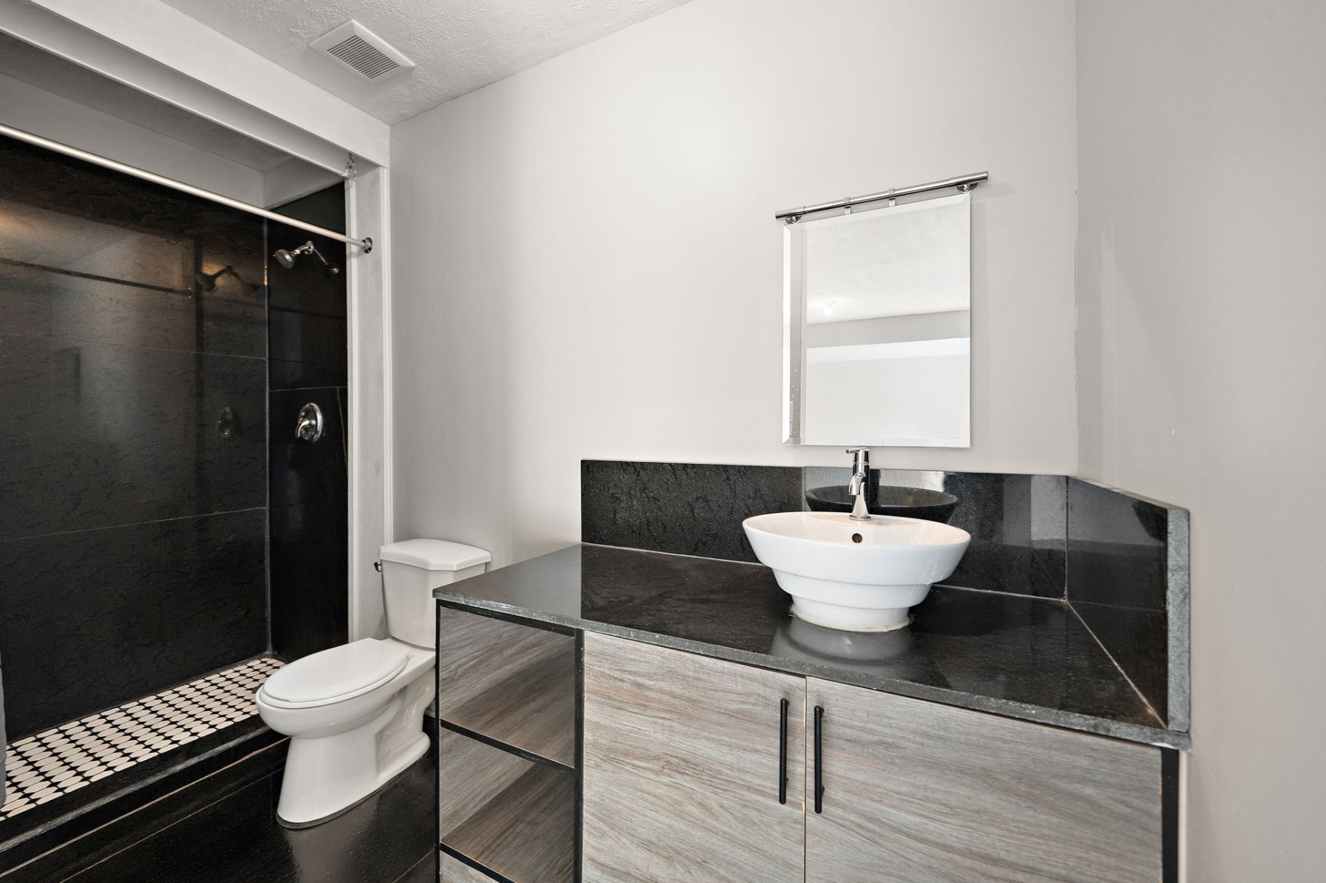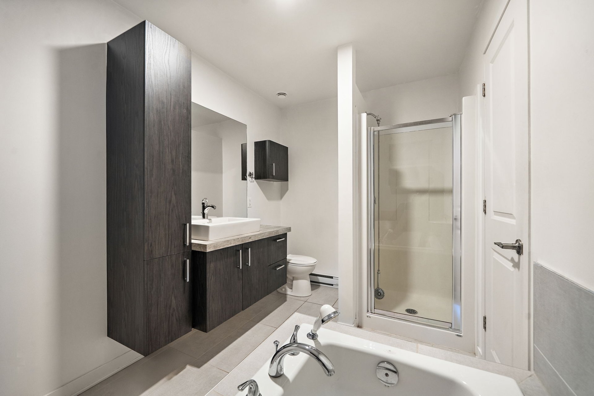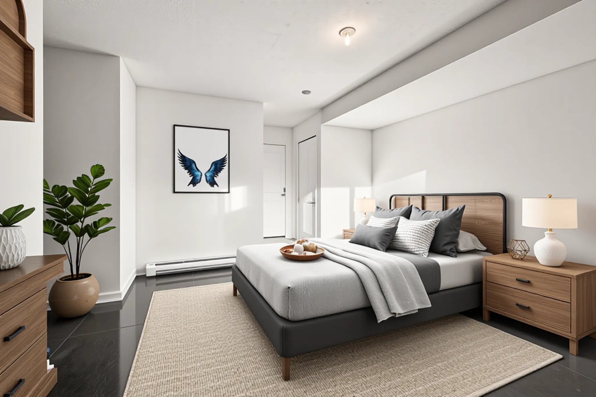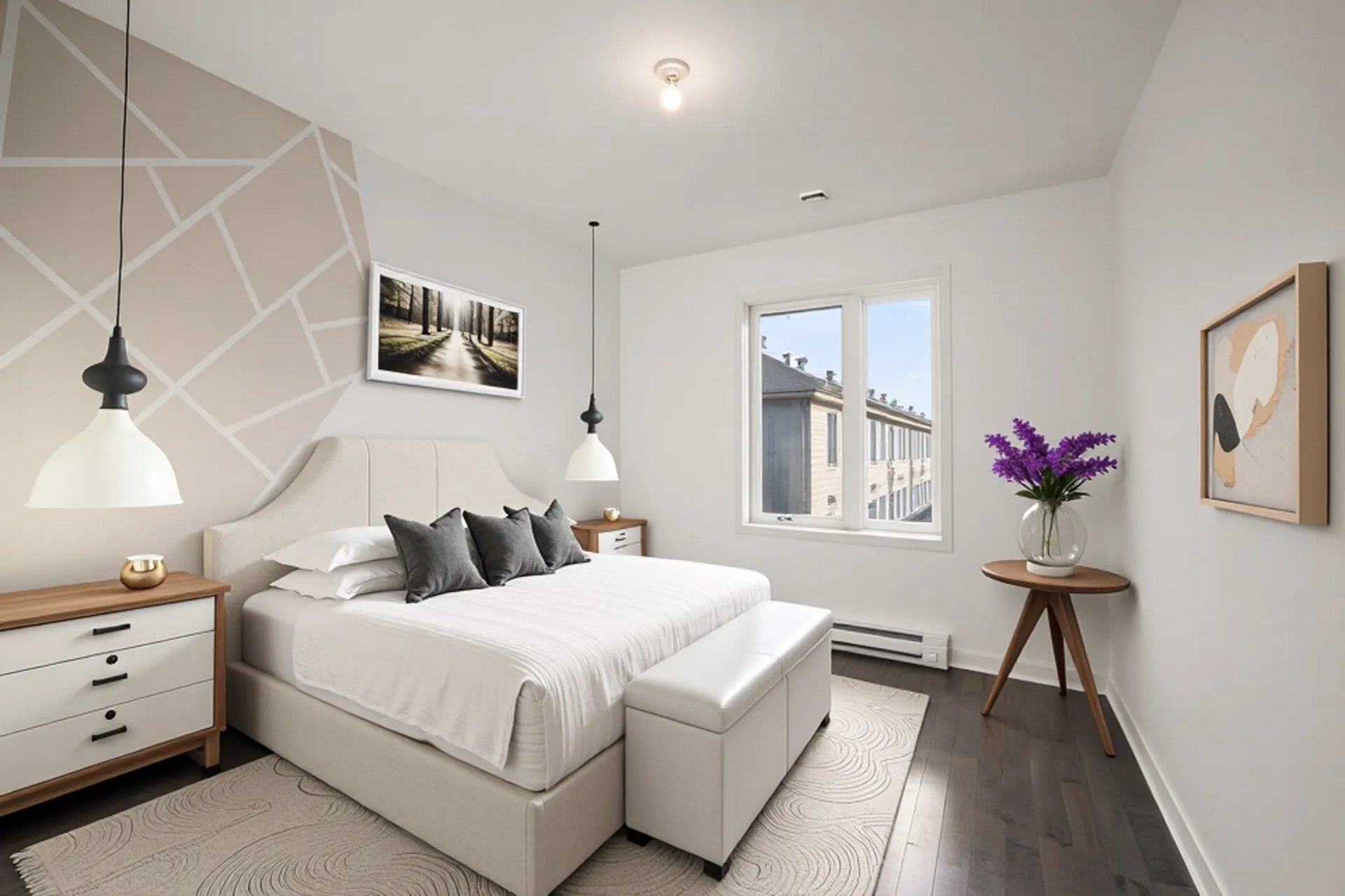 Le rez-de-chaussée comprend une grande chambre avec sa propre salle de bain, idéale pour accueillir des invités ou servir de bureau à domicile, ainsi qu’un accès direct au garage et à la terrasse extérieure. Comme cet espace est moletement indépendant et dispose de sa propre salle de bain, vous pourriez le louer pour aider avec l’hypothèque.