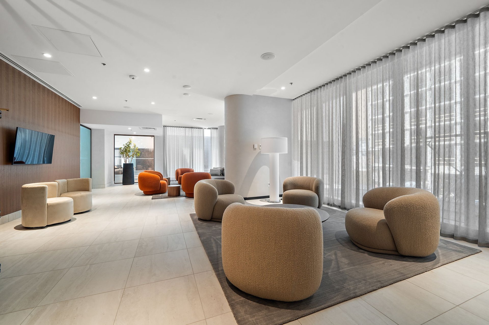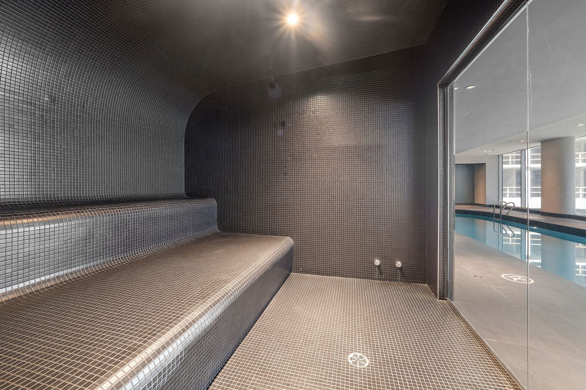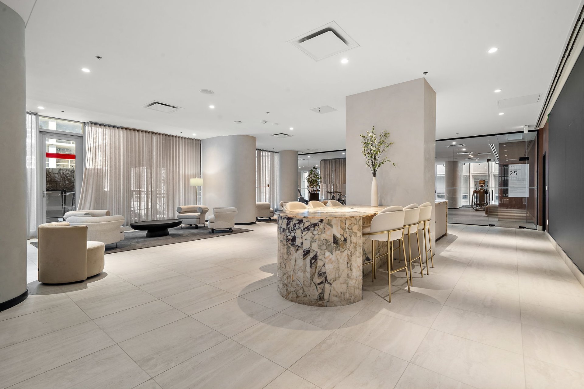 Enjoy access to a full range of upscale amenities: a state-of-the-art gym, an indoor pool, a dry and wet sauna, and a rooftop terrace with panoramic city views. Multiple lounge areas throughout the building offer a refined space to work, meet, or unwind. For added peace of mind, residents benefit from 24/7 security and concierge service.