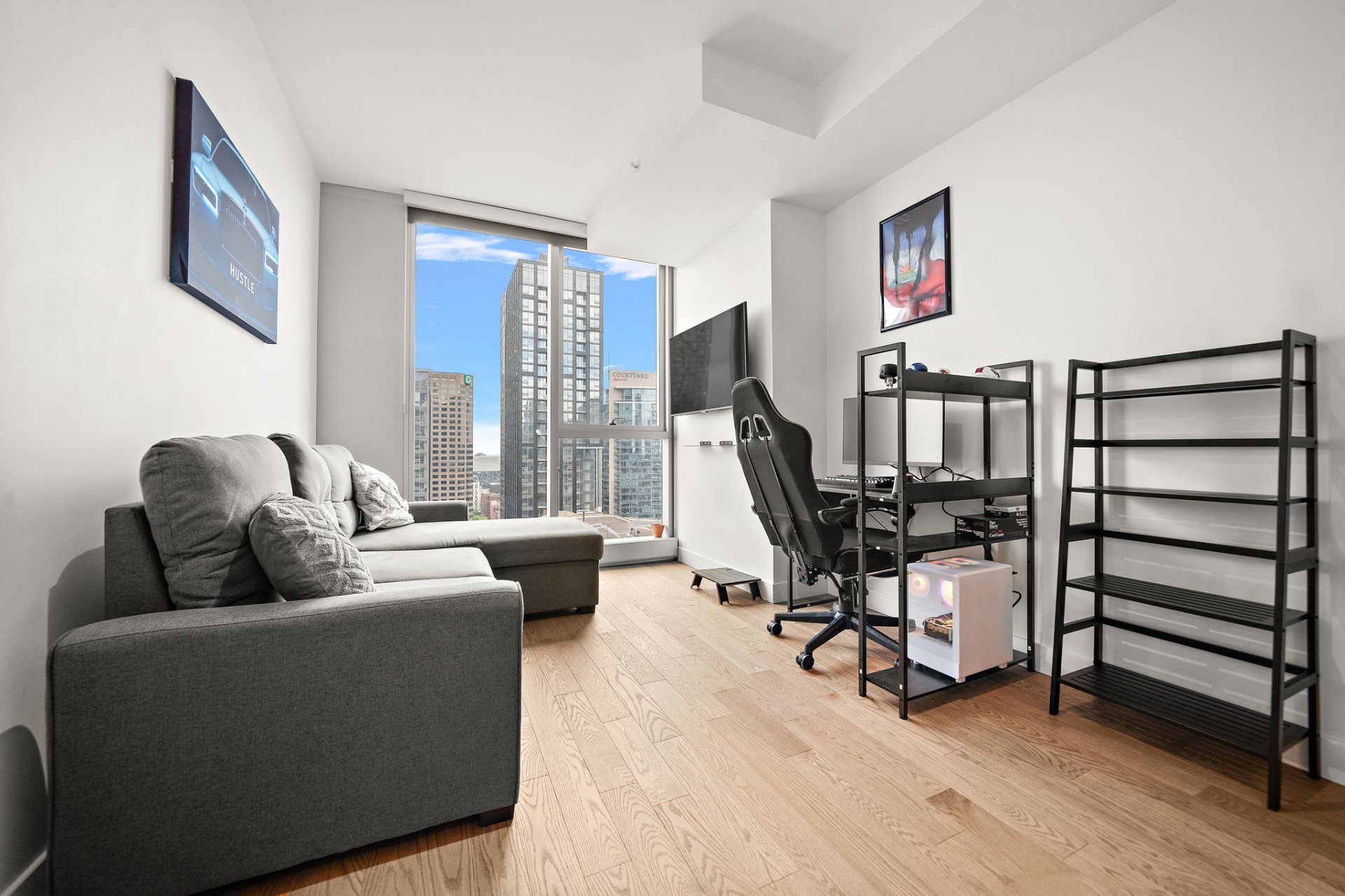 Live in the heart of Montreal in this elegant and thoughtfully designed studio apartment, nestled within a brand new, full-service luxury building. The unit features a sleek, modern kitchen with built-in appliances, stylish cabinetry, and clean contemporary finishes. The open-concept living and sleeping area is flooded with natural light thanks to large windows, while the intelligent layout maximizes functionality without compromising on style.