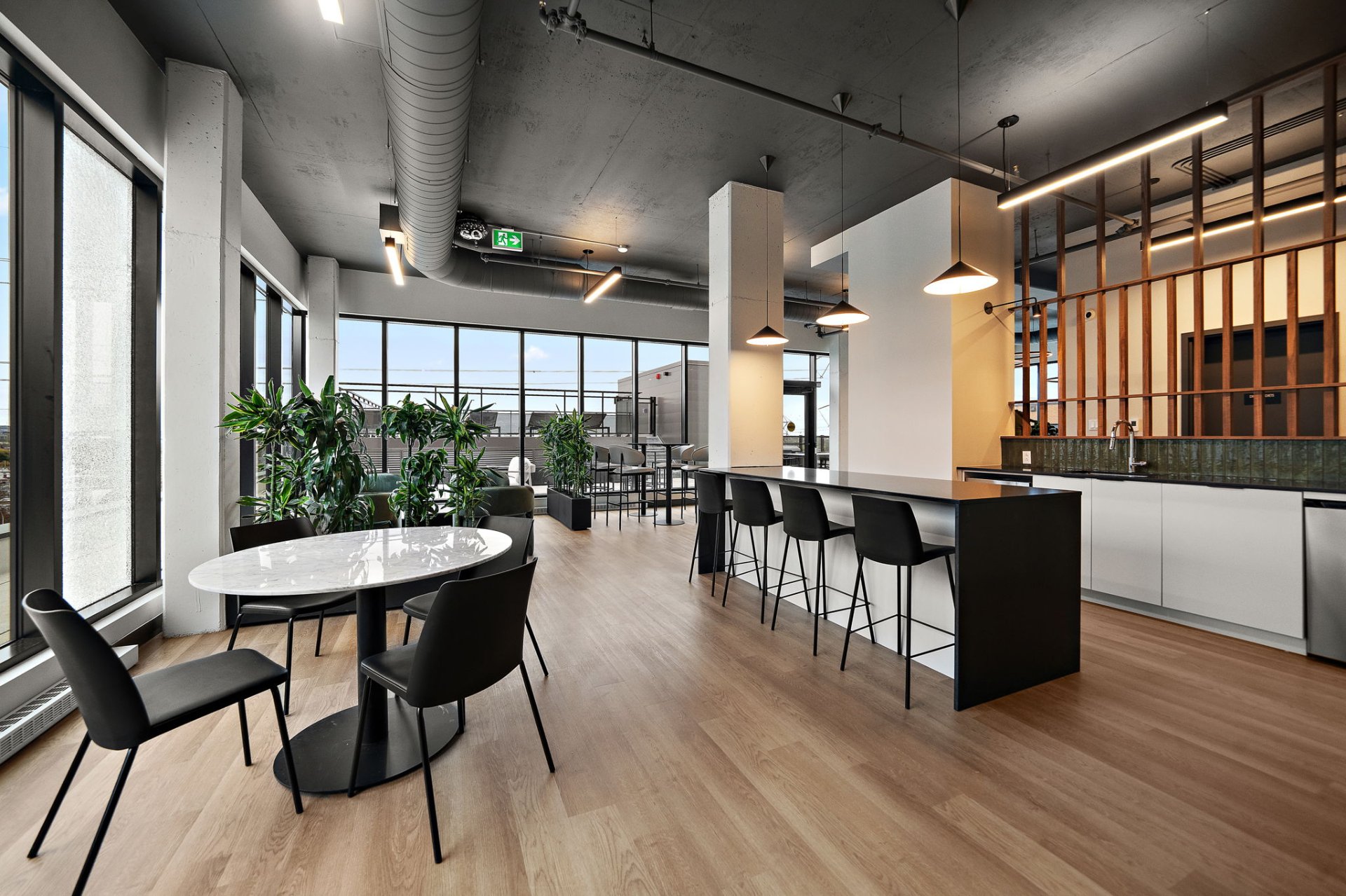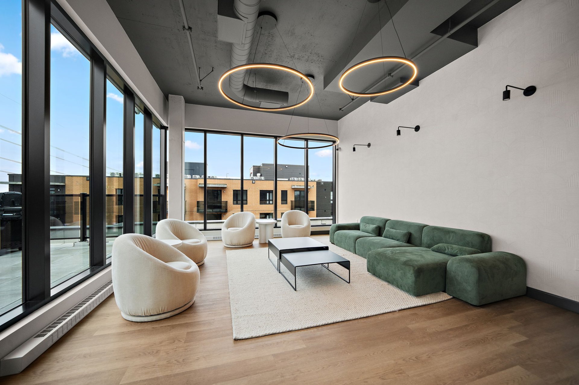- Electric vehicle charging stations- Camera surveillance- Indoor fitness centre- Rooftop terrace with pool- Urban chalet- Superior soundproofing- Landscaped outdoor courtyard