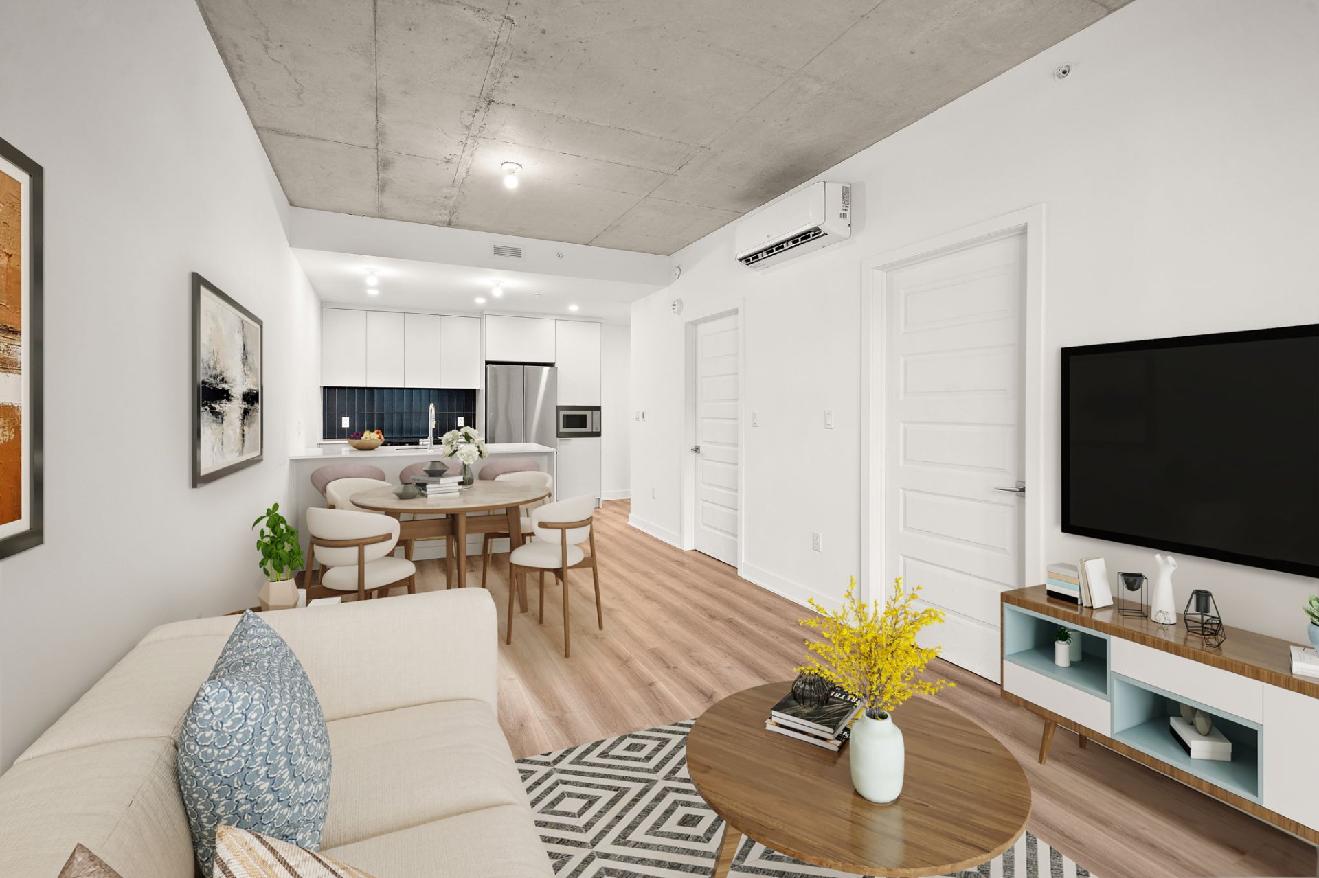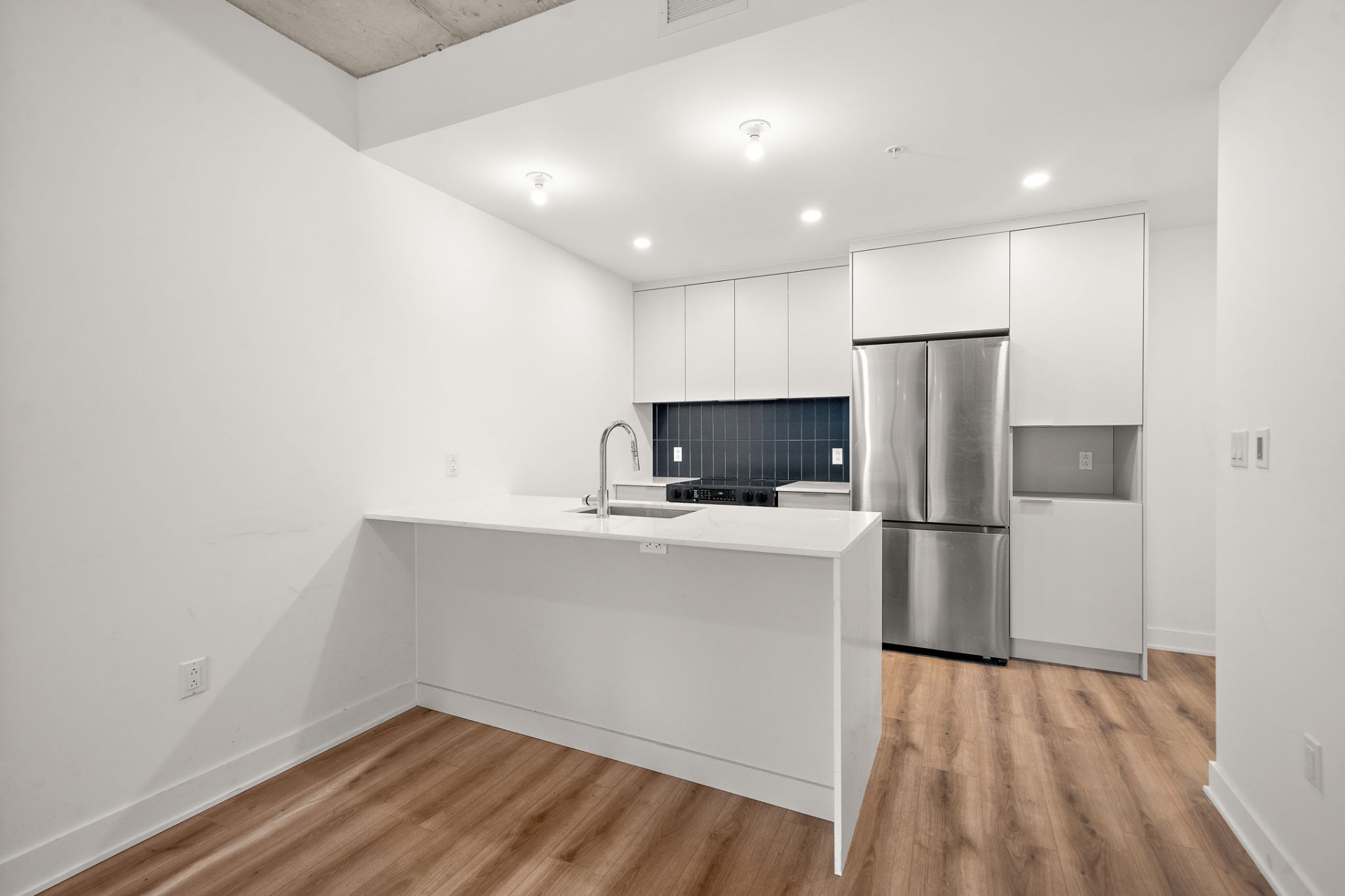 Discover contemporary urban living in this beautifully designed 1-bedroom, 1-bathroom apartment located in a modern full-service building. This bright and stylish unit offers a functional open-concept layout, combining comfort, design, and everyday convenience. The living space is flooded with natural light thanks to large windows and features warm wood-tone flooring and a sleek, minimalist aesthetic. The kitchen blends seamlessly into the living and dining areas, showcasing modern cabinetry, clean lines, and quality finishes -- perfect for both quiet evenings at home and entertaining guests.