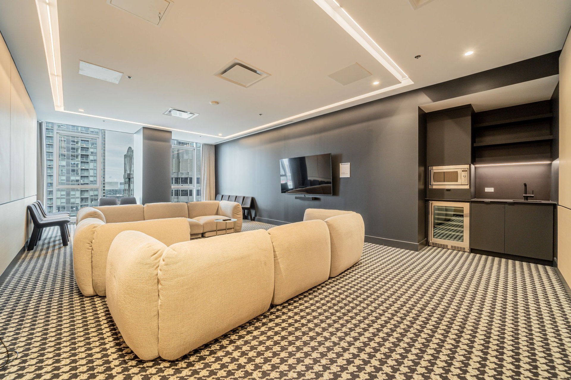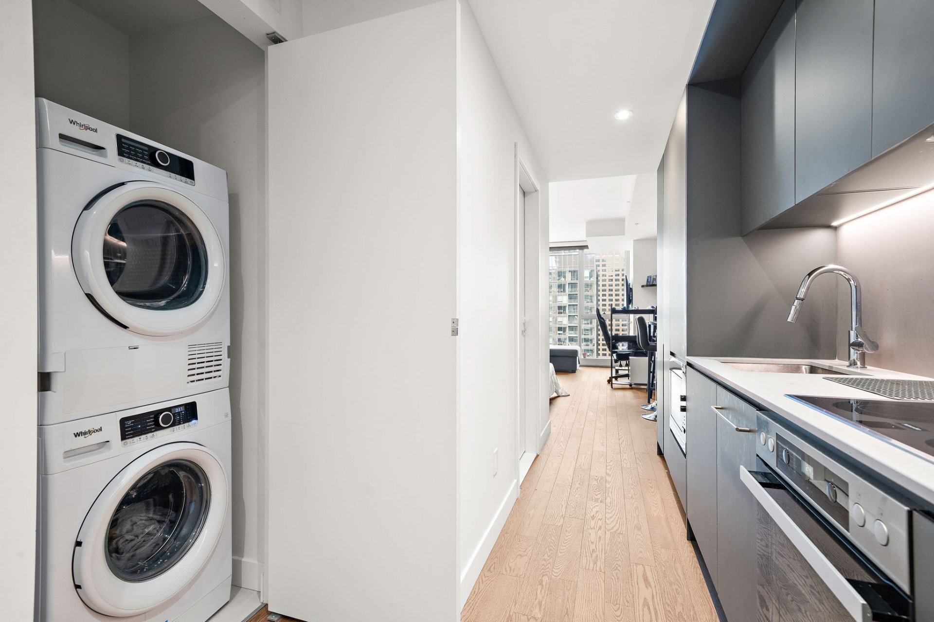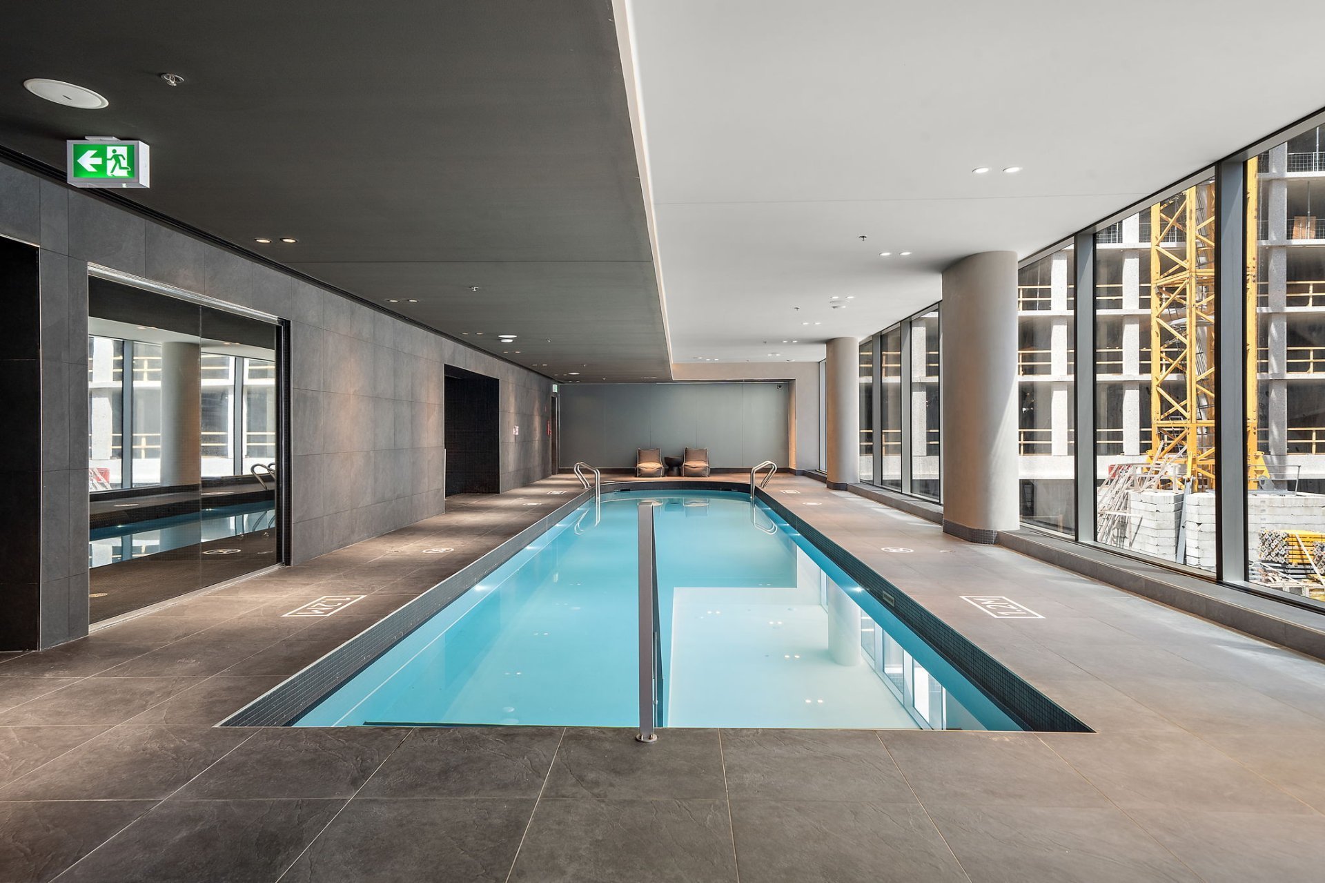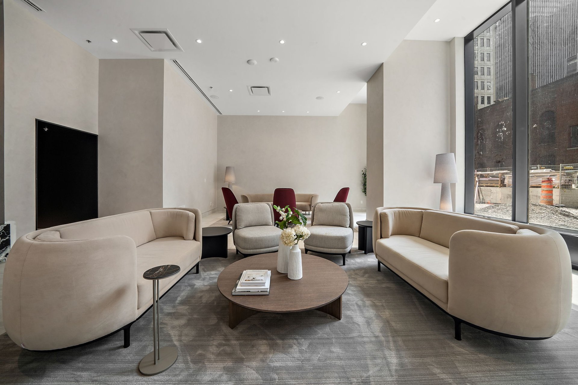 Enjoy access to a full range of upscale amenities: a state-of-the-art gym, an indoor pool, a dry and wet sauna, and a rooftop terrace with panoramic city views. Multiple lounge areas throughout the building offer a refined space to work, meet, or unwind. For added peace of mind, residents benefit from 24/7 security and concierge service.
