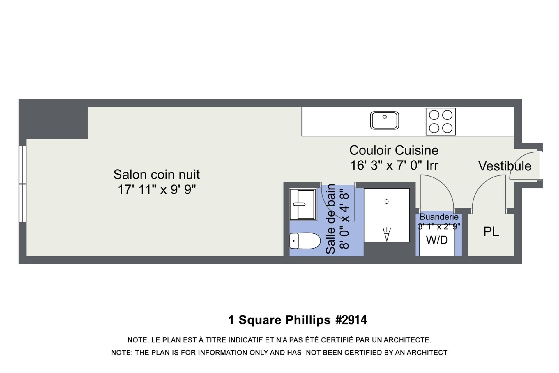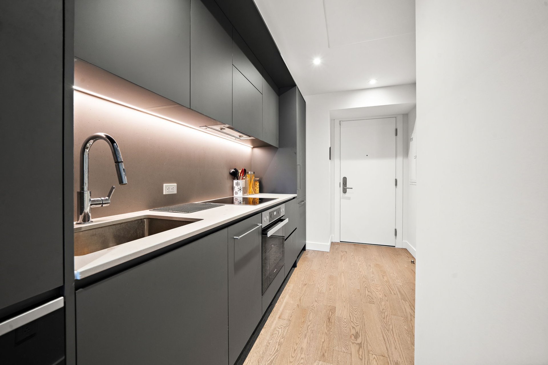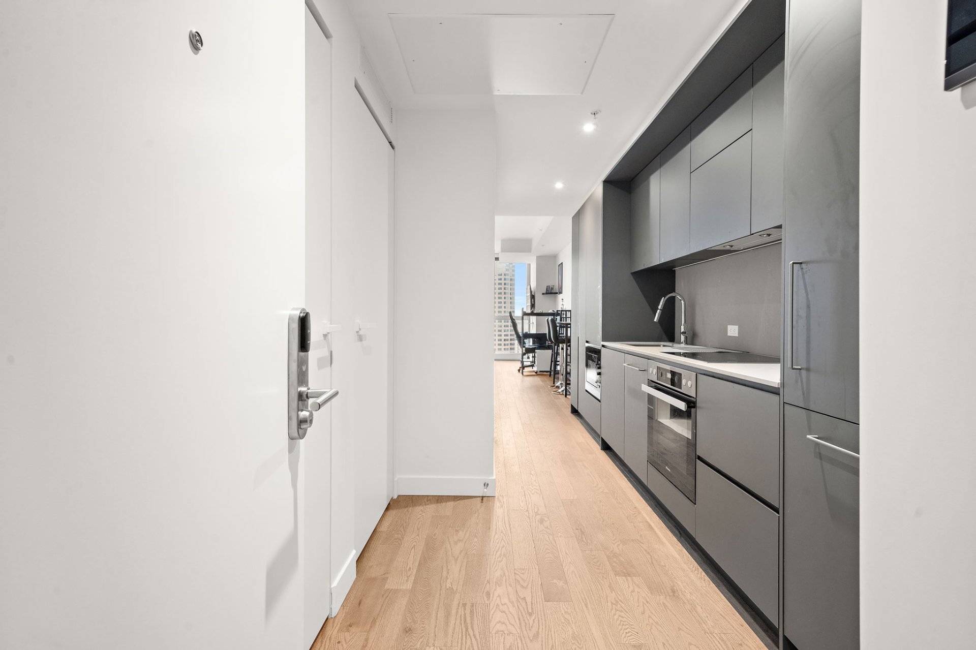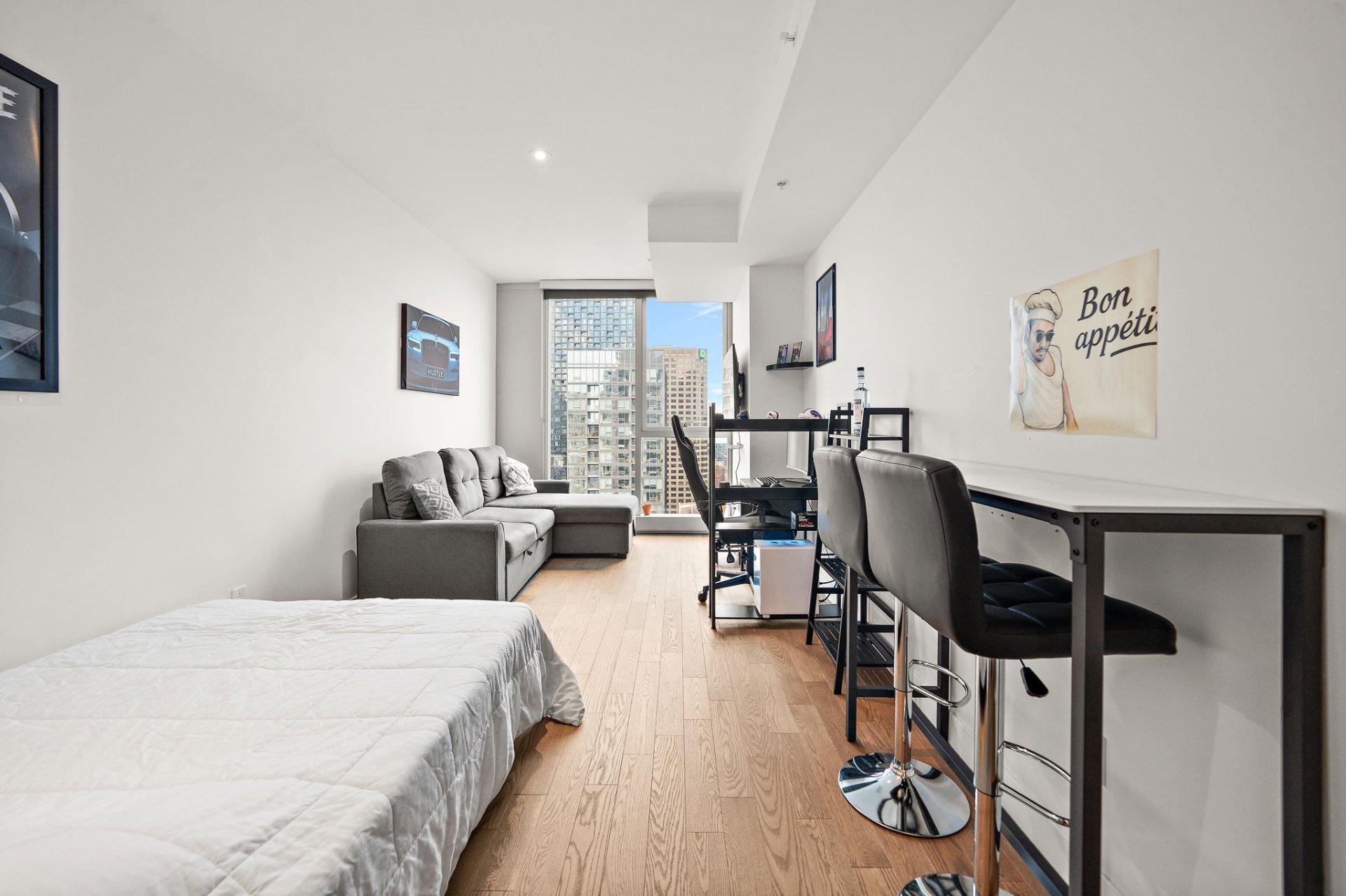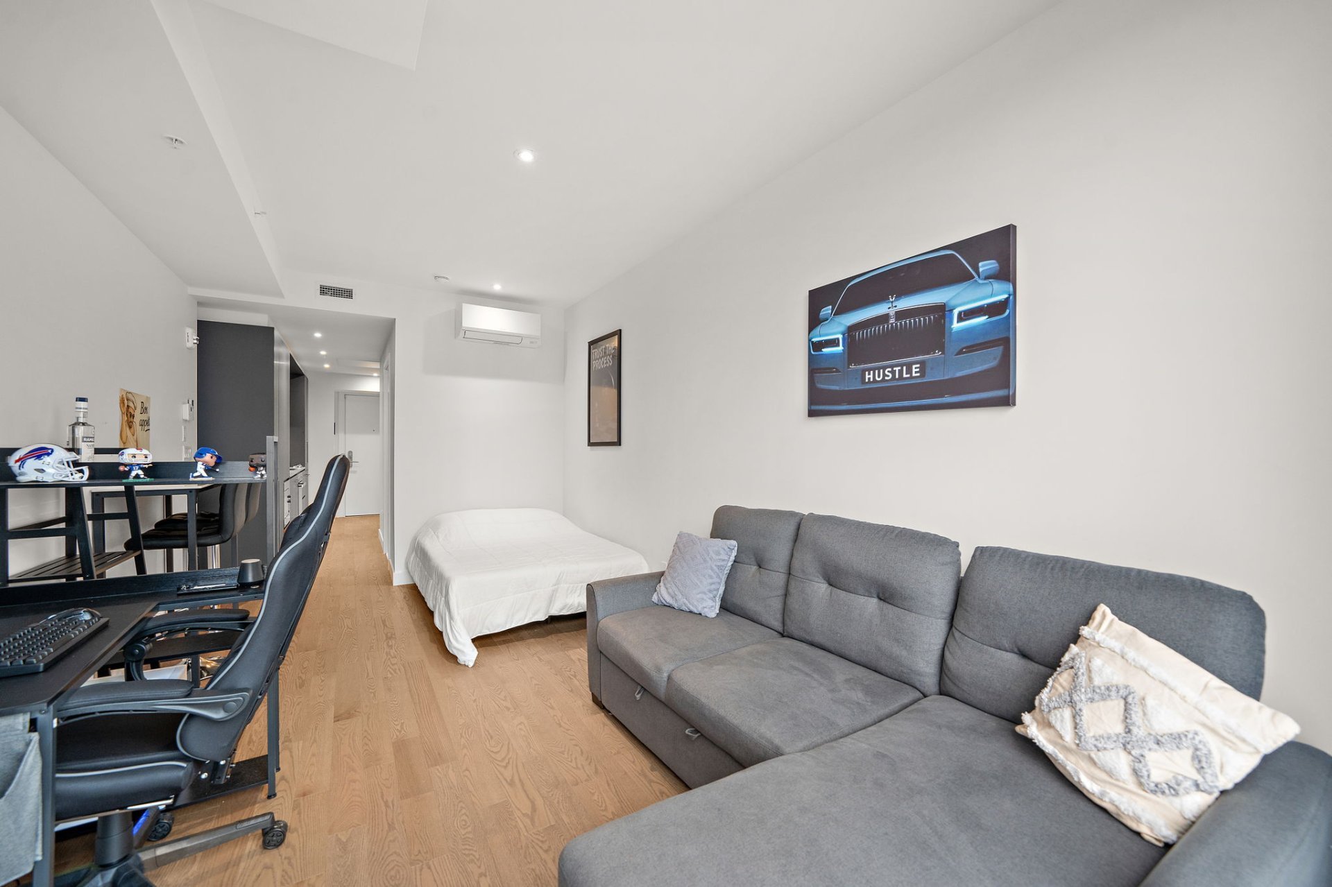 Live in the heart of Montreal in this elegant and thoughtfully designed studio apartment, nestled within a brand new, full-service luxury building. The unit features a sleek, modern kitchen with built-in appliances, stylish cabinetry, and clean contemporary finishes. The open-concept living and sleeping area is flooded with natural light thanks to large windows, while the intelligent layout maximizes functionality without compromising on style.
