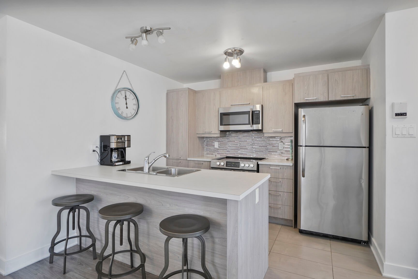 Step into elegance and comfort in this luminous open-concept condo, offering about 1,033 sq. ft. of well-designed living space. Nestled on a quiet residential street, this modern 2-bedroom unit features a sleek kitchen, full of natural light, and a private balcony, perfect for relaxing mornings or cozy evenings. Built in 2017 and lovingly maintained by its original owner, this gem is ideal for first-time buyers, couples, or families looking to settle in a peaceful and well-connected community. Located minutes from highways. This move-in-ready home combines style, simplicity, and smart value. A rare opportunity not to be missed!