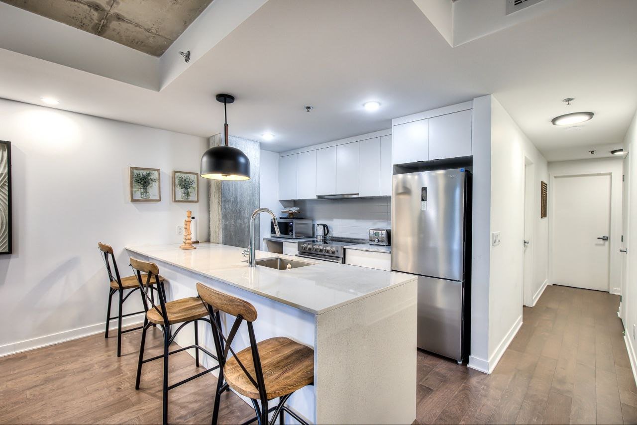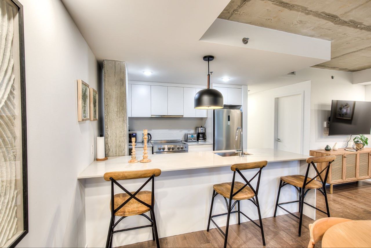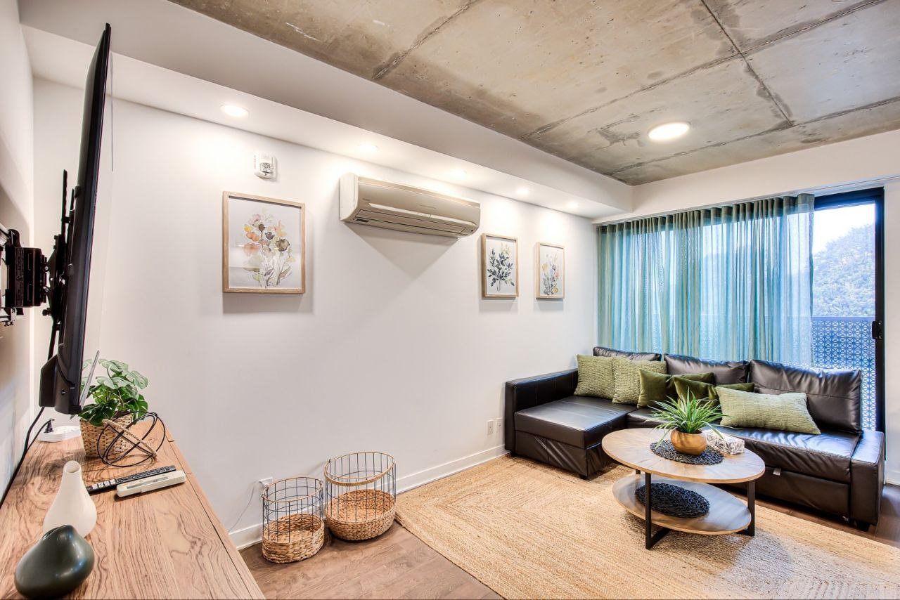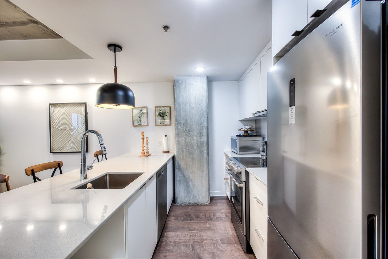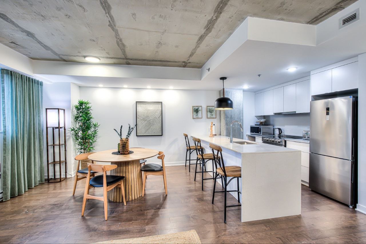 Fully Furnished Luxury Condo; Comfort, Style & Convenience in Perfect Harmony Bright and beautifully curated, this turnkey residence offers the perfect balance of sophistication and comfort. The space is thoughtfully designed with high-end finishes, an open-concept layout, and abundant natural light. From your morning routine to your evening unwind, every detail has been considered to elevate your daily life. Enjoy the rare combination of indoor parking, exclusive storage, a private bike rack, and full in-unit laundry. Just steps from metro stations, cafés, markets, and everything you love about city living: all that’s missing is you.