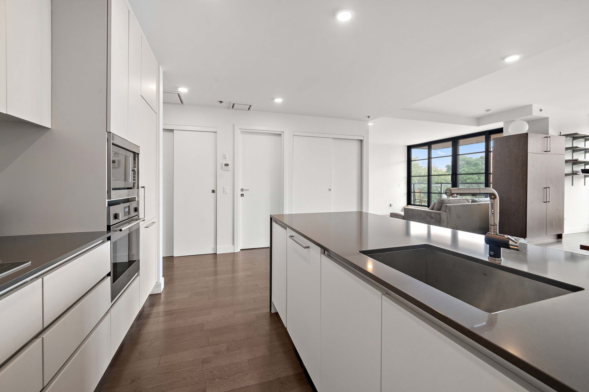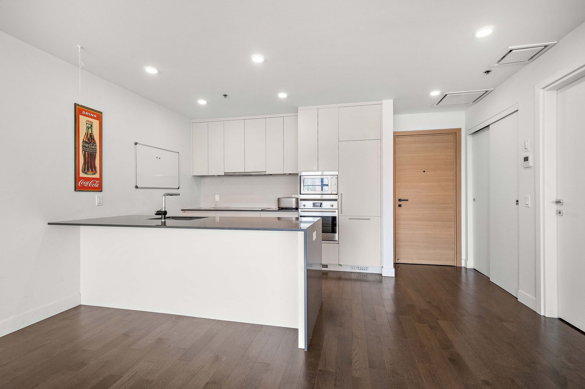 Beautiful corner condo built in 2021 offering over 910 sq. ft. of living space. This bright unit features a modern and functional layout with one closed bedroom and the option to create a second bedroom according to your needs. It also includes two full bathrooms with a contemporary design, a large private balcony, as well as 2 parking spaces and 1 storage space. The abundant windows flood every room with natural light, creating a warm and inviting atmosphere. Easy to visit.