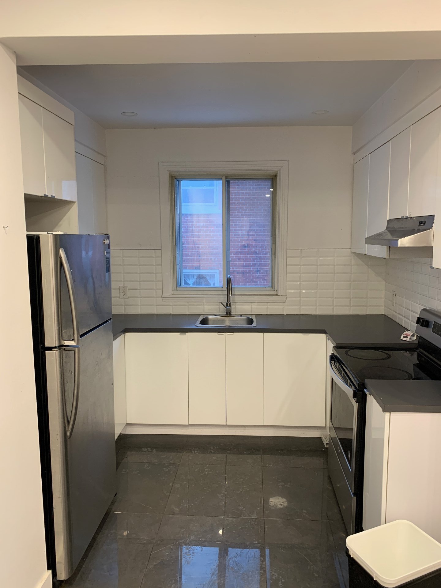 Refrigerator and oven.