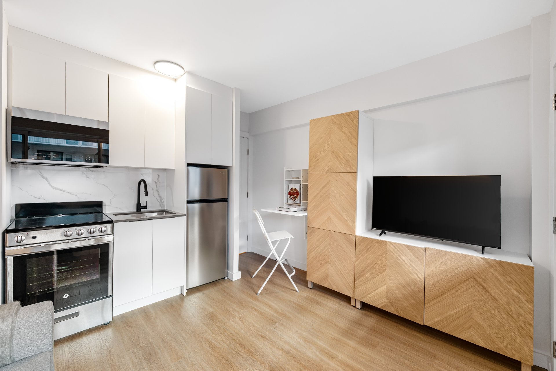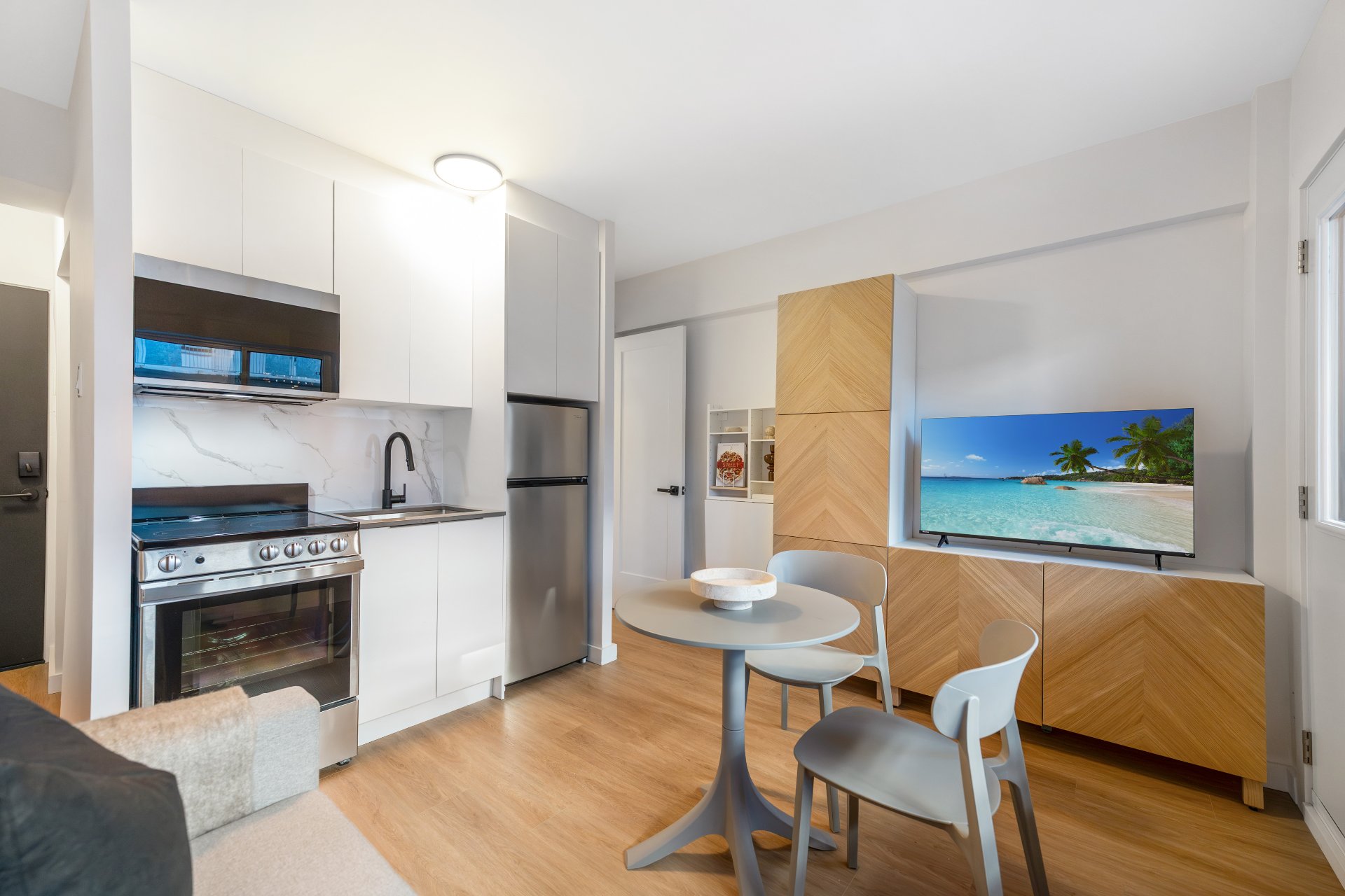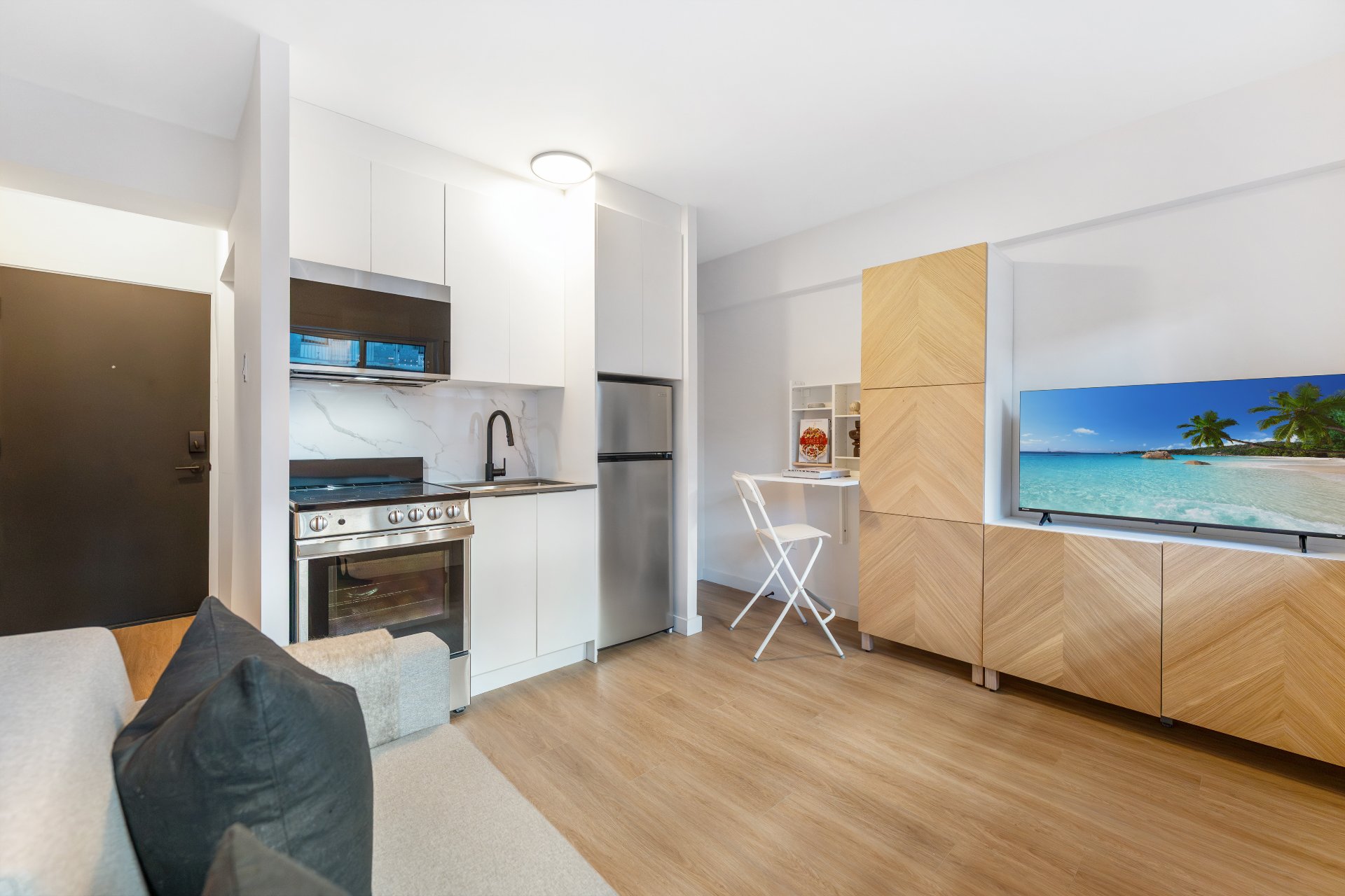 Electricity, heating, hot water, appliances, and air conditioning -- included at no charge for **** PROMOTIONAL PERIOD NOVEMBER AND DECEMBER 2025 **** Each unit includes: Smart sofa bed or Murphy bed, Smart TV, Smart dining area, Smart closet, fully equipped kitchen, private balcony with patio furniture, and