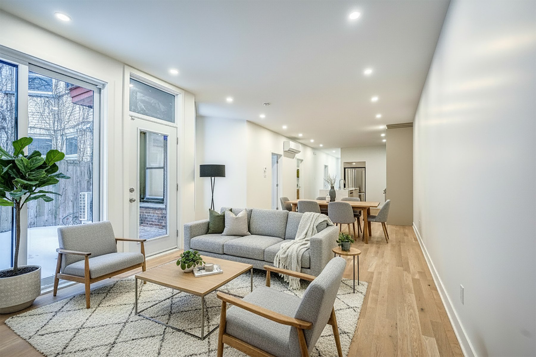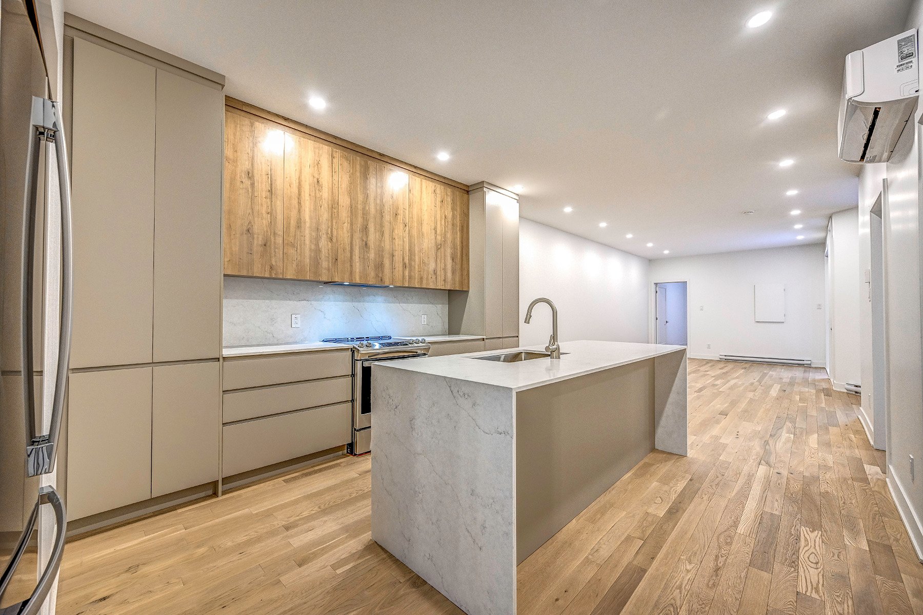 Plateau Mont-Royal: Stunning fully renovated ground floor unit in a heritage grey stone triplex. 4 bedrooms, 2 luxurious bathrooms, white oak floors, 9ft ceilings, quartz counters, wall-mounted heat pump. Private backyard + large exclusive terrace (direct access, no balcony). All appliances included. Superior soundproofing. Steps from Lafontaine, Baldwin, Fullum (pool), Rachel and Mont-Royal parks. Iconic restaurants, fine grocers, schools, Sablon centre (indoor pool/gym) minutes away. Easy vignette parking. Plateau gem for families!