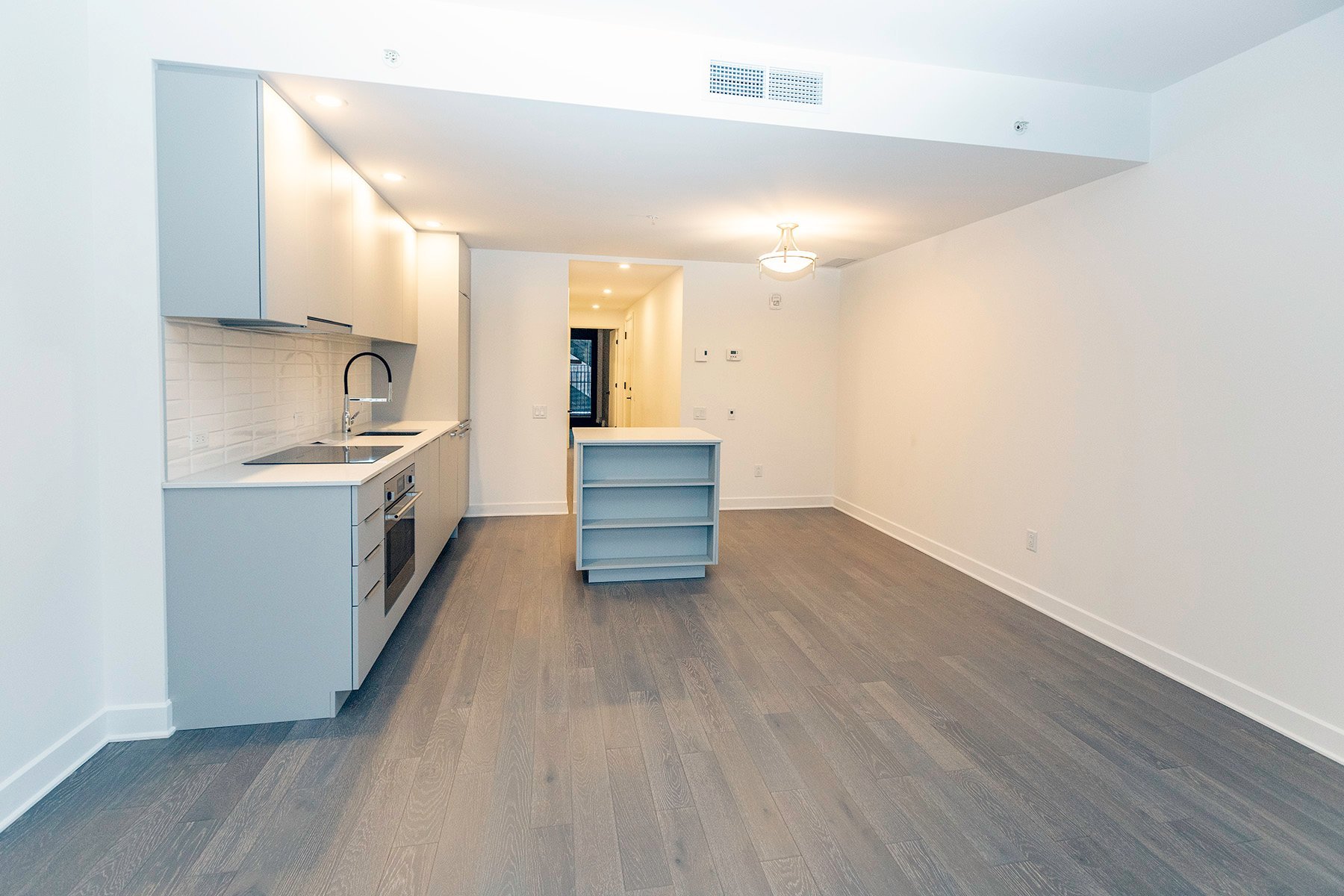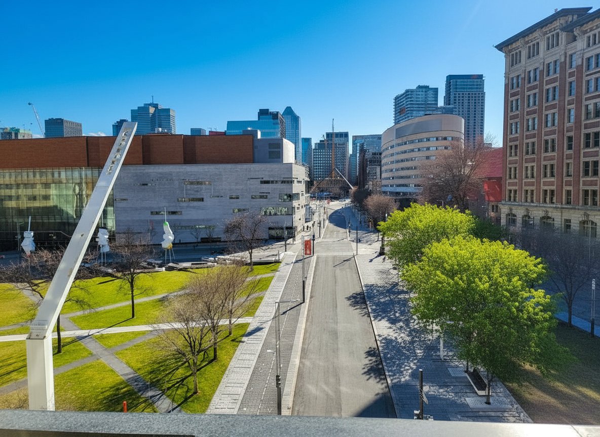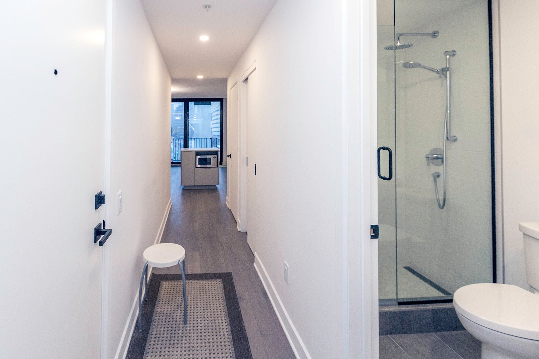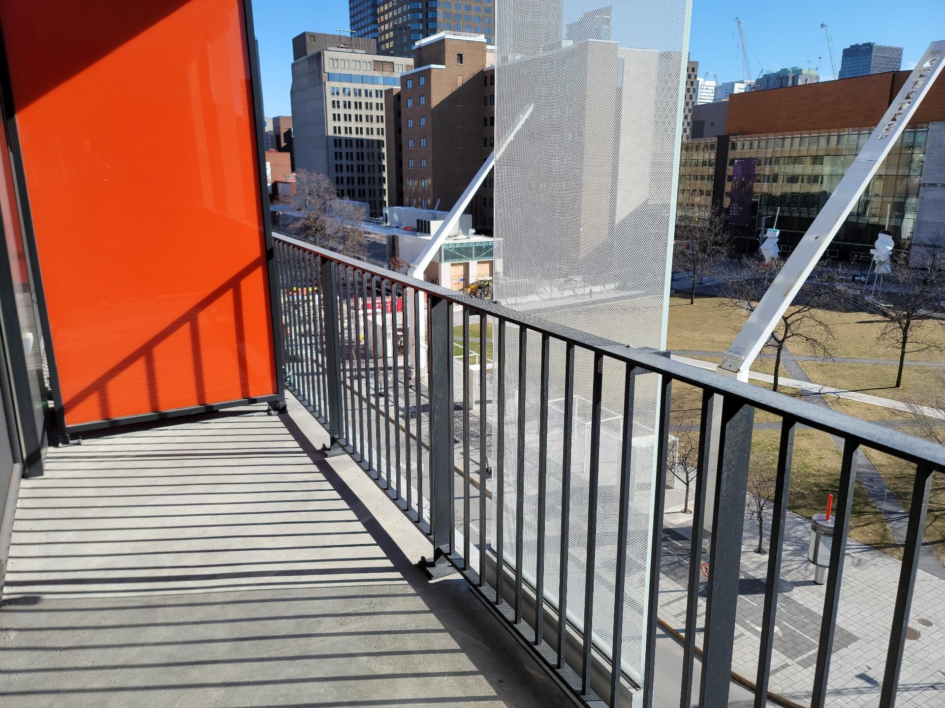 Contemporary condo for rent in the sought-after Quartier des Spectacles. Bright open concept layout with floor-to-ceiling windows and a large balcony framing sweeping city views. Quality modern finishes and a smartly planned living space ideal for work and relaxation. Building amenities include an indoor pool, spa/sauna, fully equipped gym, urban chalet/lounge, and a panoramic terrace--perfect for festival season. Steps to Place des Arts, restaurants, cafés, groceries, and the Saint-Laurent metro.