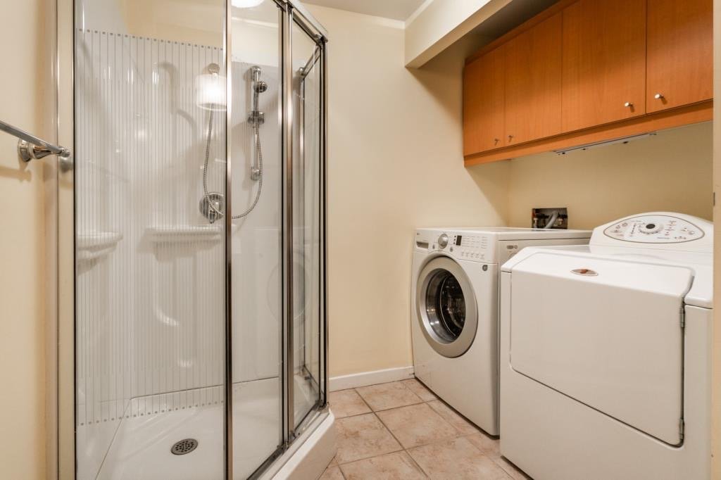 LG refrigerator, Thermador induction cooktop, built-in oven, Panasonic microwave, Bosch dishwasher, LG washer and Maytag dryer, blinds where installed.