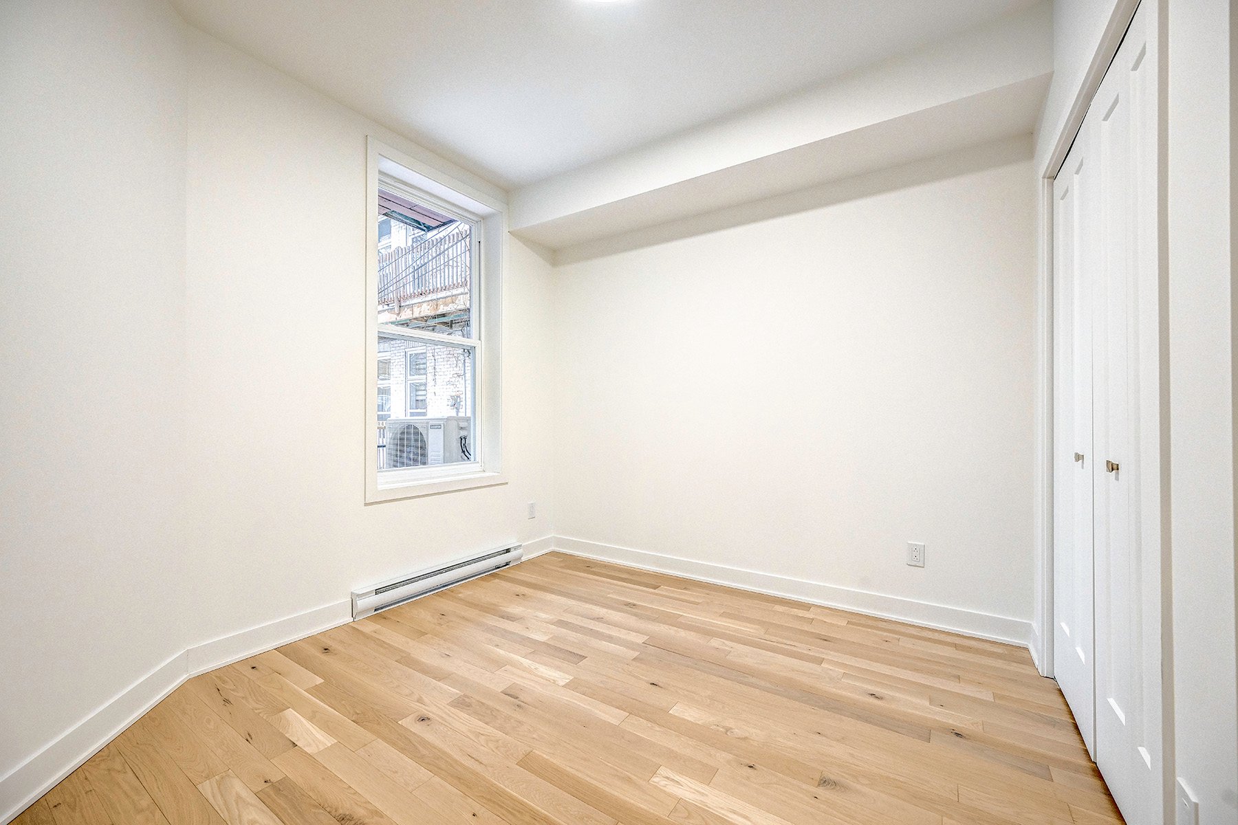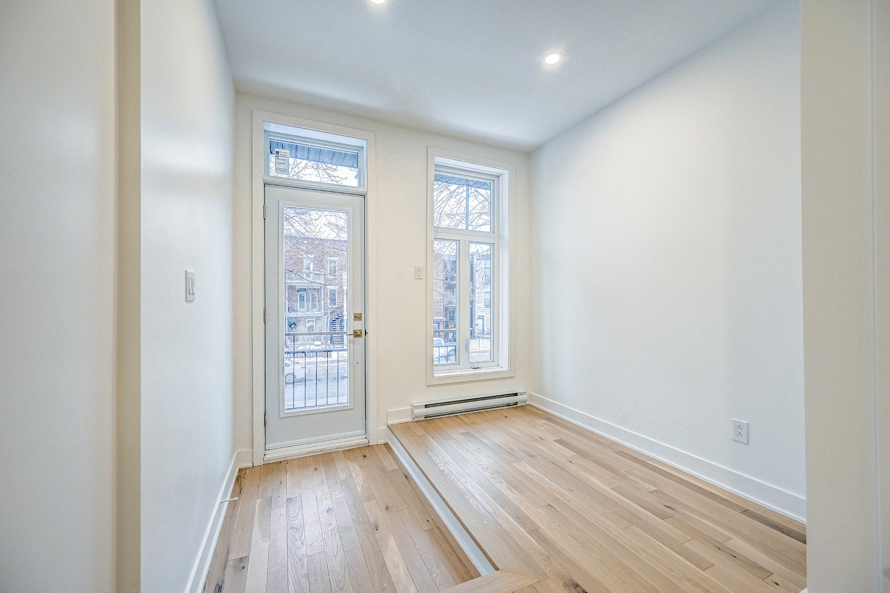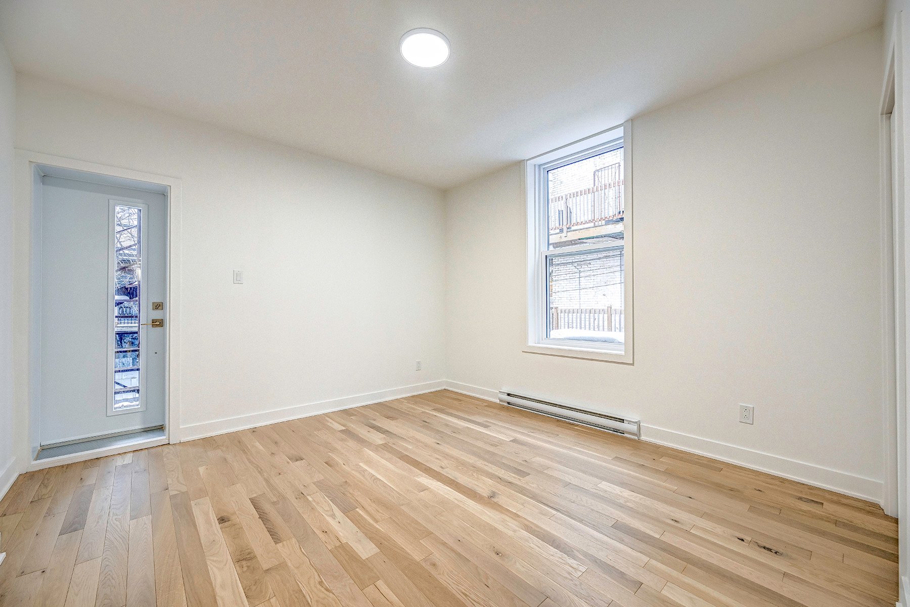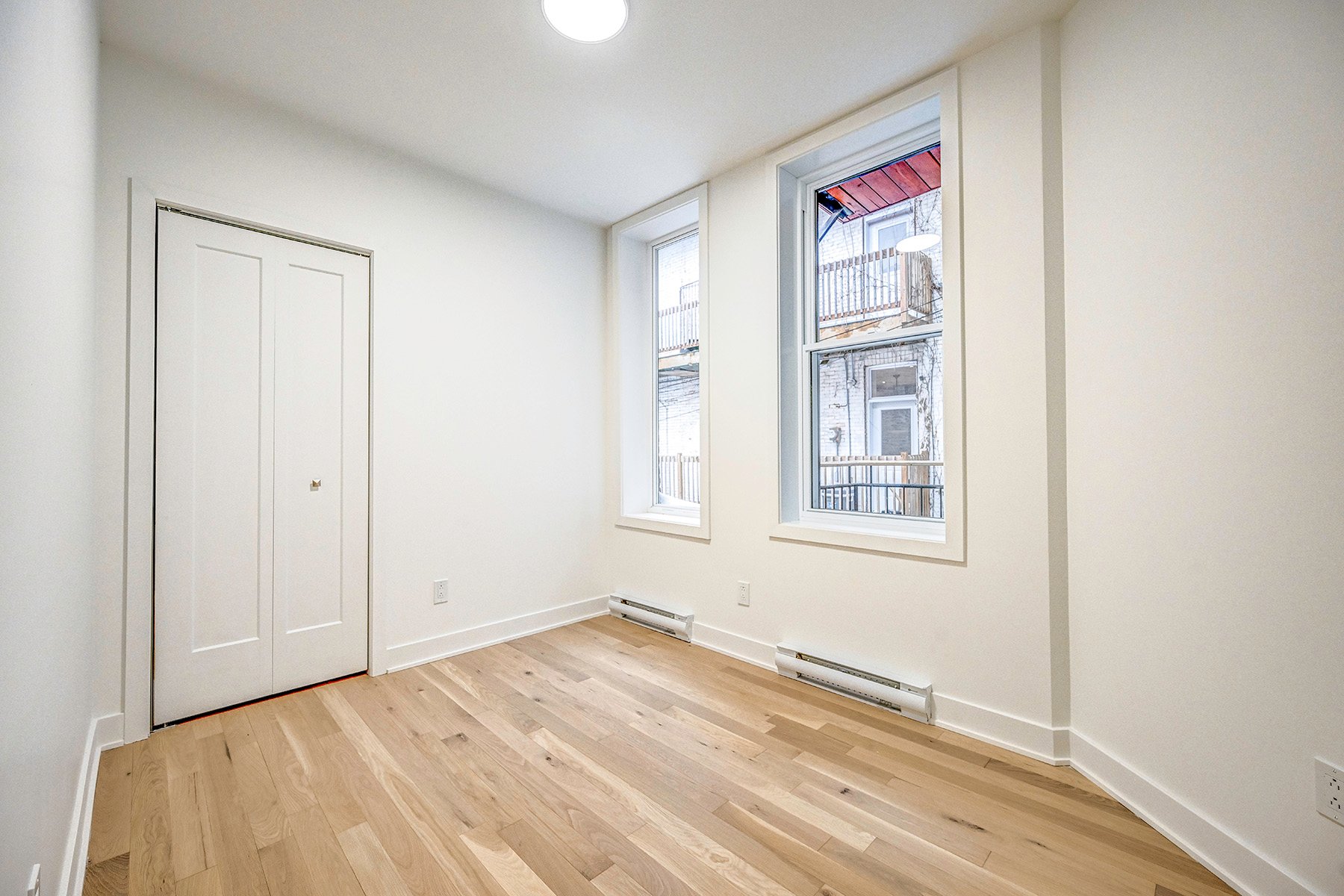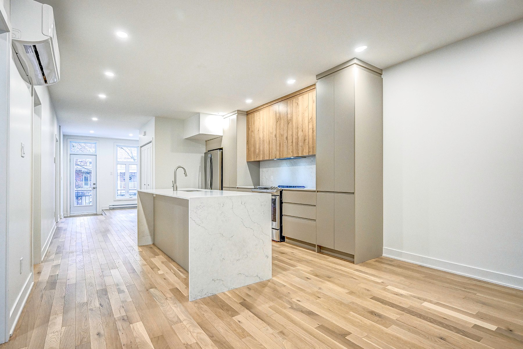 Plateau Mont-Royal: Stunning fully renovated apartment on the 2nd floor of a stone-front triplex. Renovated with premium materials: 4 bedrooms, 2 luxurious bathrooms, white oak floors, 9-foot ceilings, quartz counters, heat pump. Large rear terrace + private balcony. All appliances included. Steps from Lafontaine, Baldwin, Fullum parks (pool), Rachel and Mont-Royal. Rare gem!