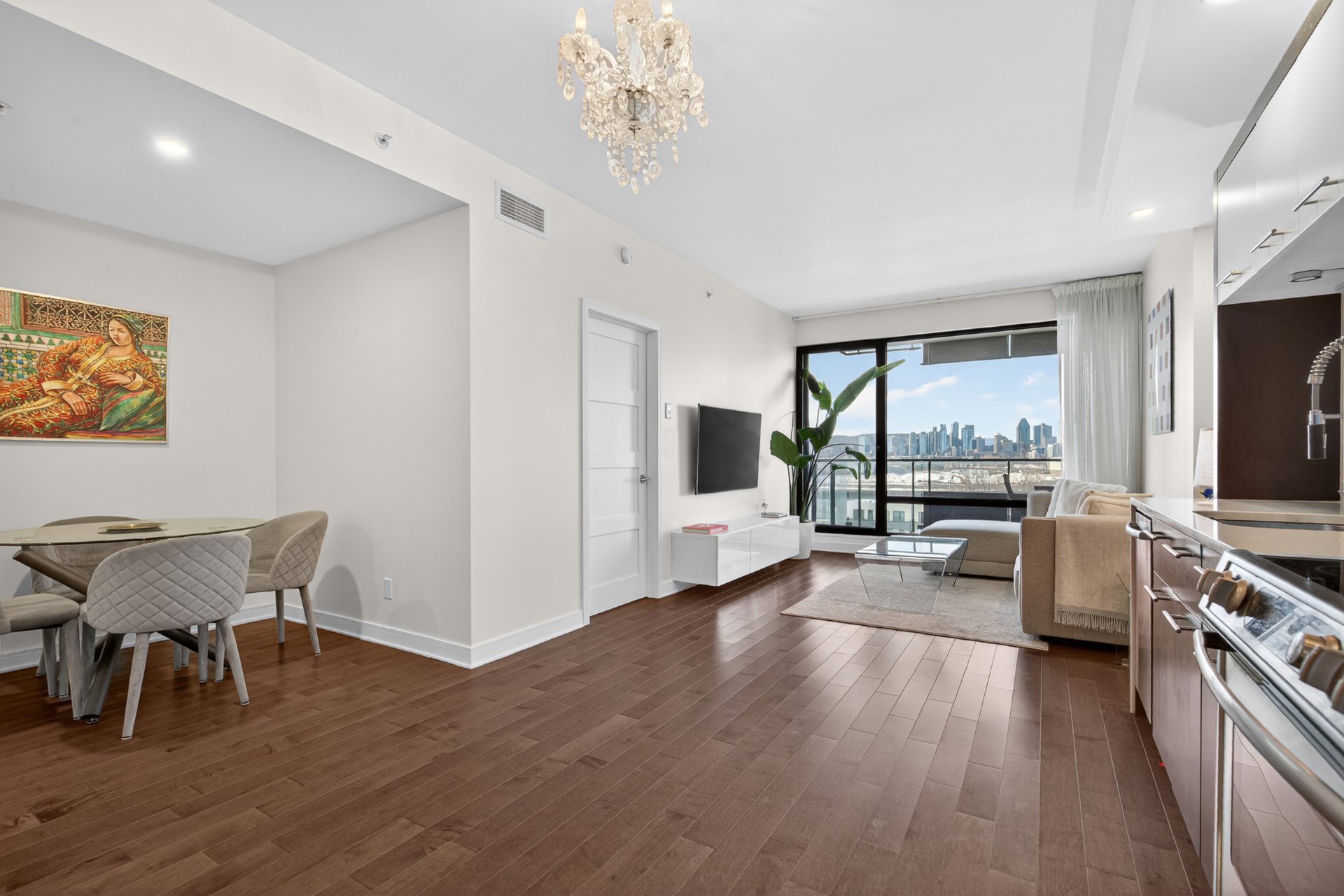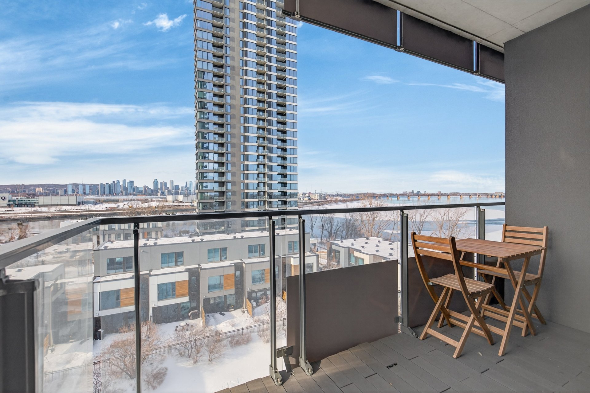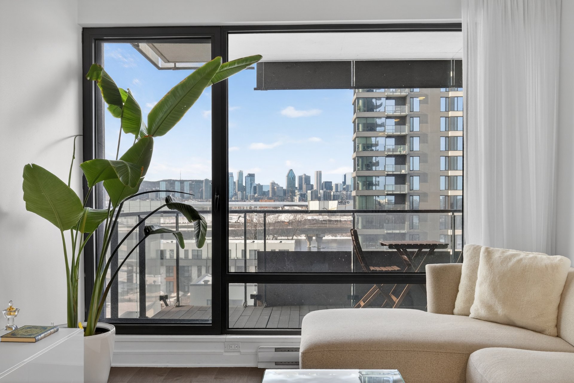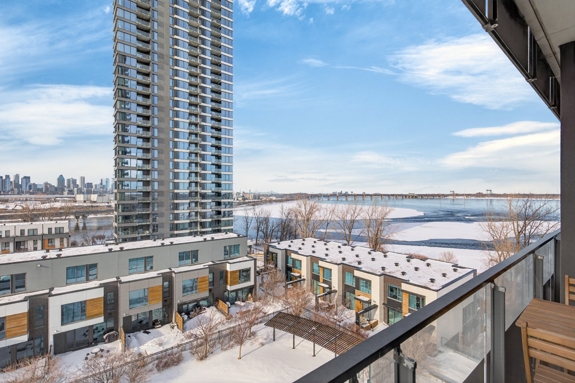 Wake up to unobstructed river views and the Montréal skyline as your backdrop. This beautifully appointed 1-bedroom + enclosed den residence offers a bright, fluid layout designed for both comfort and sophistication. Floor-to-ceiling windows flood the space with natural light, while the panoramic views of the St. Lawrence and Jacques-Cartier Bridge create a truly inspiring living environment -- including front-row seats to summer fireworks.