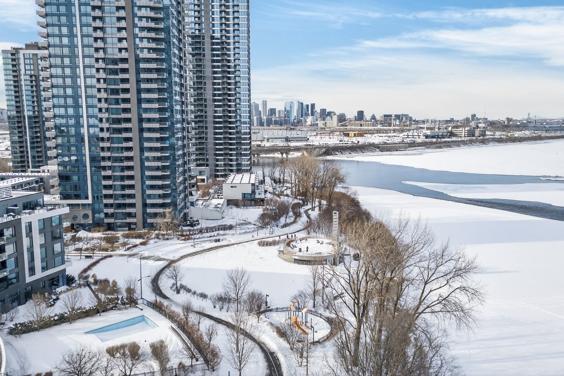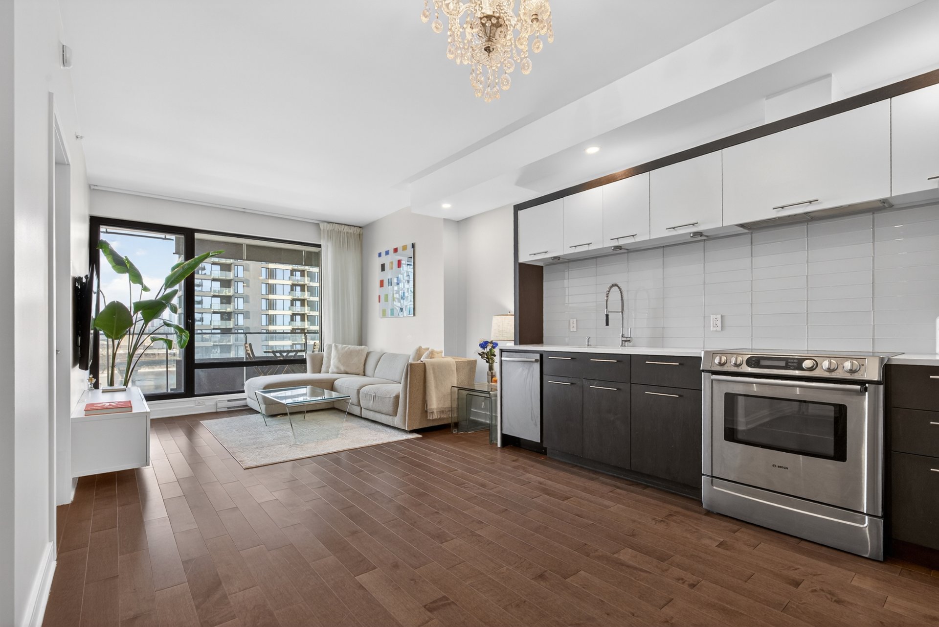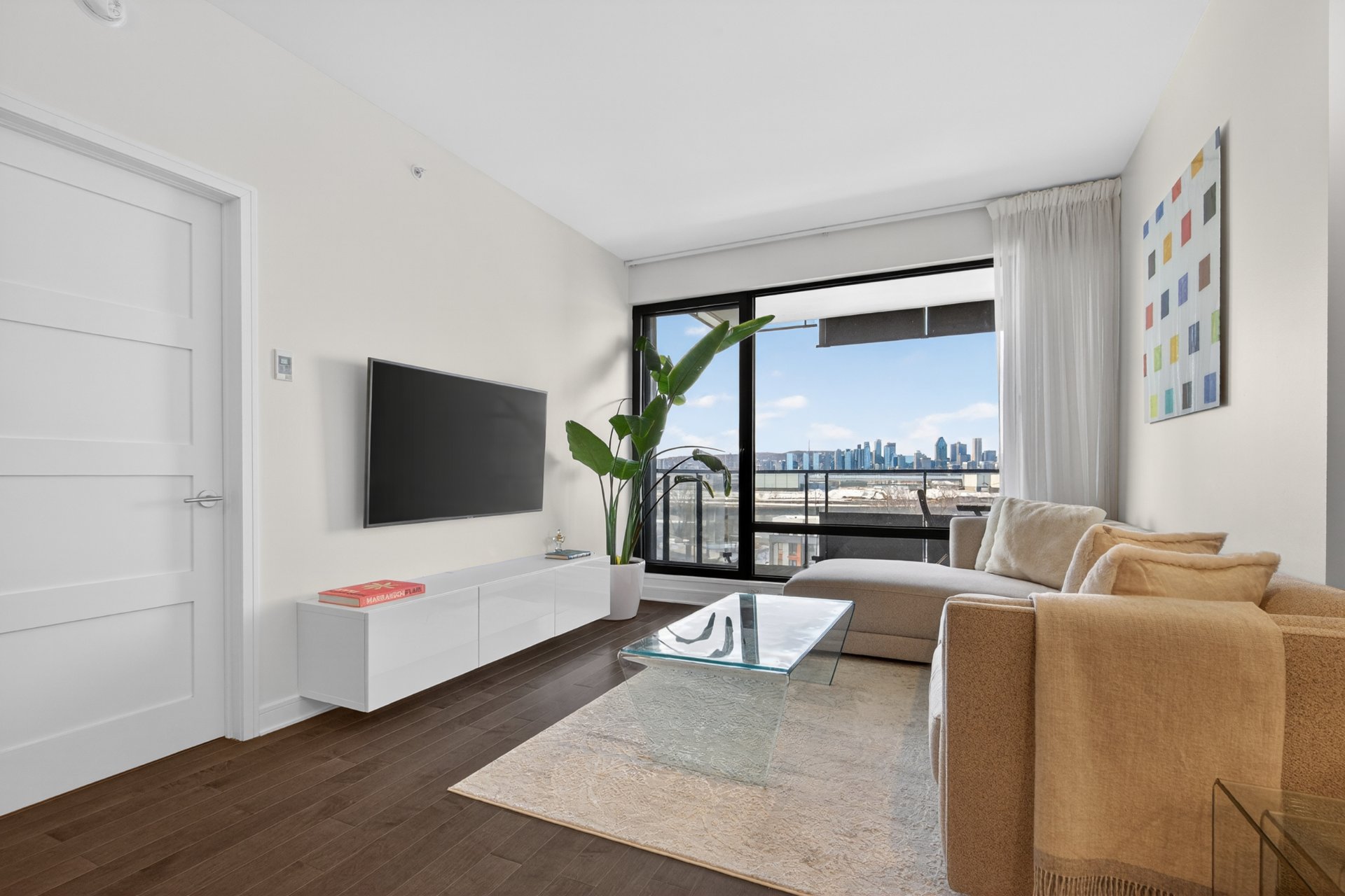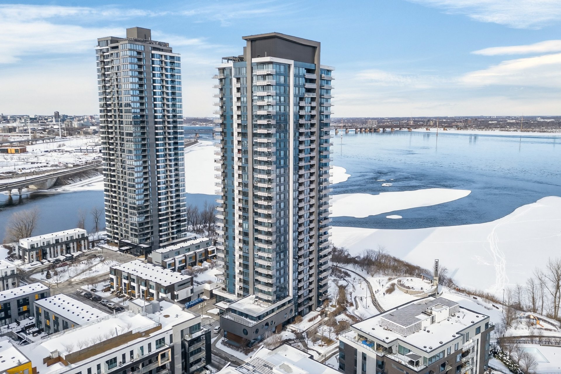 Wake up to unobstructed river views and the Montréal skyline as your backdrop. This beautifully appointed 1-bedroom + enclosed den residence offers a bright, fluid layout designed for both comfort and sophistication. Floor-to-ceiling windows flood the space with natural light, while the panoramic views of the St. Lawrence and Jacques-Cartier Bridge create a truly inspiring living environment -- including front-row seats to summer fireworks.