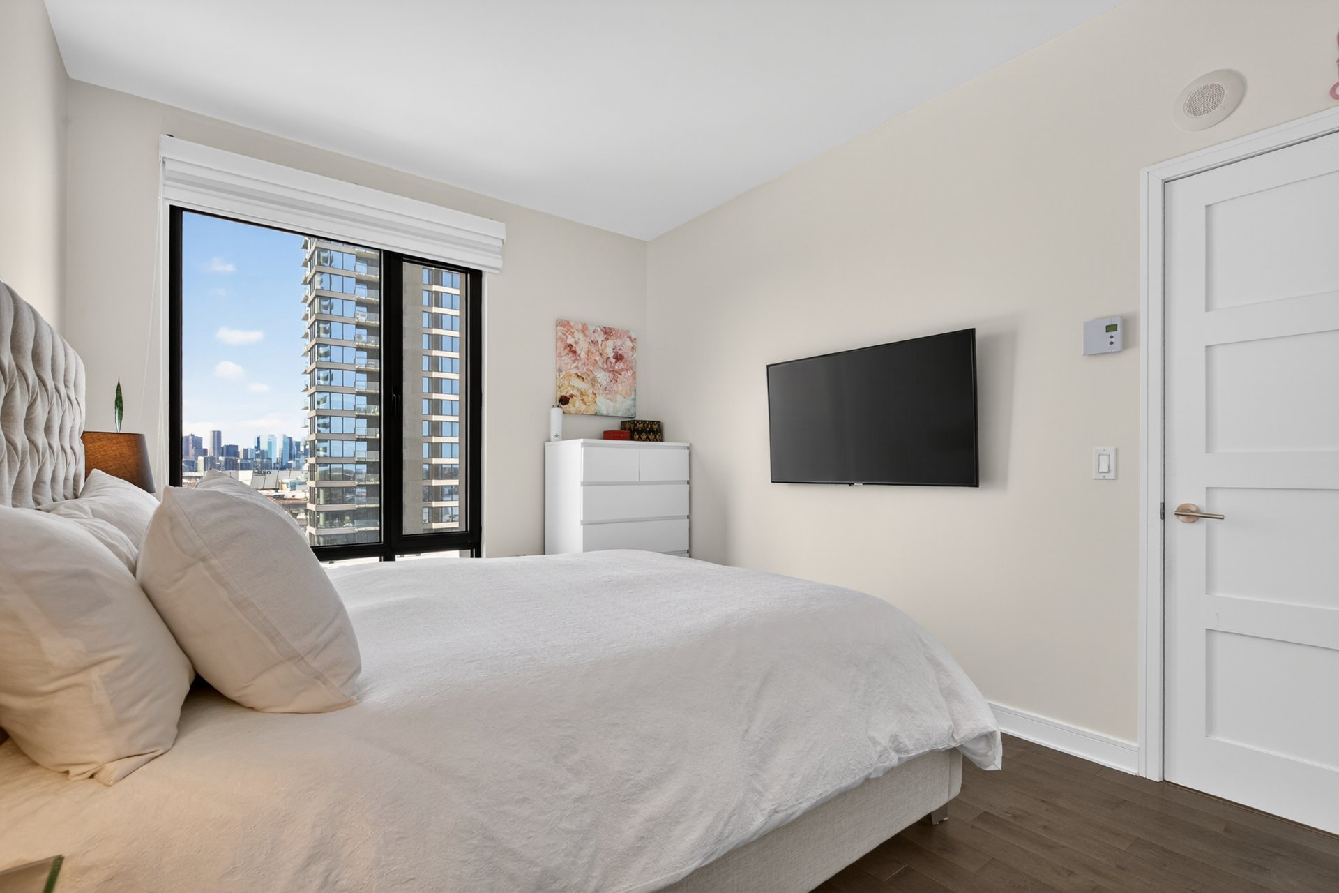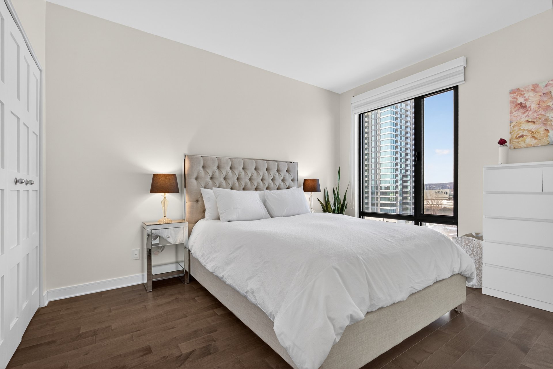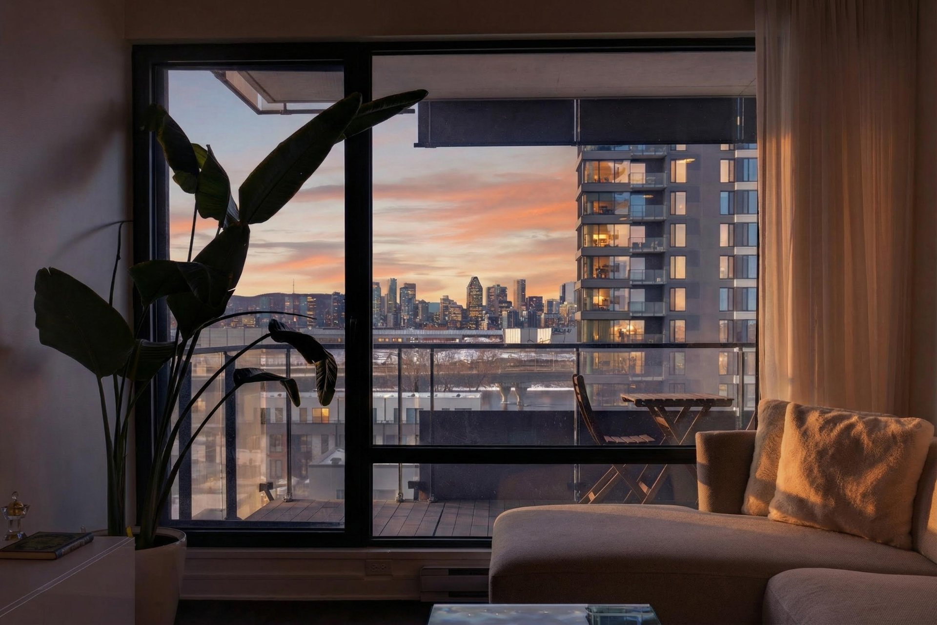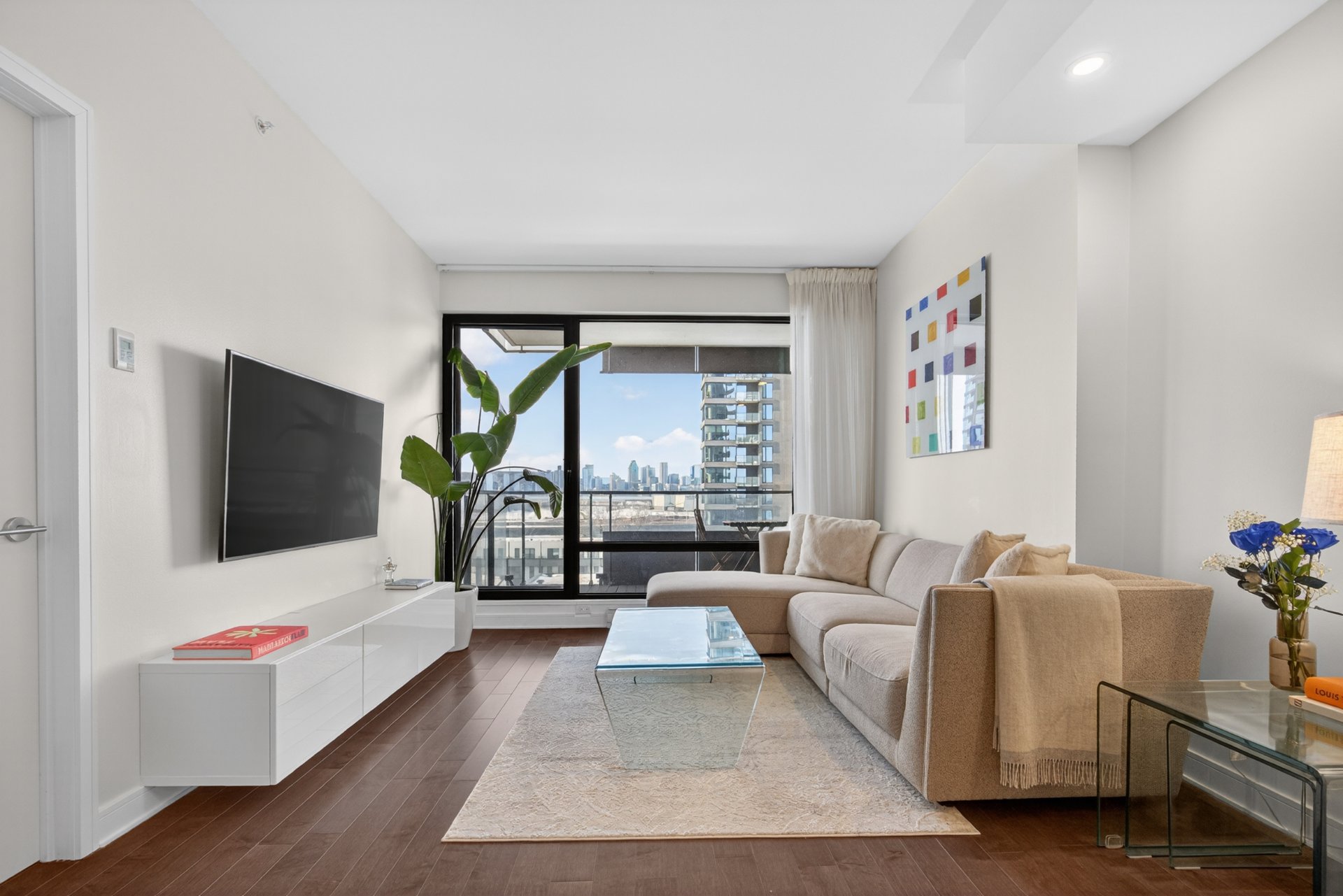 Wake up to unobstructed river views and the Montréal skyline as your backdrop. This beautifully appointed 1-bedroom + enclosed den residence offers a bright, fluid layout designed for both comfort and sophistication. Floor-to-ceiling windows flood the space with natural light, while the panoramic views of the St. Lawrence and Jacques-Cartier Bridge create a truly inspiring living environment -- including front-row seats to summer fireworks.