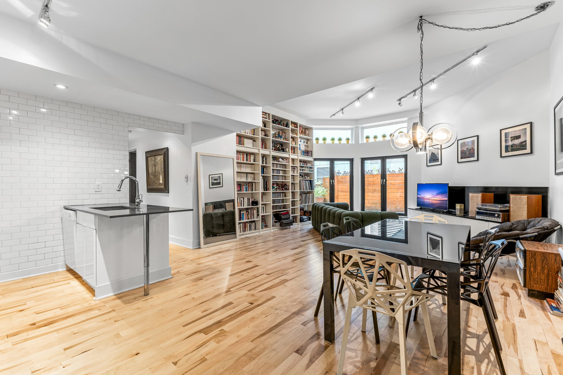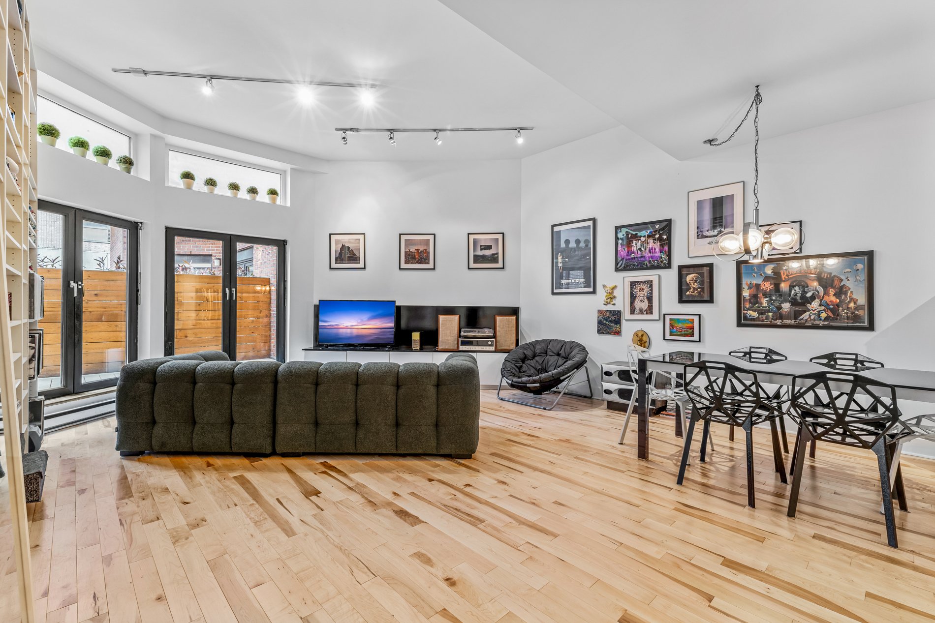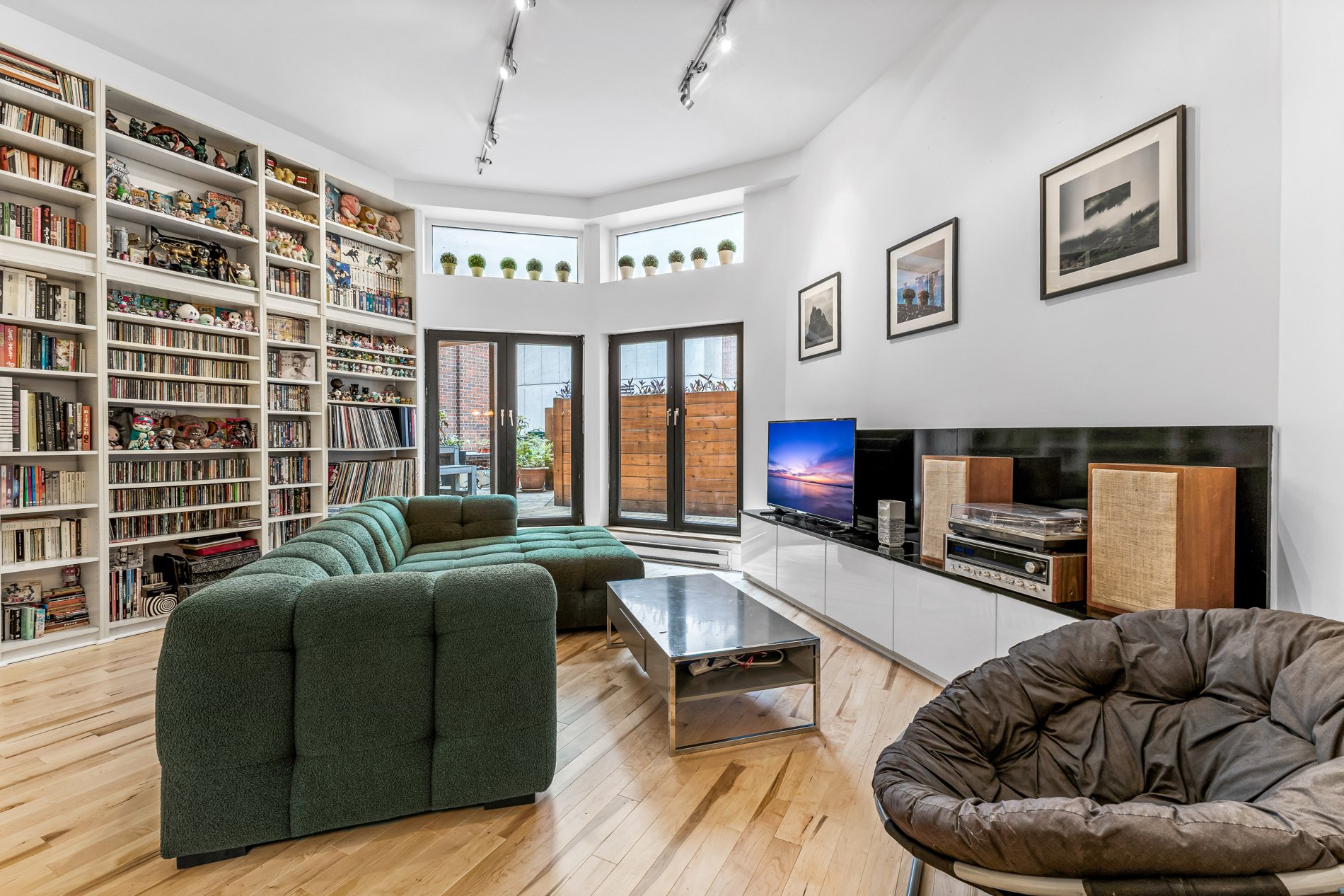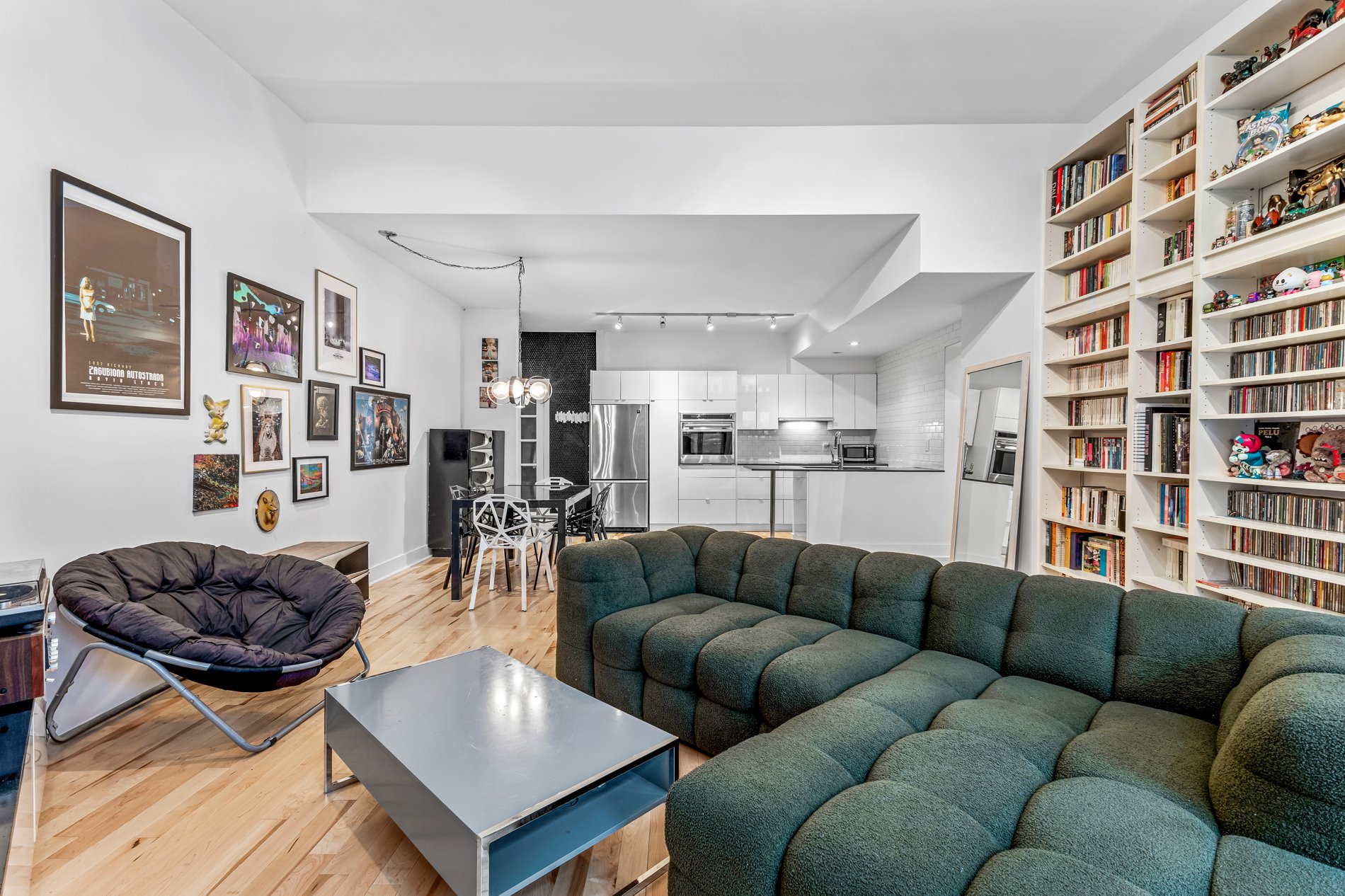 Welcome to this stunning 941f2. one-bedroom condo with an office large enough for a kids bedroom, located in a beautifully restored church in the heart of the Plateau’s vibrant Milton Park. Soaring ceilings and huge windows echo the building’s historic charm, while thoughtful modern updates offer both style and comfort. The open-concept living space is framed by elegant built-in bookshelves, perfect for a home library or art collection and flows seamlessly onto a spacious private terrace, ideal for entertaining or quiet moments outdoors. The versatile office provides ample space for guests or a large walk in closet. Includes indoor parking