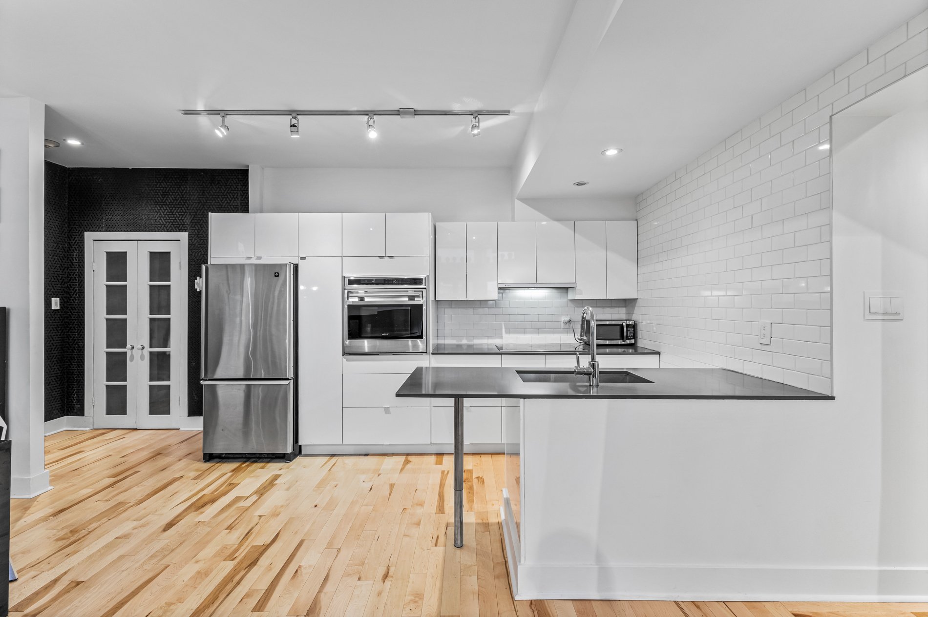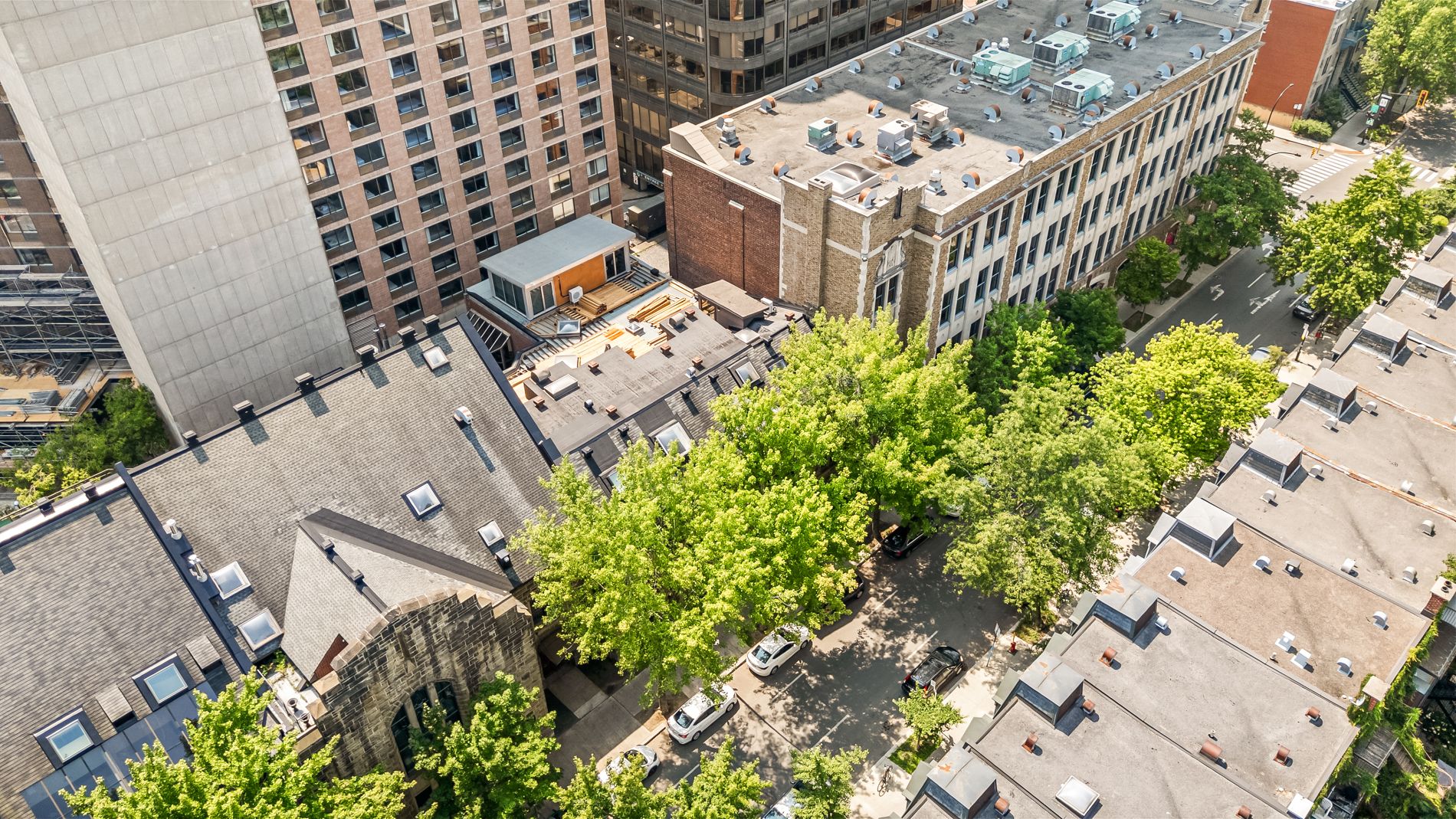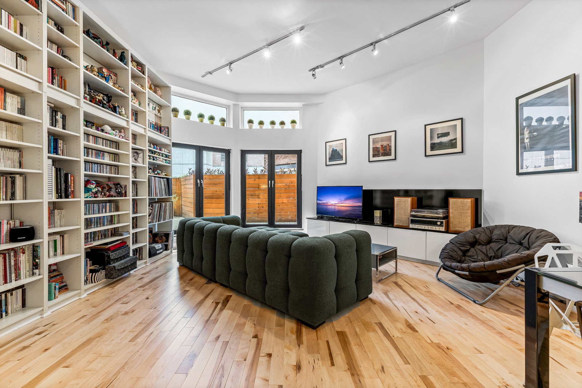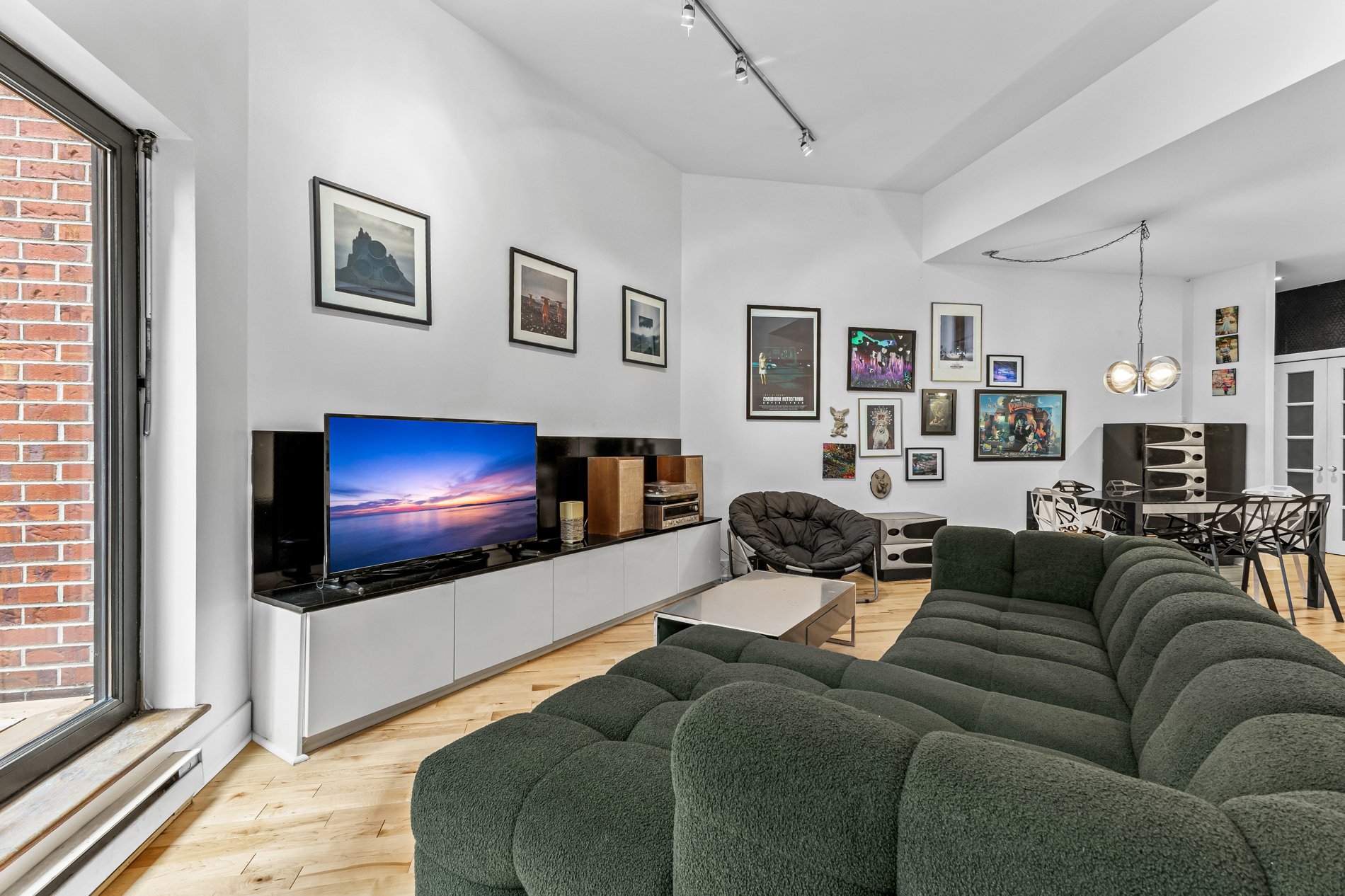 Welcome to this stunning 941f2. one-bedroom condo with an office large enough for a kids bedroom, located in a beautifully restored church in the heart of the Plateau’s vibrant Milton Park. Soaring ceilings and huge windows echo the building’s historic charm, while thoughtful modern updates offer both style and comfort. The open-concept living space is framed by elegant built-in bookshelves, perfect for a home library or art collection and flows seamlessly onto a spacious private terrace, ideal for entertaining or quiet moments outdoors. The versatile office provides ample space for guests or a large walk in closet. Includes indoor parking