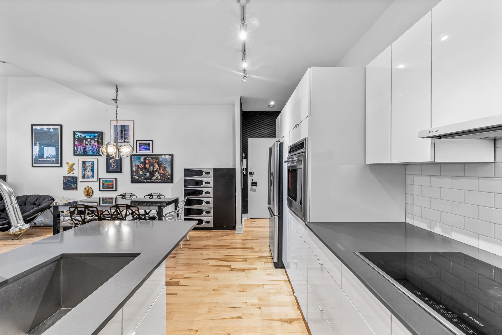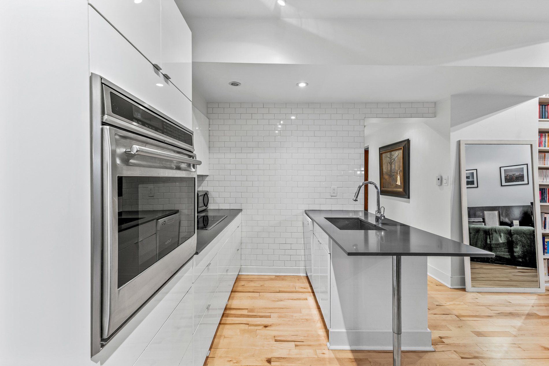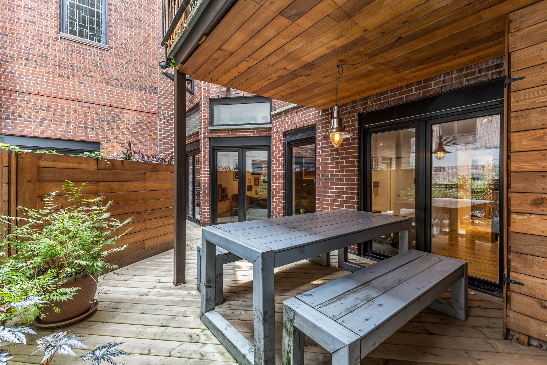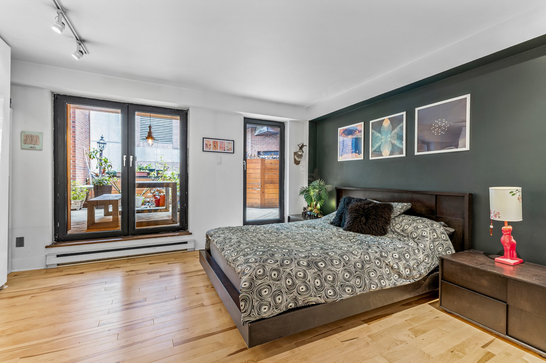 Welcome to this stunning 941f2. one-bedroom condo with an office large enough for a kids bedroom, located in a beautifully restored church in the heart of the Plateau’s vibrant Milton Park. Soaring ceilings and huge windows echo the building’s historic charm, while thoughtful modern updates offer both style and comfort. The open-concept living space is framed by elegant built-in bookshelves, perfect for a home library or art collection and flows seamlessly onto a spacious private terrace, ideal for entertaining or quiet moments outdoors. The versatile office provides ample space for guests or a large walk in closet. Includes indoor parking