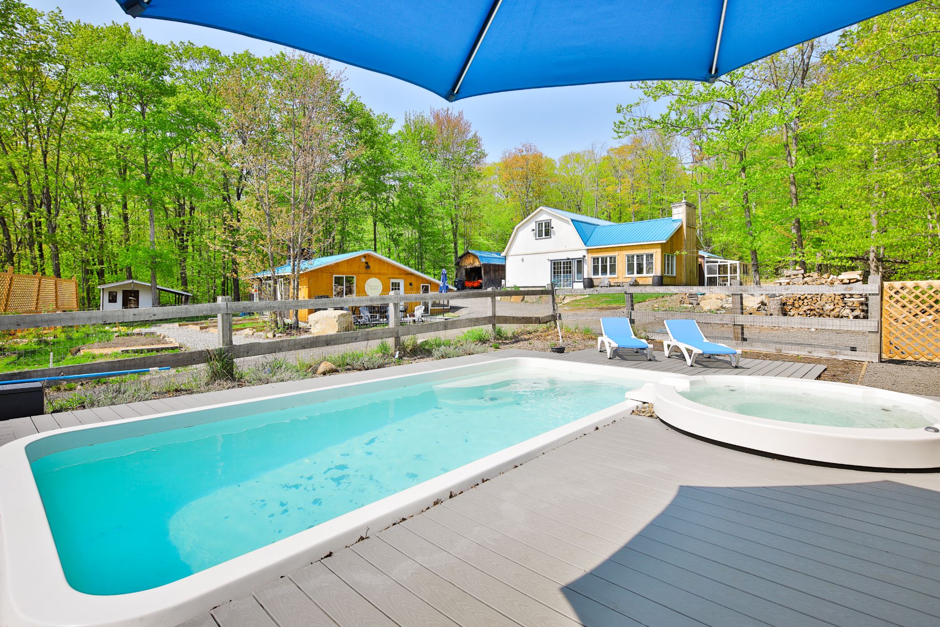 Incredible estate! 28 acres - 1,200,000 square feet of hillside land with a due west orientation! Set back on a very quiet street, discover a property offering many possibilities! 2 houses, one completely renovated from A to Z! Luxury sugar shack with conference room perfect for entertaining. In-ground pool with spa! Ready for a pool house. Land with small maple grove, apple trees, blueberries, elderberries, lavender, mushrooms, woodland trails, brooks, chicken coop, dream garden! Former farmhouse converted into a luxury estate. The perfect place to let your creativity run wild! Sugar shack can be included for an additional 1000$ a month.