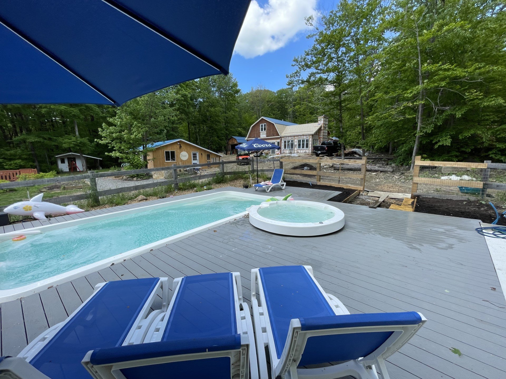 Pool - water heater, pool accessories. Salt fiber pool, blue sheet metal that had been ordered for the future *pool house*.