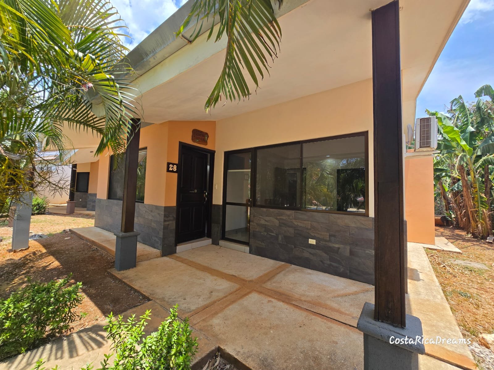 Welcome to your Costa Rican Paradise! Villa 28 is a well maintained property Located in a beautiful gated resort like community at Playa Lagarto Eco Development. This lovely 1000sf home offers 2 large bedrooms & 2 bathrooms, an open concept living space with cathedral ceilings & granite counters. Enjoy your private patio & yard surrounded by stunning gardens & 3 Common pool areas 1 being right outside your Villa, perfect for lounging. 10 min to the beach, restaurant & bar on site and lush Landscaping with local flora & fauna. Perfect vacation home to enjoy with the other expats or rent out with onsite management. THE PRICE IS IN USD CURRENCY.