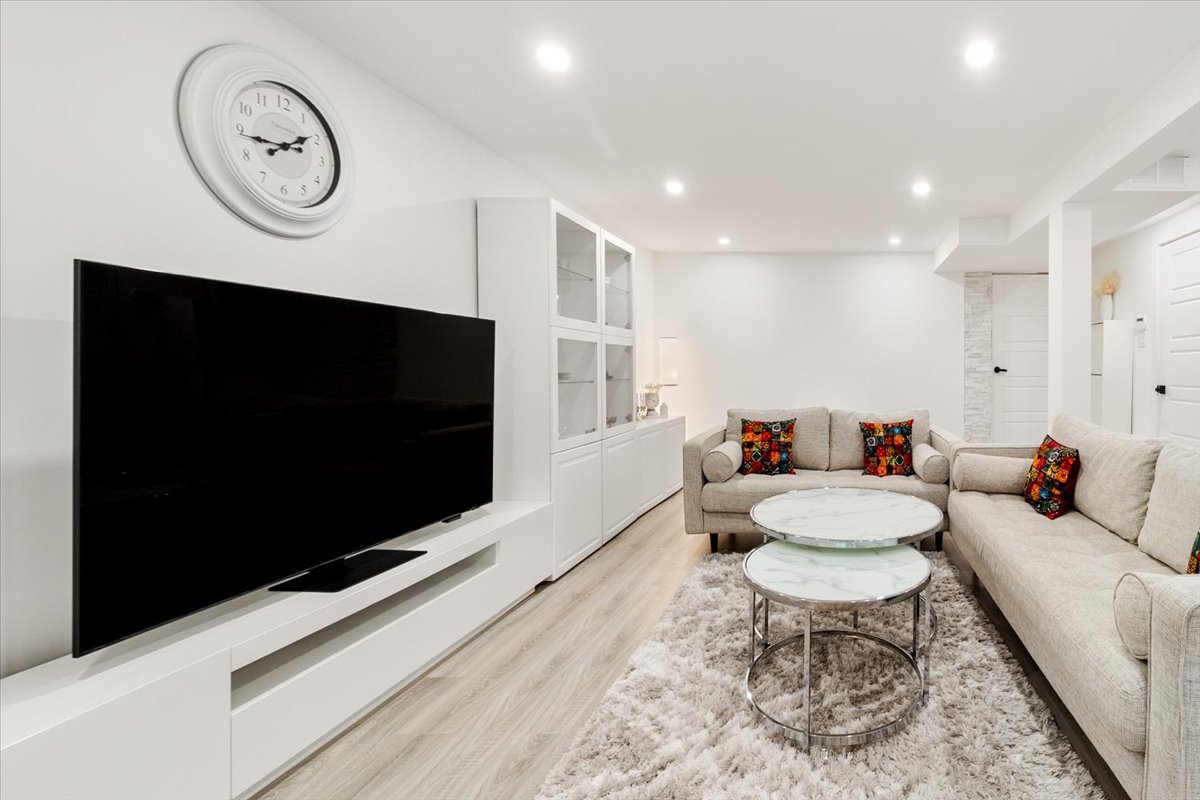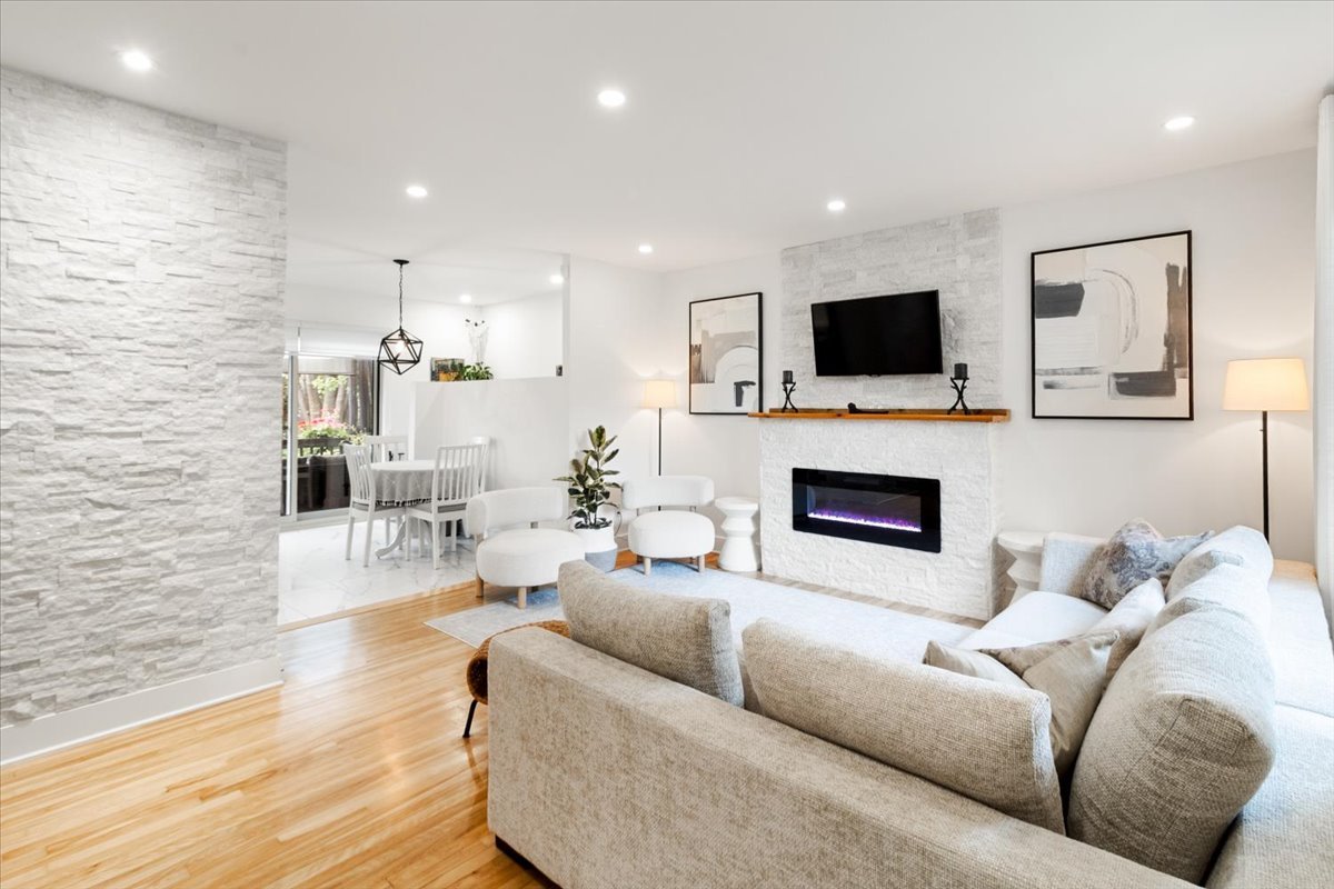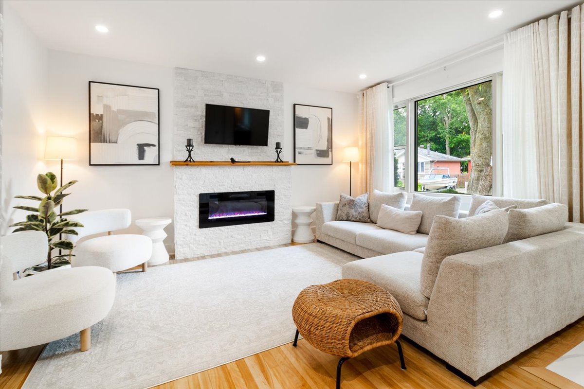 Beautifully renovated bungalow located on a quiet street in Sainte-Dorothée. This bright and welcoming home features 3 bedrooms, 2 full bathrooms, a modern kitchen with quartz countertops, a cozy living room with an electric fireplace, and a spacious family room in the finished basement. Renovated throughout the years with high-quality updates and attention to detail. Ideally situated near Highway 13, Sainte-Dorothée REM station, SmartCentres Laval Ouest, schools, daycares, parks, and the waterfront. A perfect location for families seeking comfort and convenience!