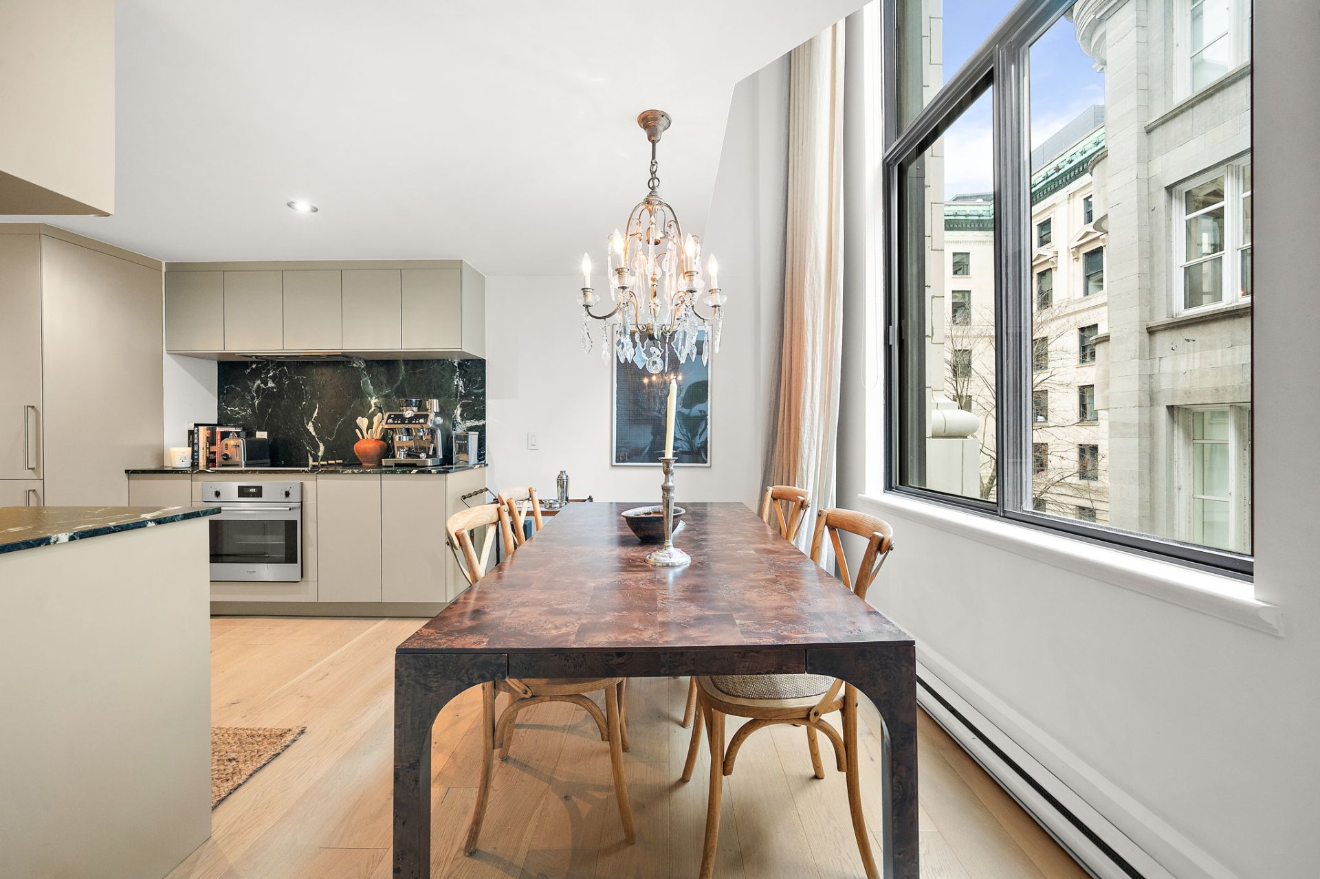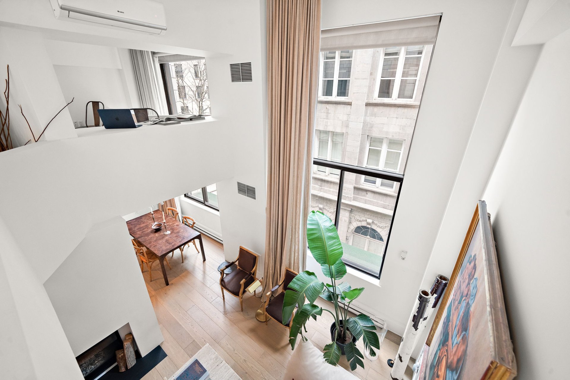 Stunning 2-bedroom, 2-level loft style condo in the heart of Montreal’s prestigious Old Port neighborhood. Featuring a beautiful spiral staircase with matte white finish, impressive New York-style fenestration, and a fully renovated kitchen (2022) with leathered marble and custom cabinetry. Elegant bathroom (2021) and powder room (2025). Includes a storage locker and access to a beautiful common rooftop terrace. A rare blend of historic charm and modern luxury in a desirable location just steps away the St-Lawrence River and all that the Old Port has to offer from its exquisite architecture and all the many shops, cafes, and restaurants.