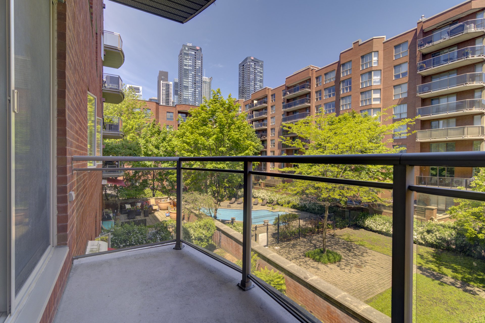 *The 5 storey condo building is ideally situated in the heart of Griffintown and walking distance to almost everywhere in downtown Montreal. The 2 bedroom and 2 bathroom unit is 1,044 sqft with a balcony facing charming views of the quiet inner courtyard and pool. A spacious kitchen, a gas fireplace in the living room. The unit offers one indoor parking space, one storage, a decent size laundry room, walk in closet, Conveniently located near metros Lucien L’Allier and metro Bonaventure and all amenities: grocery store, pharmacy, restaurants, shops, Lachine Canal, Atwater Market, Old Montreal, Bell Centre, bike paths and much more!. Don’t miss out on this prime location with everything you need for urban living.
