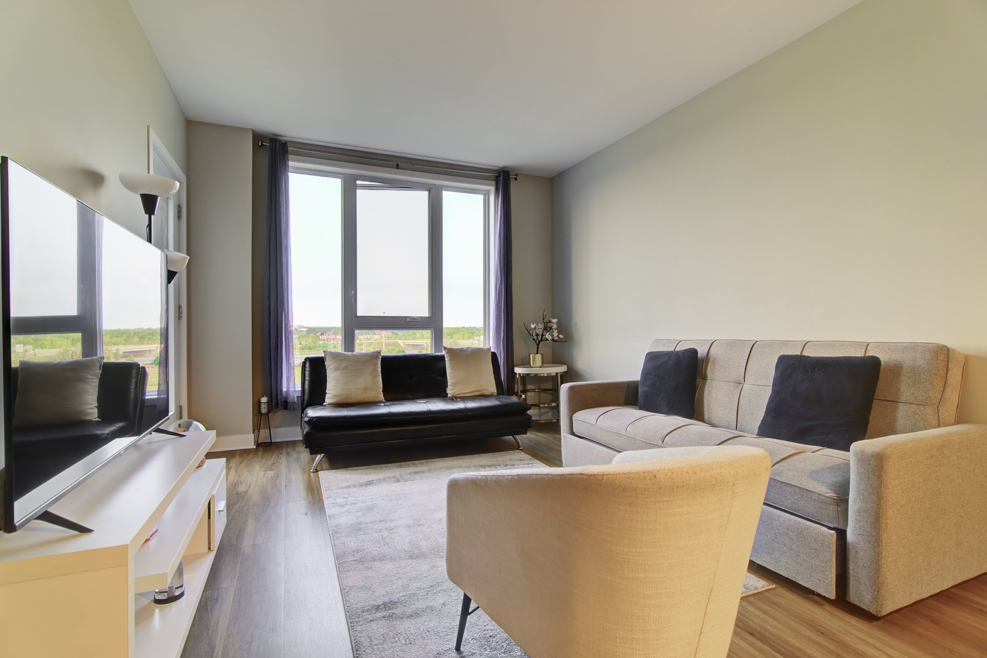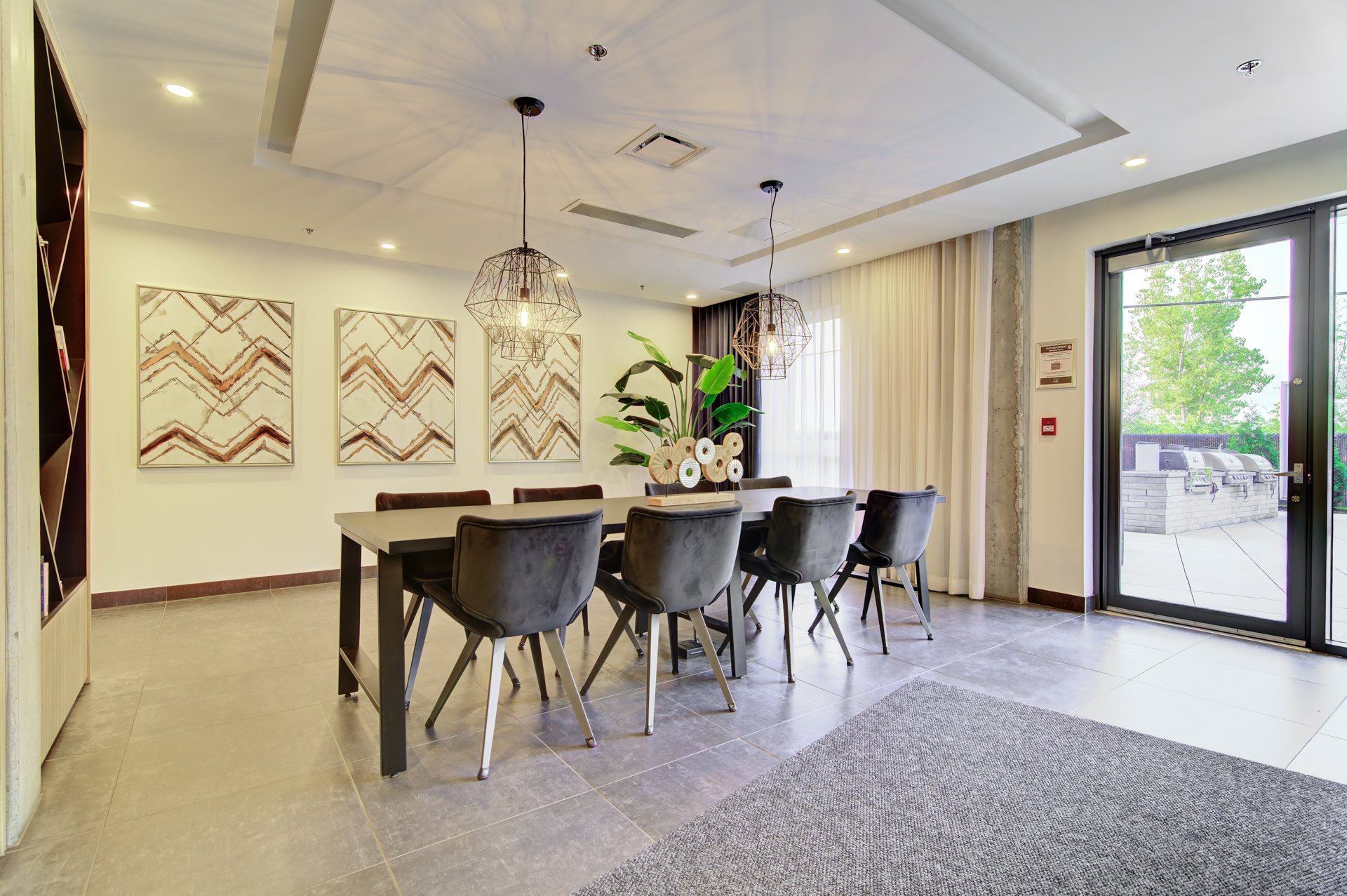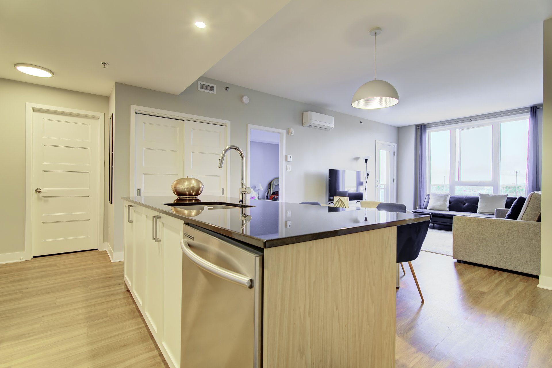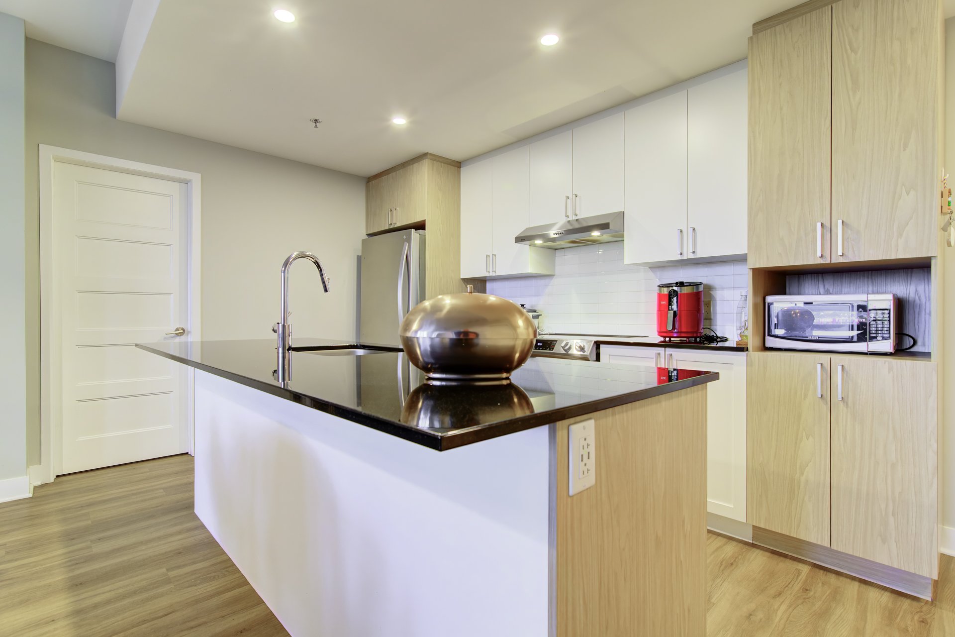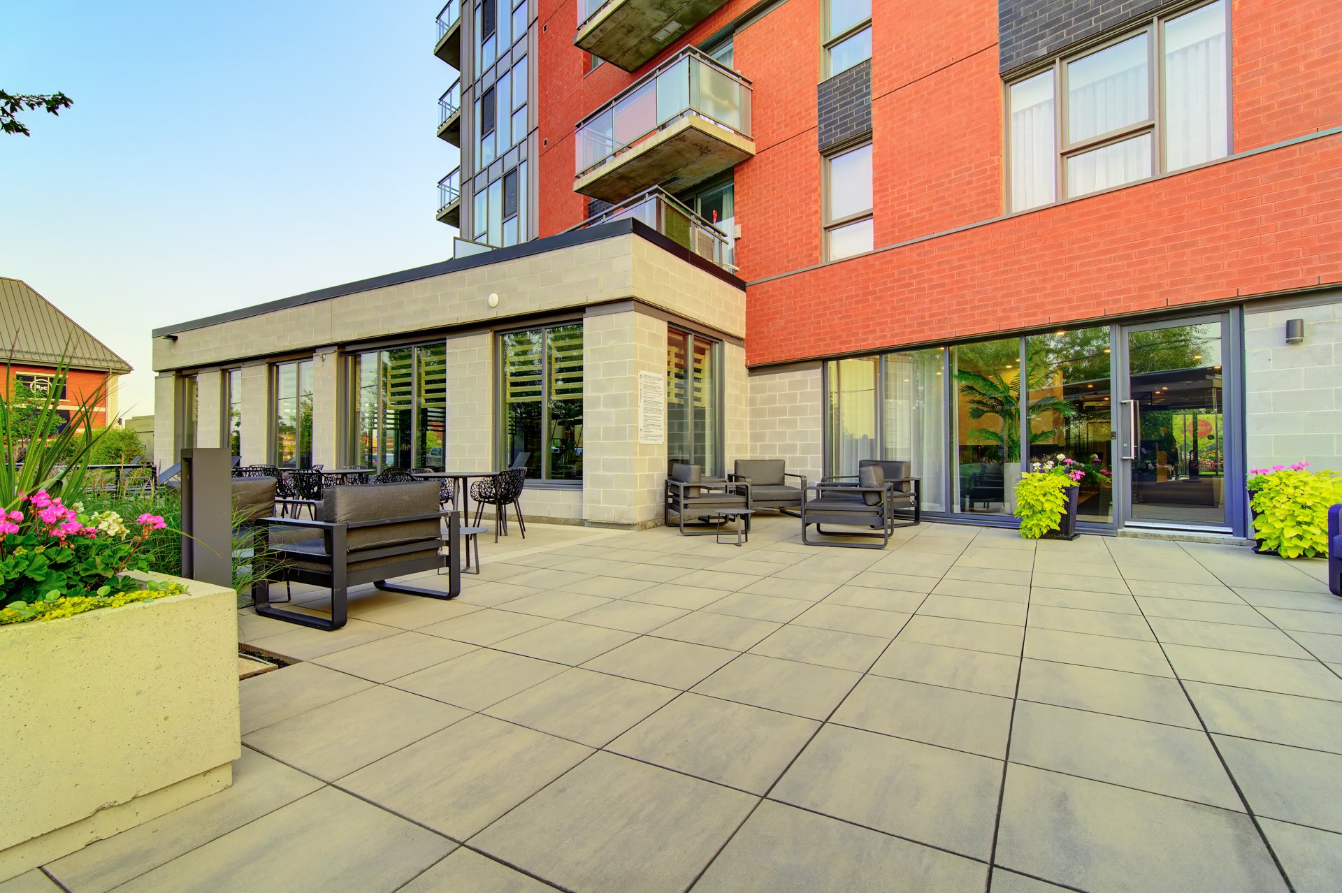 Large condo2 generously sized bedrooms1 bathroomOpen-concept kitchen, dining room, and living room1 garage and 1 outdoor parking space**Several common areas, shared kitchen for your eventsIndoor poolExercise roomLarge outdoor terrace with BBQ available to tenantsWorkshop for bike storage and maintenanceEasy access to the highwayNear commuter train and public transportationElementary and secondary schools nearby