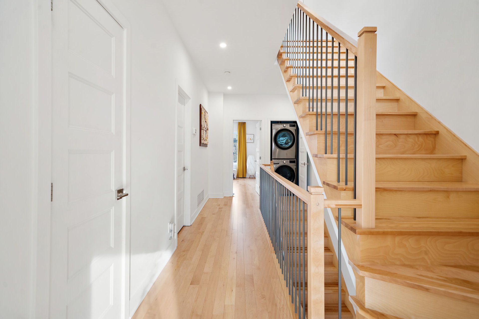 Welcome to 2105 Rue Panet, a modern 4 storey townhome blending tranquility with city vibrancy. Located on a peaceful street, it’s just steps from Ontario Street’s amenities, Parc Lafontaine, and a short drive to downtown. This spacious home features high ceilings, a large back patio, and three bedrooms, including a top-floor suite with a walk-in closet, private terrace, and en-suite bathroom. The open-concept main floor includes a dining room, kitchen, and living area, while the finished basement offers extra living space and direct access to the garage.