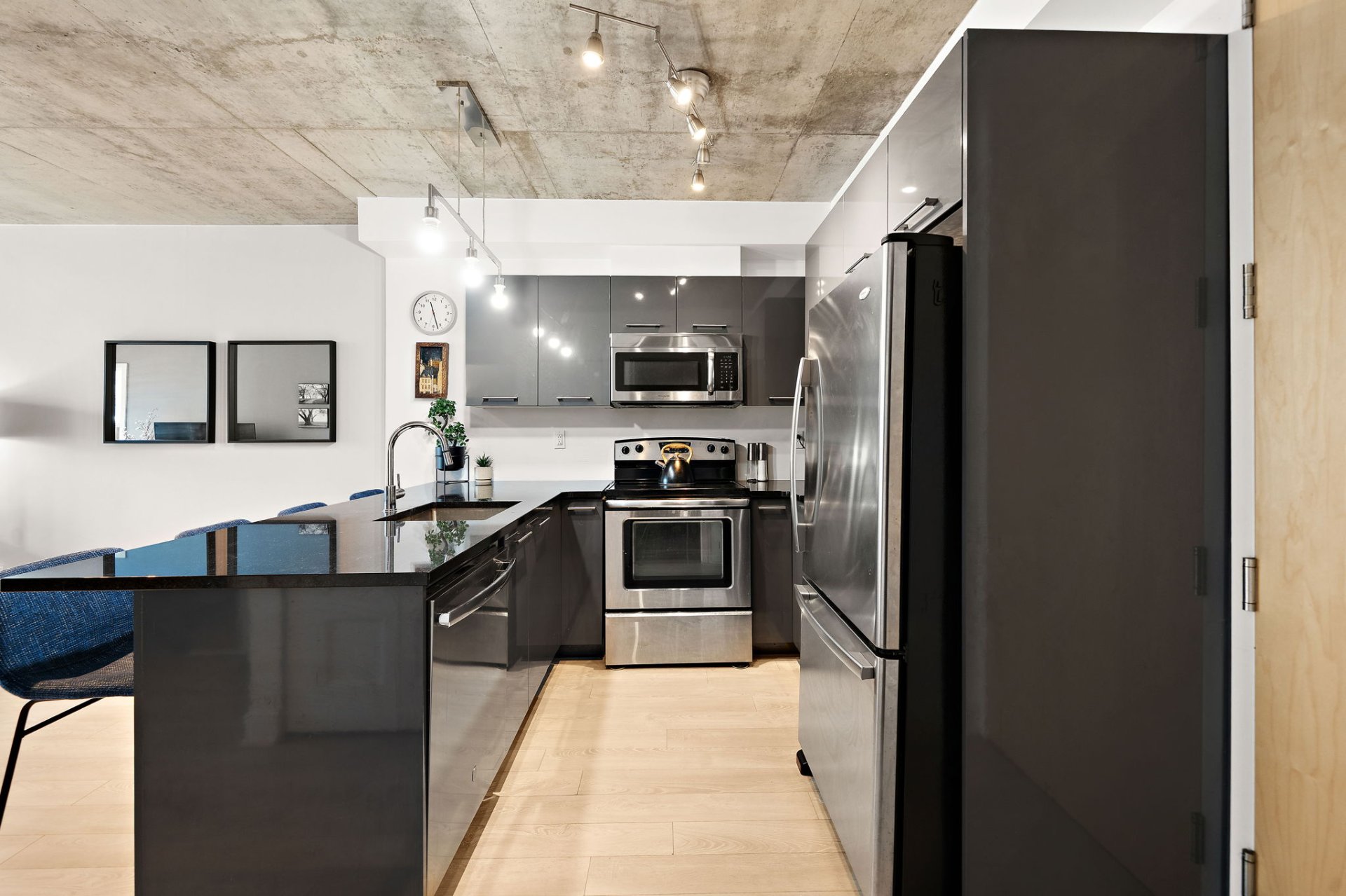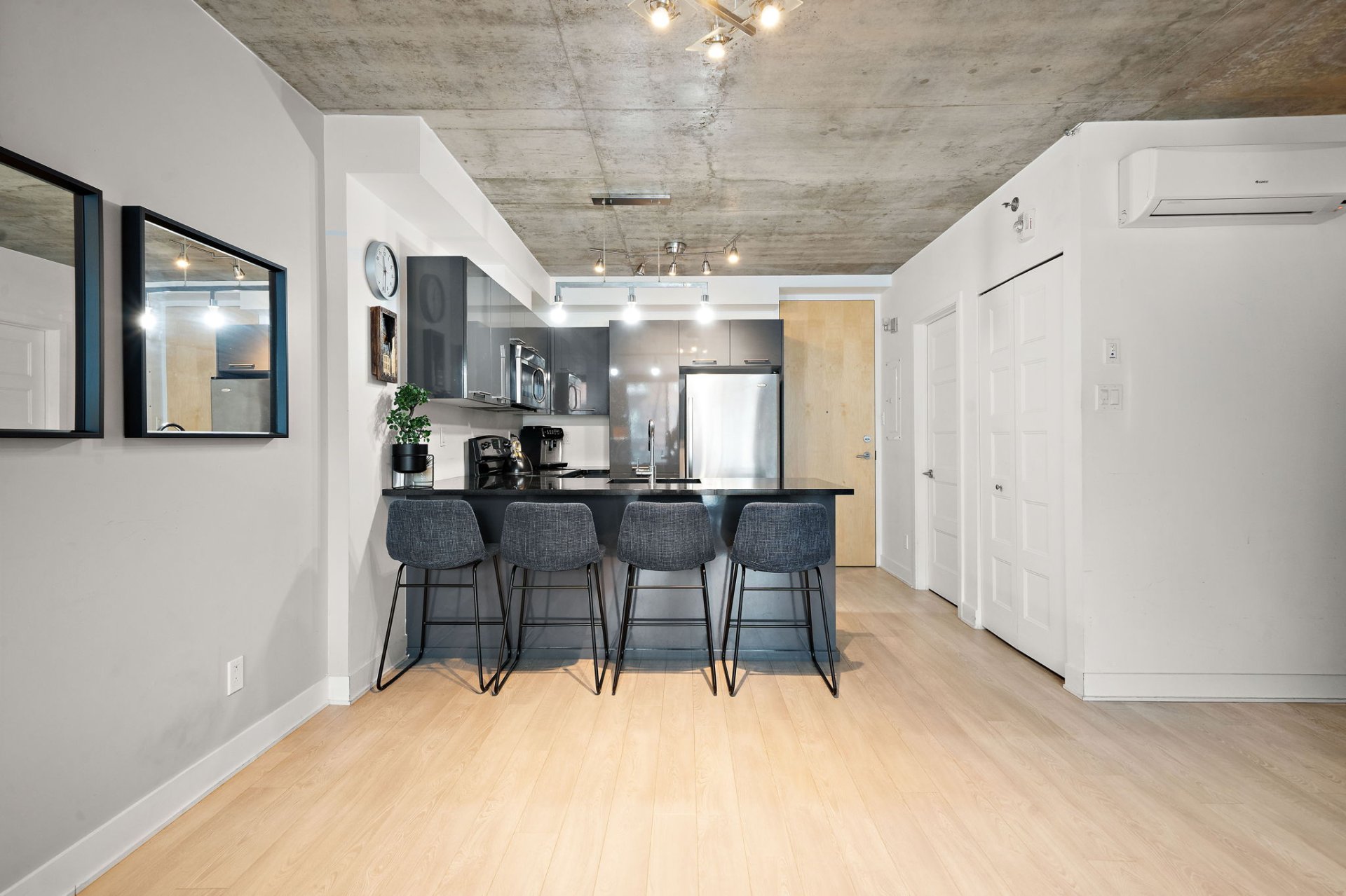 Located at 190 rue Murray, apt. 315, in the heart of the vibrant Griffintown district of Montreal, this superb 1+1 bedroom condo offers an urban lifestyle that blends elegance, comfort, and functionality. Just steps from the Lachine Canal and a short distance from downtown, the address provides the perfect balance between energy and quality of life.