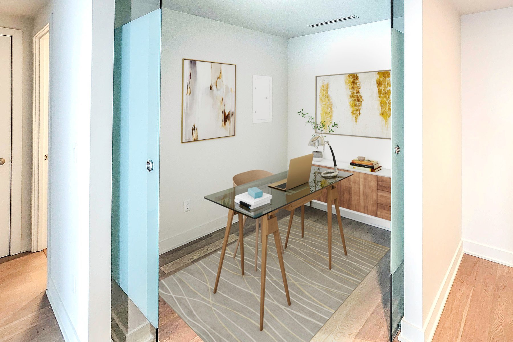 Elegant 1 bedroom + closed office & balcony on the 36th floor of Tour des Canadiens 3. 9’ high ceilings, exceptional East views. Modern condo, comes with built-in appliances, garage space & storage locker. State of the art amenities: swimming pool, gym, game room, sauna, spa, terrace and Skylounge, 24h security. Occupancy is possible starting May 1. Great opportunity!